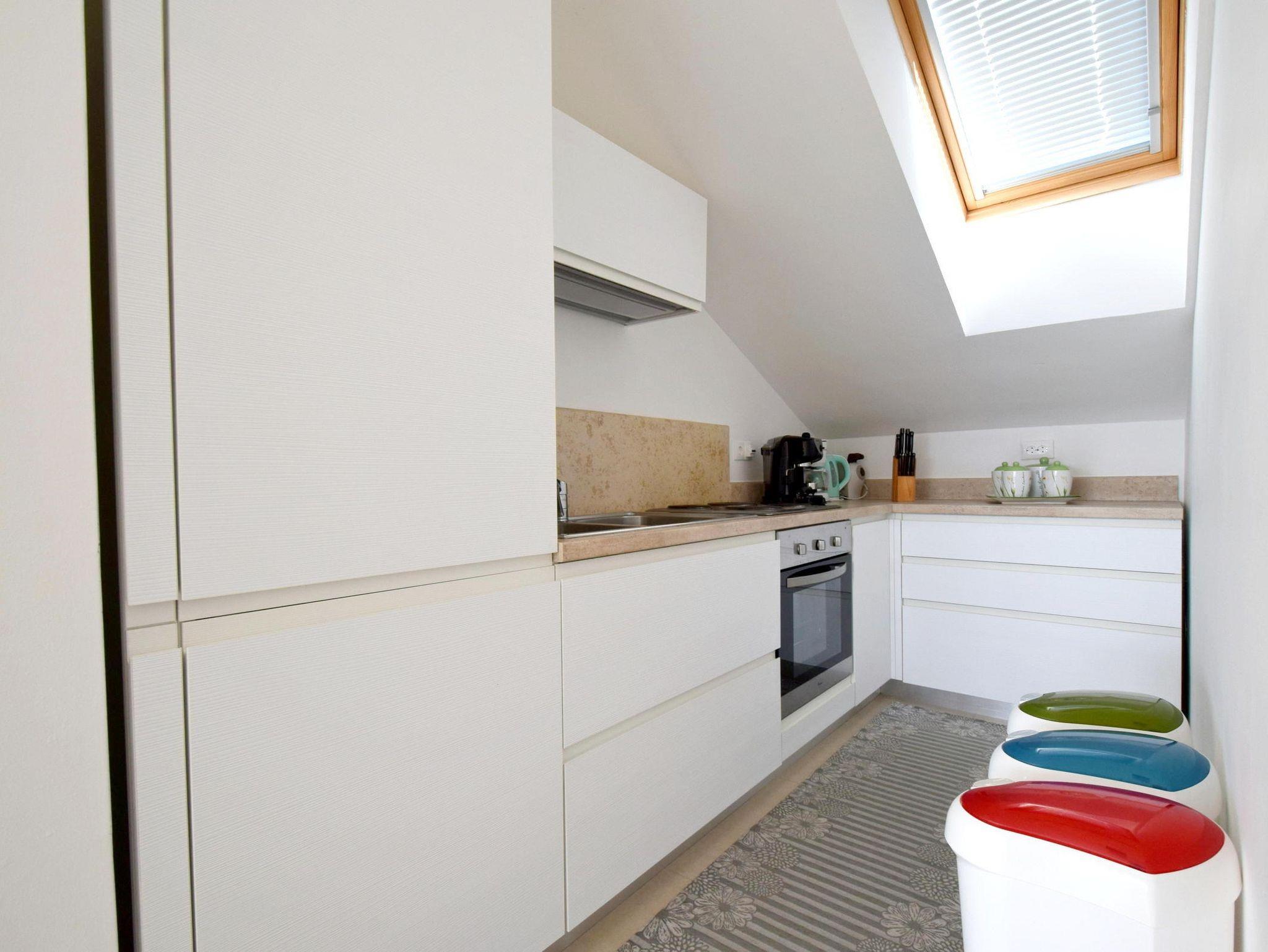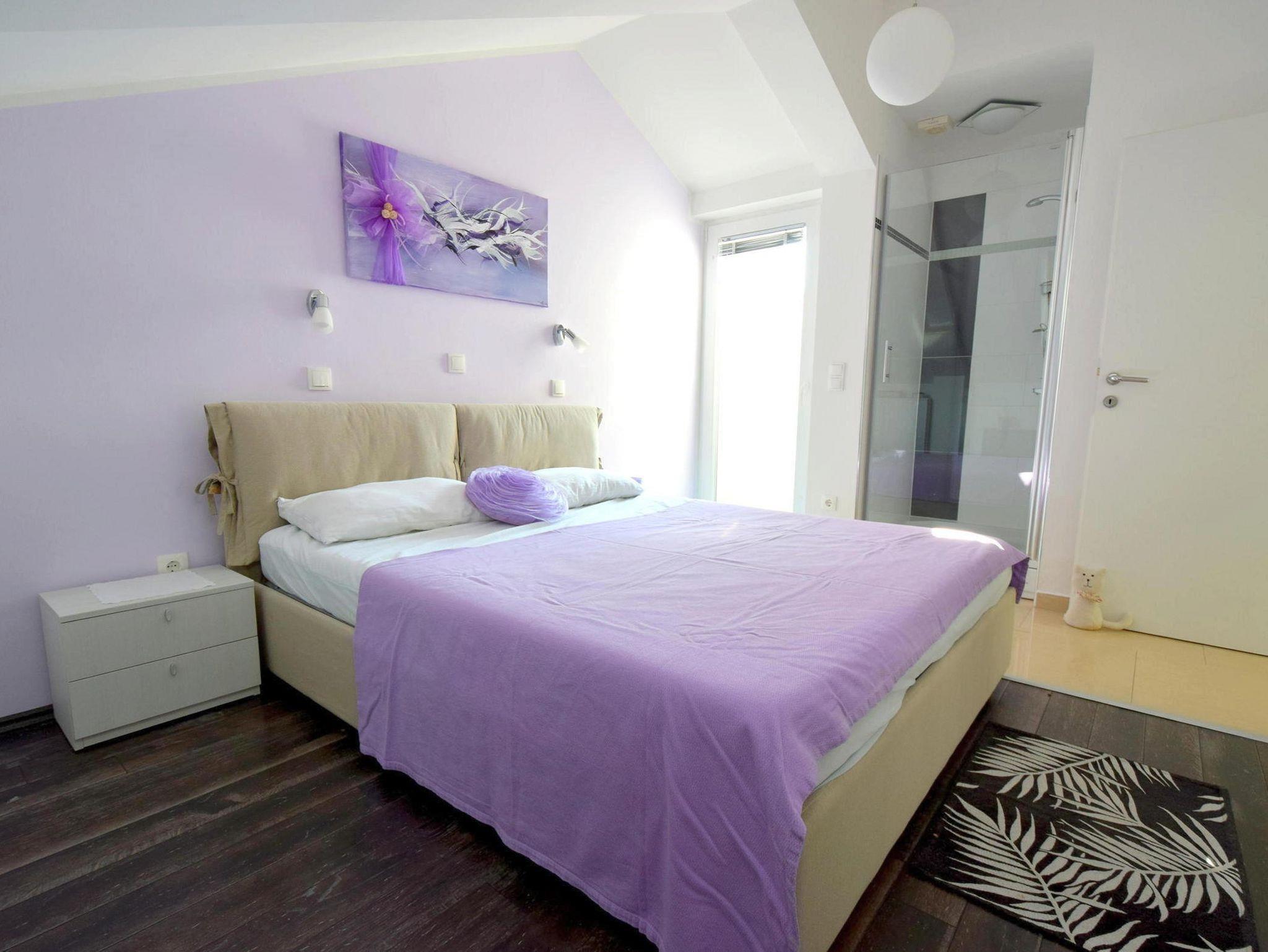 Ferienwohnung bietet Platz für 4 Gäste. Die Betten sind in Schlafzimmern, die es 2 gibt, innerhalb einer Gesamtfläche von 75m2, angeordnet. Die Gäste haben eine eigene Terrasse zur Verfügung, auf der sie in warmen Sommernächten genießen können. Das Apartment bietet Meerblick. Für vollen Genuss und Entspannung gibt es einen privaten Grill für Gäste dieser Unterkunft. IM PREIS INBEGRIFFEN: Kurtaxe, Endreinigung, Klimatisierung, Parkplatz, Internet. VERBINDLICHE ZUSÄTZLICHE KOSTEN: Aufzahlung für Kurzaufenthalte (prozentualer Zuschlag pro Nächtigungsanzahl: 30% - 1, 20% - 2, 10% - 3). Die Verfügbarkeit zusätzlicher Dienstleistungen in Ihrem reservierten Termin und die Preise derselben (falls nicht aufgeführt) müssen im Voraus überprüft werden. Zusätzliche Dienstleistungen die in der Zahlungsaufforderung nicht aufgeführt sind werden direkt beim Vermieter bezahlt, angenommen der Gast nutzt auch diese.