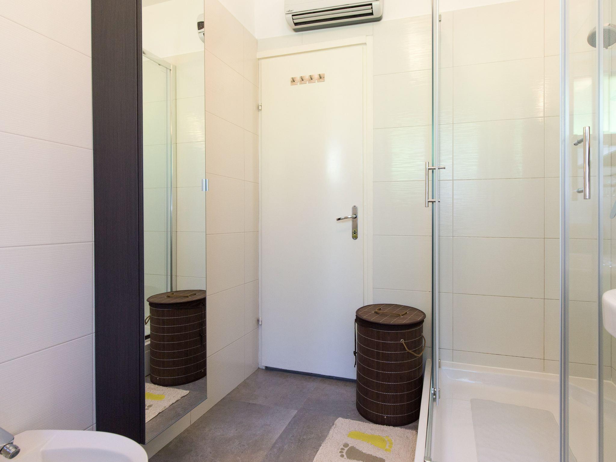 Ferienwohnung bietet Platz für 4 Gäste. Die Betten sind in Schlafzimmern, die es 1 gibt, und in Wohnzimmer, innerhalb einer Gesamtfläche von 45m2, angeordnet. Die Gäste haben eine eigene Terrasse zur Verfügung, auf der sie in warmen Sommernächten genießen können. Es ist erlaubt, Speisen auf dem Gemeinschafts-Grill vorzubereiten. In der Unterkunftseinheit besteht die Möglichkeit des Mitbringens von Haustieren gegen Aufpreis. IM PREIS INBEGRIFFEN: Kurtaxe, Endreinigung, Klimatisierung, Parkplatz, Internet. UNVERBINDLICHE ZUSÄTZLICHE KOSTEN: Haustiere (10,00 € pro Nacht). Die Verfügbarkeit zusätzlicher Dienstleistungen in Ihrem reservierten Termin und die Preise derselben (falls nicht aufgeführt) müssen im Voraus überprüft werden. Zusätzliche Dienstleistungen die in der Zahlungsaufforderung nicht aufgeführt sind werden direkt beim Vermieter bezahlt, angenommen der Gast nutzt auch diese.
