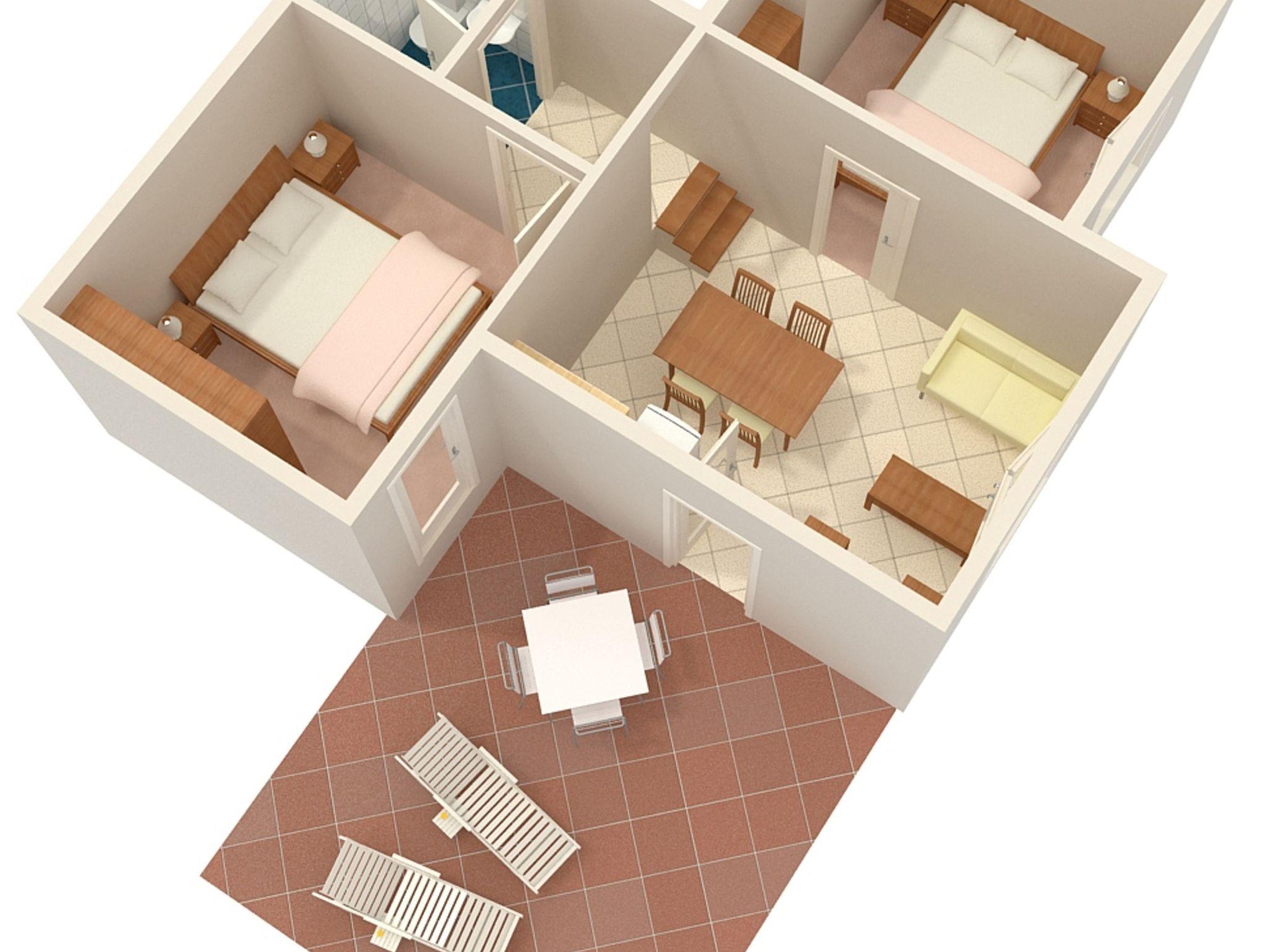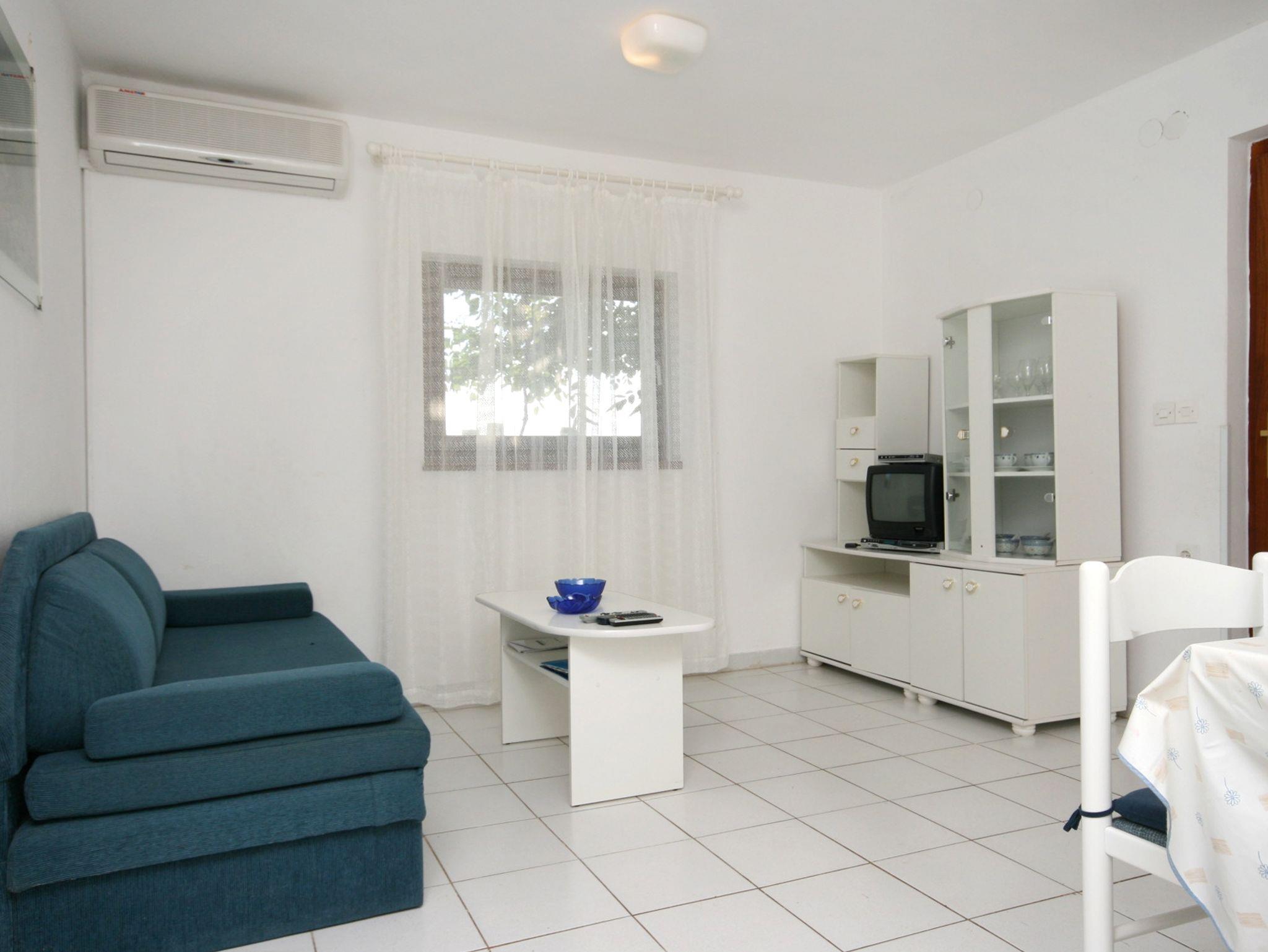 Ferienwohnung bietet Platz für 4 Gäste. Die Betten sind in Schlafzimmern, die es 2 gibt, innerhalb einer Gesamtfläche von 42m2, angeordnet. Die Gäste haben eine eigene Terrasse zur Verfügung, auf der sie in warmen Sommernächten genießen können. Das Apartment bietet Meerblick. Es ist erlaubt, Speisen auf dem Gemeinschafts-Grill vorzubereiten. IM PREIS INBEGRIFFEN: Kurtaxe, Endreinigung, Klimatisierung, Parkplatz, Internet, Kinderbett, Bügeleisen, Bügelbrett, Föhn, tragbarer Grill. VERBINDLICHE ZUSÄTZLICHE KOSTEN: Aufzahlung für Kurzaufenthalte (prozentualer Zuschlag pro Nächtigungsanzahl: 30% - 1, 20% - 2, 10% - 3). Die Verfügbarkeit zusätzlicher Dienstleistungen in Ihrem reservierten Termin und die Preise derselben (falls nicht aufgeführt) müssen im Voraus überprüft werden. Zusätzliche Dienstleistungen die in der Zahlungsaufforderung nicht aufgeführt sind werden direkt beim Vermieter bezahlt, angenommen der Gast nutzt auch diese.