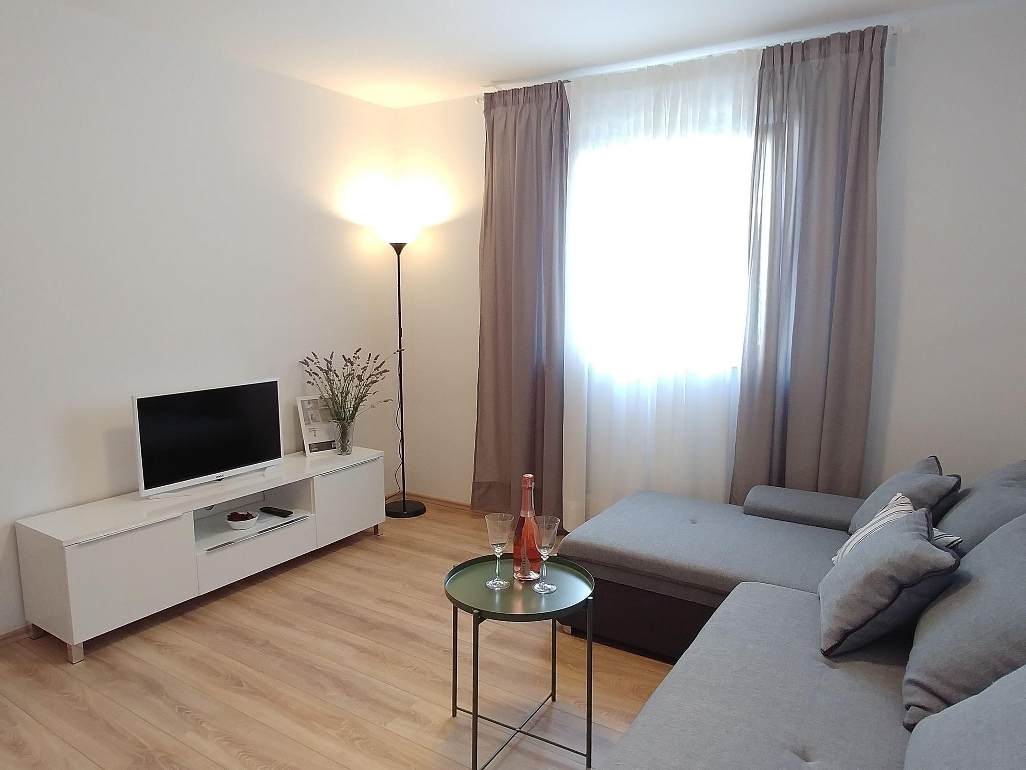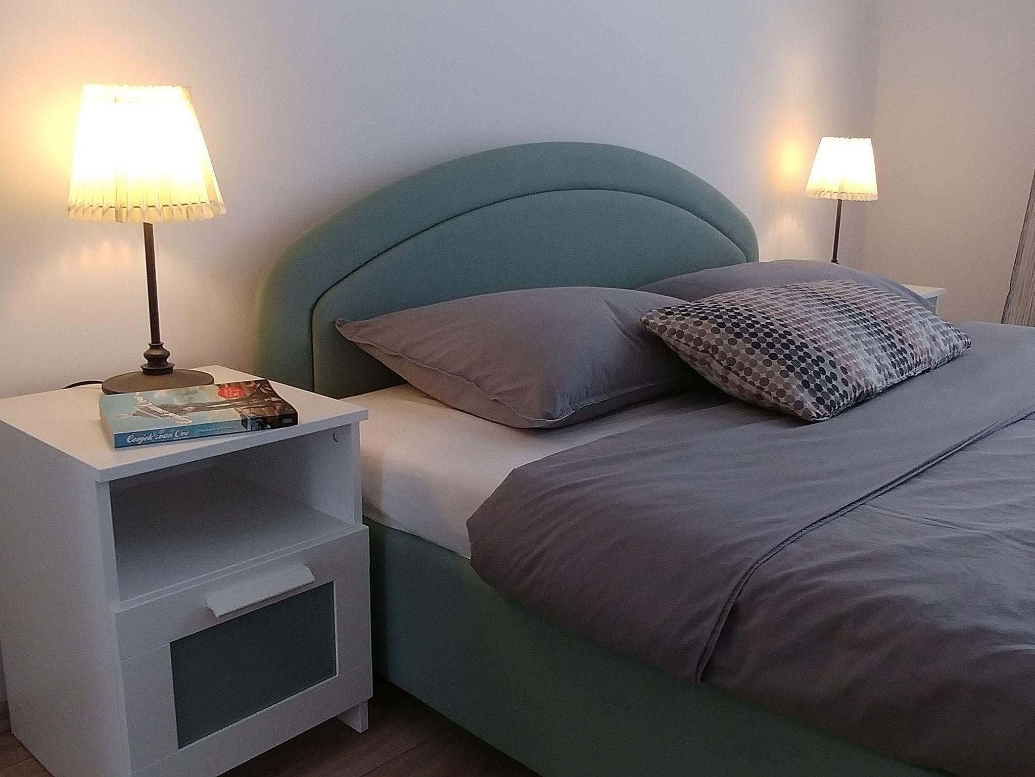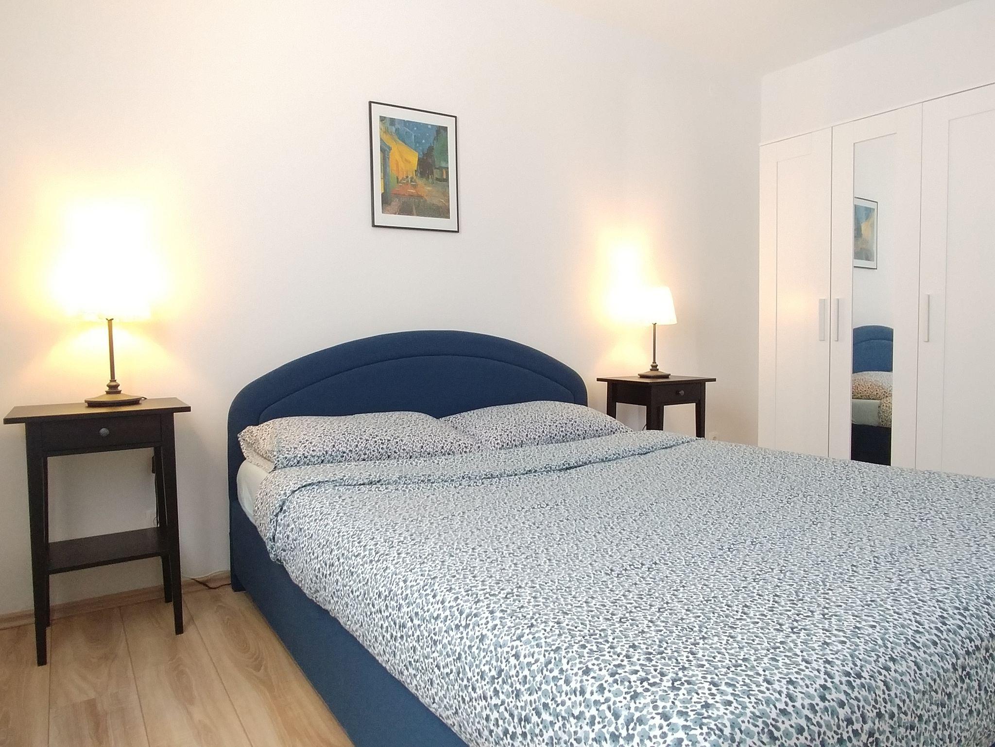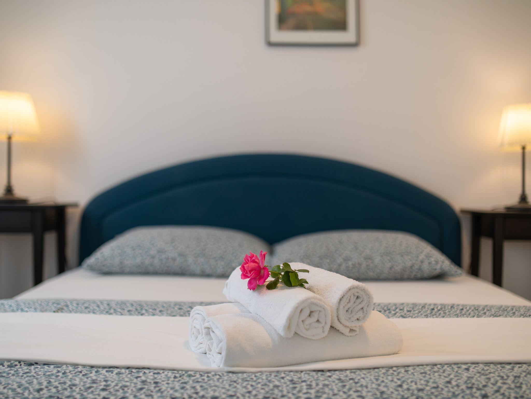 Ferienwohnung bietet Platz für 4 Gäste. Die Betten sind in Schlafzimmern, die es 2 gibt, innerhalb einer Gesamtfläche von 52m2, angeordnet. Die Gäste haben eine eigene Terrasse zur Verfügung, auf der sie in warmen Sommernächten genießen können. Es ist erlaubt, Speisen auf dem Gemeinschafts-Grill vorzubereiten. IM PREIS INBEGRIFFEN: Kurtaxe, Endreinigung, Klimatisierung, Parkplatz, Internet. VERBINDLICHE ZUSÄTZLICHE KOSTEN: Aufzahlung für Kurzaufenthalte (prozentualer Zuschlag pro Nächtigungsanzahl: 30% - 1, 20% - 2, 10% - 3). Die Verfügbarkeit zusätzlicher Dienstleistungen in Ihrem reservierten Termin und die Preise derselben (falls nicht aufgeführt) müssen im Voraus überprüft werden. Zusätzliche Dienstleistungen die in der Zahlungsaufforderung nicht aufgeführt sind werden direkt beim Vermieter bezahlt, angenommen der Gast nutzt auch diese.
