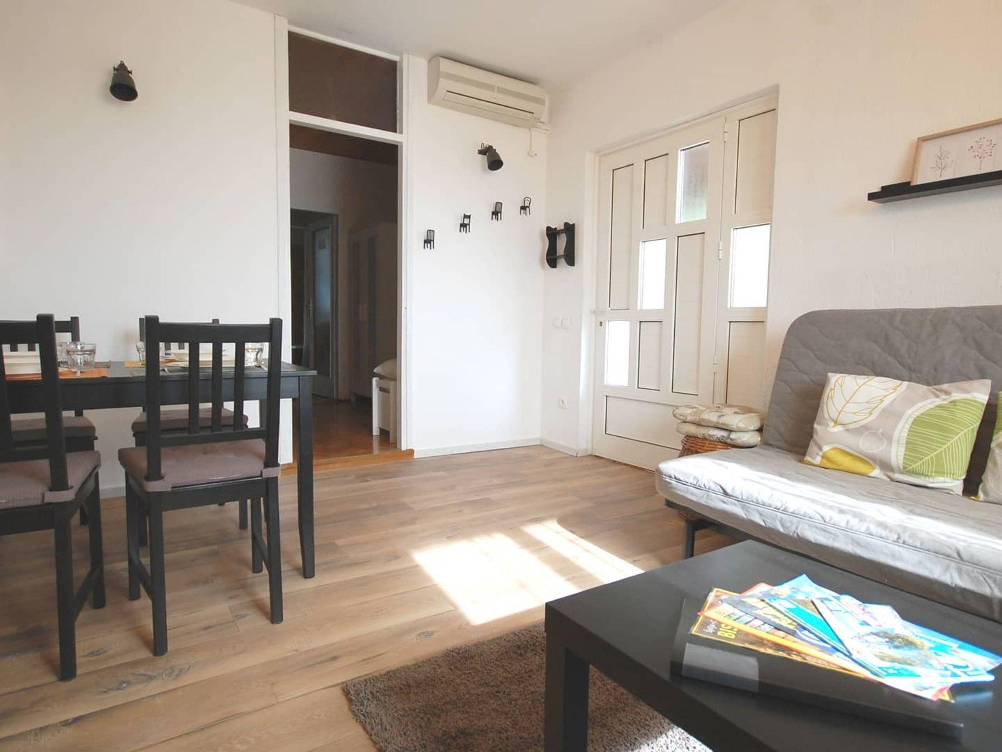 Ferienwohnung bietet Platz für 3 Gäste. Die Betten sind in Schlafzimmern, die es 1 gibt, und in Wohnzimmer, innerhalb einer Gesamtfläche von 30m2, angeordnet. Die Gäste haben eine eigene Terrasse zur Verfügung, auf der sie in warmen Sommernächten genießen können. Für vollen Genuss und Entspannung gibt es einen privaten Grill für Gäste dieser Unterkunft. IM PREIS INBEGRIFFEN: Kurtaxe, Endreinigung, Klimatisierung, Parkplatz, Internet. Die Verfügbarkeit zusätzlicher Dienstleistungen in Ihrem reservierten Termin und die Preise derselben (falls nicht aufgeführt) müssen im Voraus überprüft werden. Zusätzliche Dienstleistungen die in der Zahlungsaufforderung nicht aufgeführt sind werden direkt beim Vermieter bezahlt, angenommen der Gast nutzt auch diese.