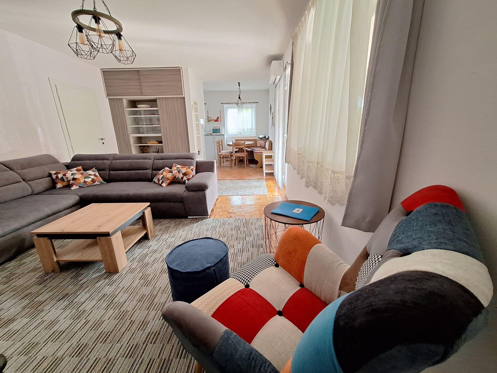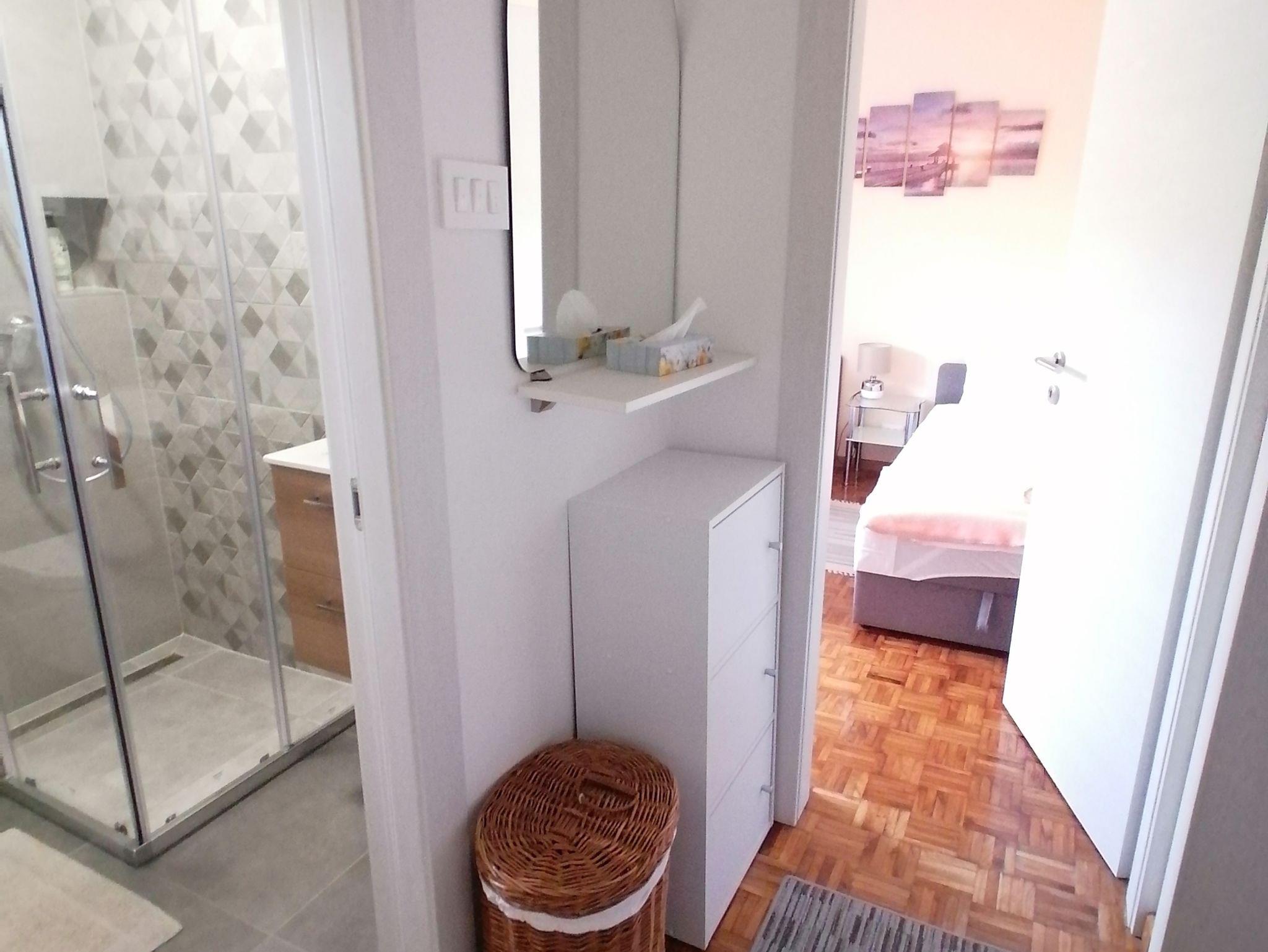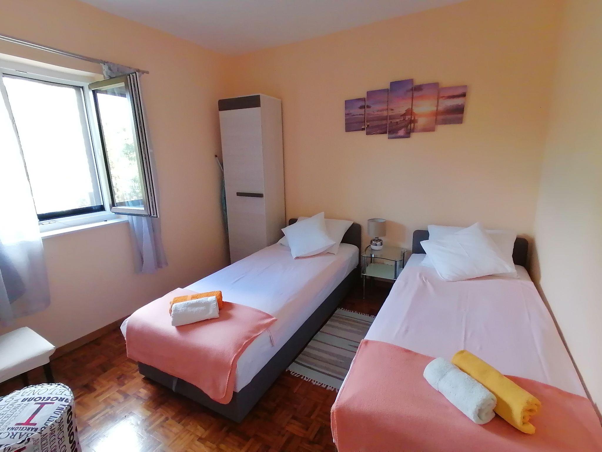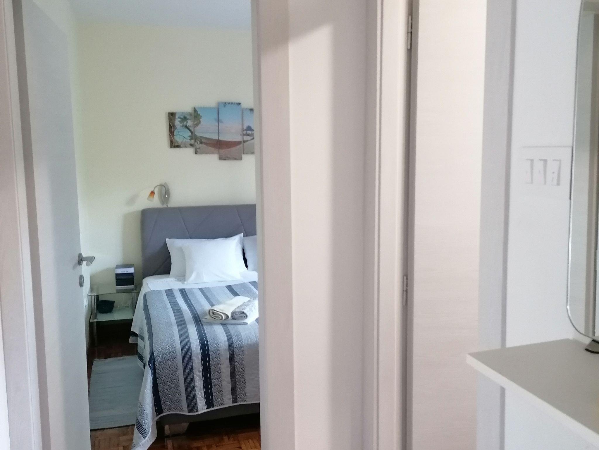 Ferienwohnung bietet Platz für 5 Gäste. Die Betten sind in Schlafzimmern, die es 2 gibt, und in Wohnzimmer, innerhalb einer Gesamtfläche von 55m2, angeordnet. Die Gäste haben eine eigene Terrasse zur Verfügung, auf der sie in warmen Sommernächten genießen können. Es ist erlaubt, Speisen auf dem Gemeinschafts-Grill vorzubereiten. In der Unterkunftseinheit besteht die Möglichkeit des Mitbringens von Haustieren gegen Aufpreis. IM PREIS INBEGRIFFEN: Kurtaxe, Endreinigung, Klimatisierung, Parkplatz, Internet, Kinderbett, Bügeleisen, Bügelbrett, Föhn. VERBINDLICHE ZUSÄTZLICHE KOSTEN: Aufzahlung für Kurzaufenthalte (prozentualer Zuschlag pro Nächtigungsanzahl: 30% - 1, 20% - 2, 10% - 3). UNVERBINDLICHE ZUSÄTZLICHE KOSTEN: Wäschewaschen (2,00 € Waschen), Haustiere (10,00 € pro Nacht). Die Verfügbarkeit zusätzlicher Dienstleistungen in Ihrem reservierten Termin und die Preise derselben (falls nicht aufgeführt) müssen im Voraus überprüft werden. Zusätzliche Dienstleistungen die in der Zahlungsaufforderung nicht aufgeführt sind werden direkt beim Vermieter bezahlt, angenommen der Gast nutzt auch diese. Ermäßigung auf den Grundpreis: Gratistag 14=13 (bei einem Aufenthalt von 14 Tagen oder mehr erhalten Sie einen Gratistag für den Aufenthalt bis 31.12.26).