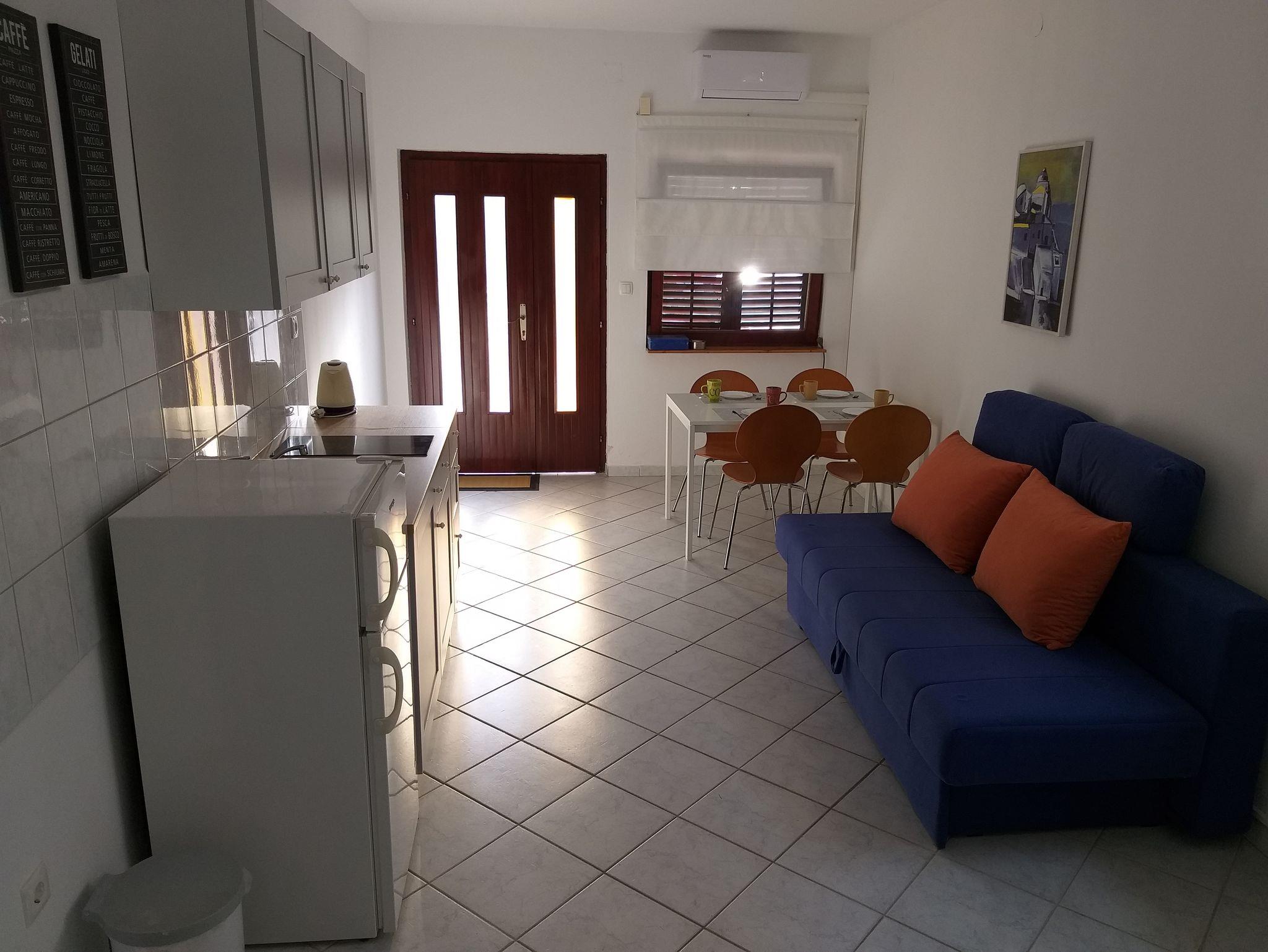 Ferienwohnung bietet Platz für 2 Gäste. Die Betten sind in Schlafzimmern, die es 1 gibt, innerhalb einer Gesamtfläche von 27m2, angeordnet. Das Apartment bietet Meerblick. Es ist erlaubt, Speisen auf dem Gemeinschafts-Grill vorzubereiten. In der Unterkunftseinheit besteht die Möglichkeit des Mitbringens von Haustieren gegen Aufpreis. Die reservierte Unterkunftseinheit verfügt über einen gemeinsame Terrasse. IM PREIS INBEGRIFFEN: Kurtaxe, Endreinigung, Klimatisierung, Parkplatz, Internet. VERBINDLICHE ZUSÄTZLICHE KOSTEN: Aufzahlung für Kurzaufenthalte (prozentualer Zuschlag pro Nächtigungsanzahl: 30% - 1, 20% - 2, 10% - 3). UNVERBINDLICHE ZUSÄTZLICHE KOSTEN: Haustiere (10,00 € pro Nacht). Die Verfügbarkeit zusätzlicher Dienstleistungen in Ihrem reservierten Termin und die Preise derselben (falls nicht aufgeführt) müssen im Voraus überprüft werden. Zusätzliche Dienstleistungen die in der Zahlungsaufforderung nicht aufgeführt sind werden direkt beim Vermieter bezahlt, angenommen der Gast nutzt auch diese.