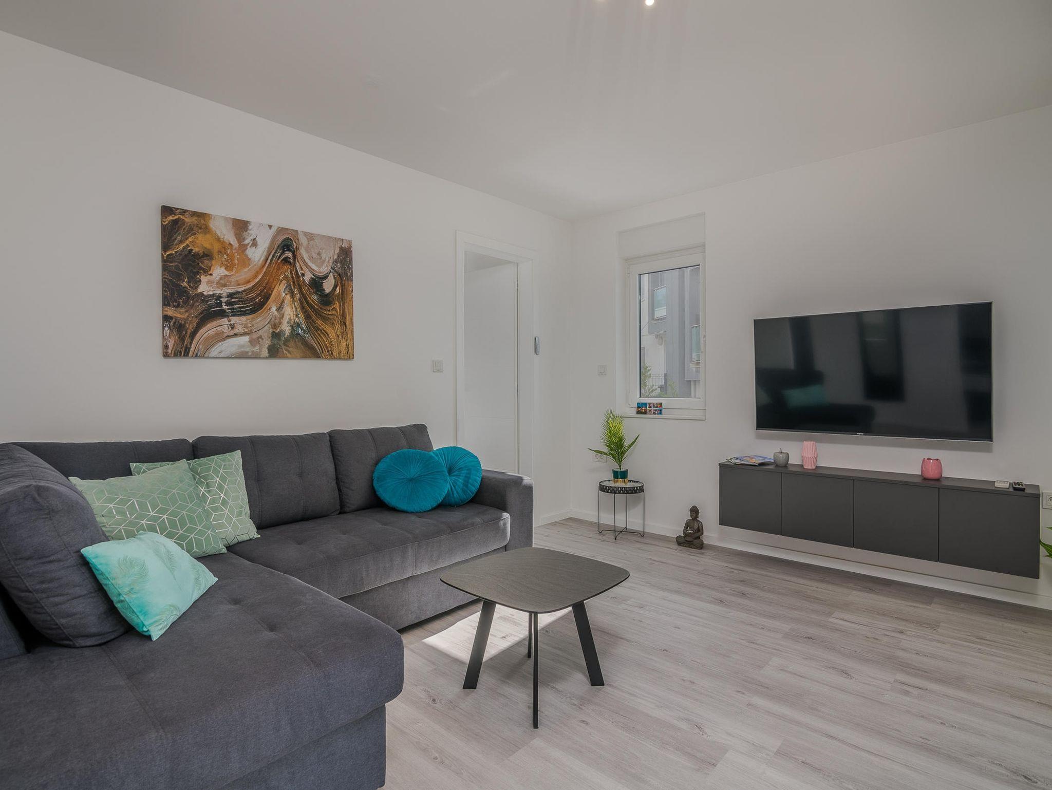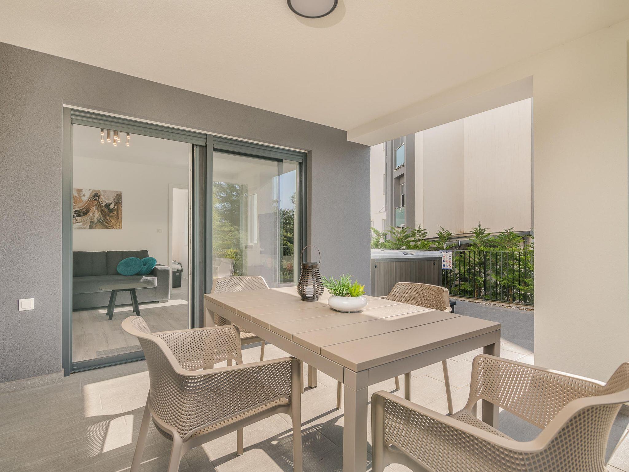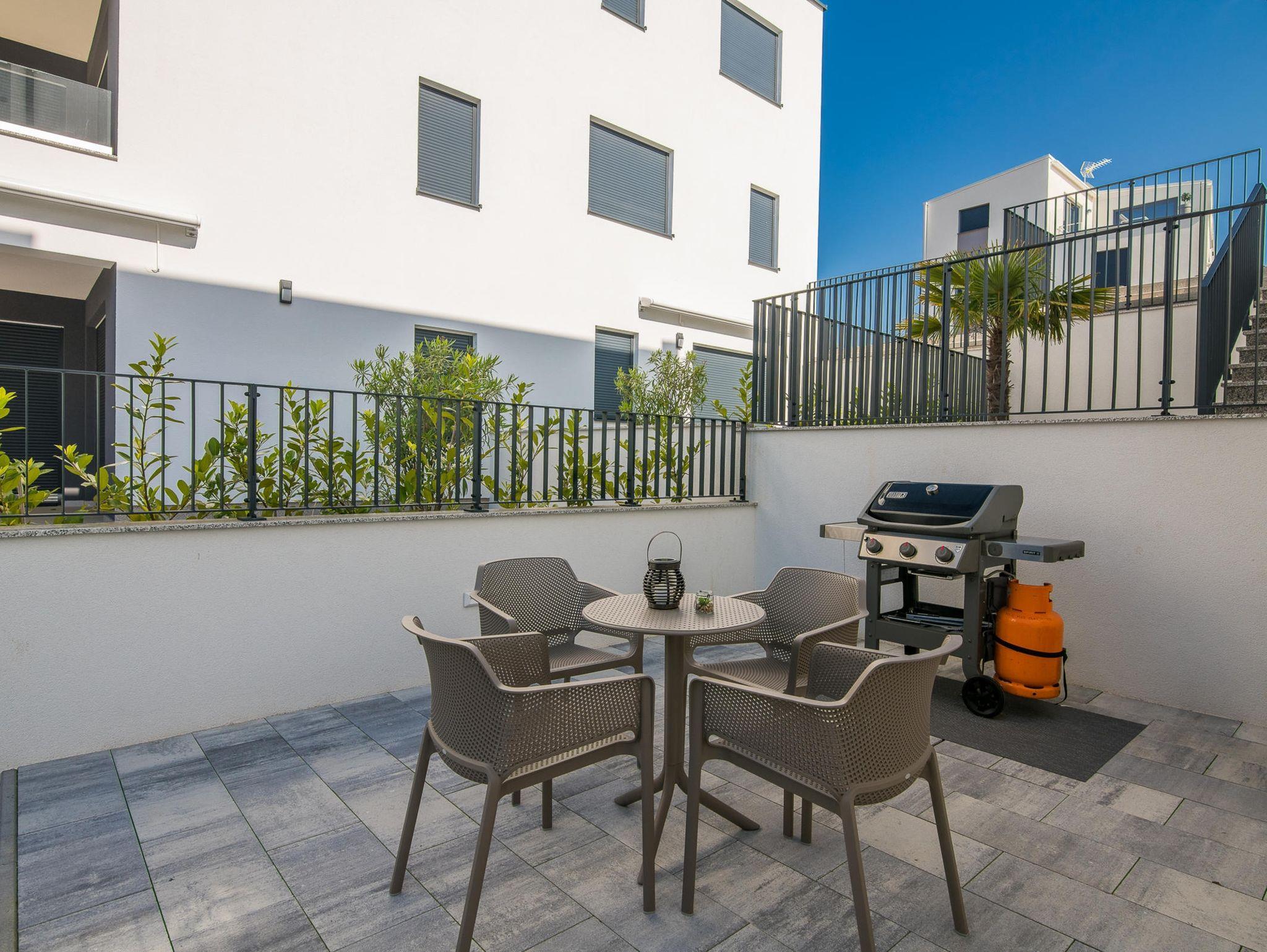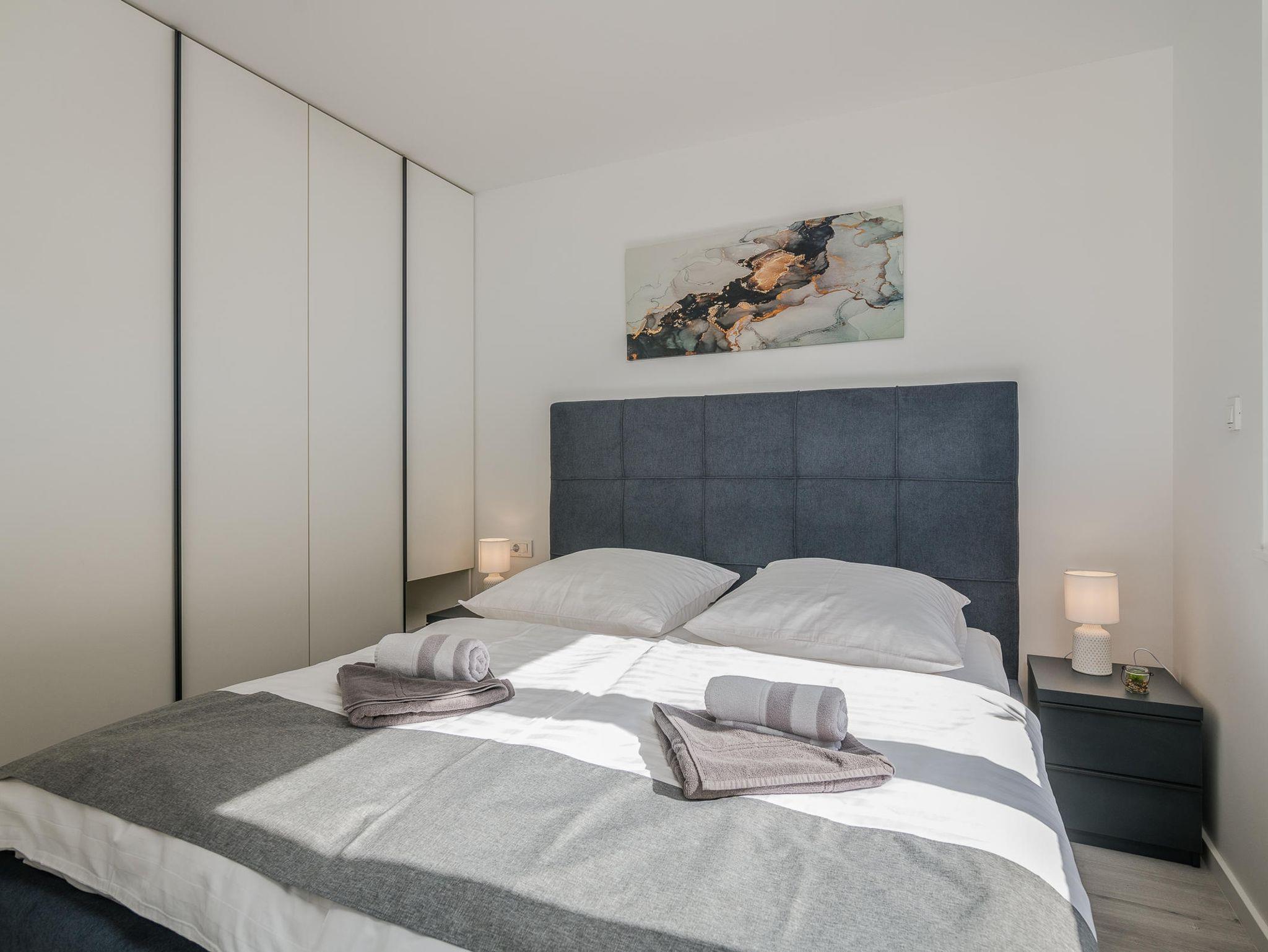 Ferienwohnung bietet Platz für 4 Gäste. Die Betten sind in Schlafzimmern, die es 2 gibt, innerhalb einer Gesamtfläche von 46m2, angeordnet. Die Gäste haben eine eigene Terrasse zur Verfügung, auf der sie in warmen Sommernächten genießen können. Es ist erlaubt, Speisen auf dem Gemeinschafts-Grill vorzubereiten. IM PREIS INBEGRIFFEN: Kurtaxe, Endreinigung, Klimatisierung, Parkplatz, Internet, tragbarer Grill. Die Verfügbarkeit zusätzlicher Dienstleistungen in Ihrem reservierten Termin und die Preise derselben (falls nicht aufgeführt) müssen im Voraus überprüft werden. Zusätzliche Dienstleistungen die in der Zahlungsaufforderung nicht aufgeführt sind werden direkt beim Vermieter bezahlt, angenommen der Gast nutzt auch diese.