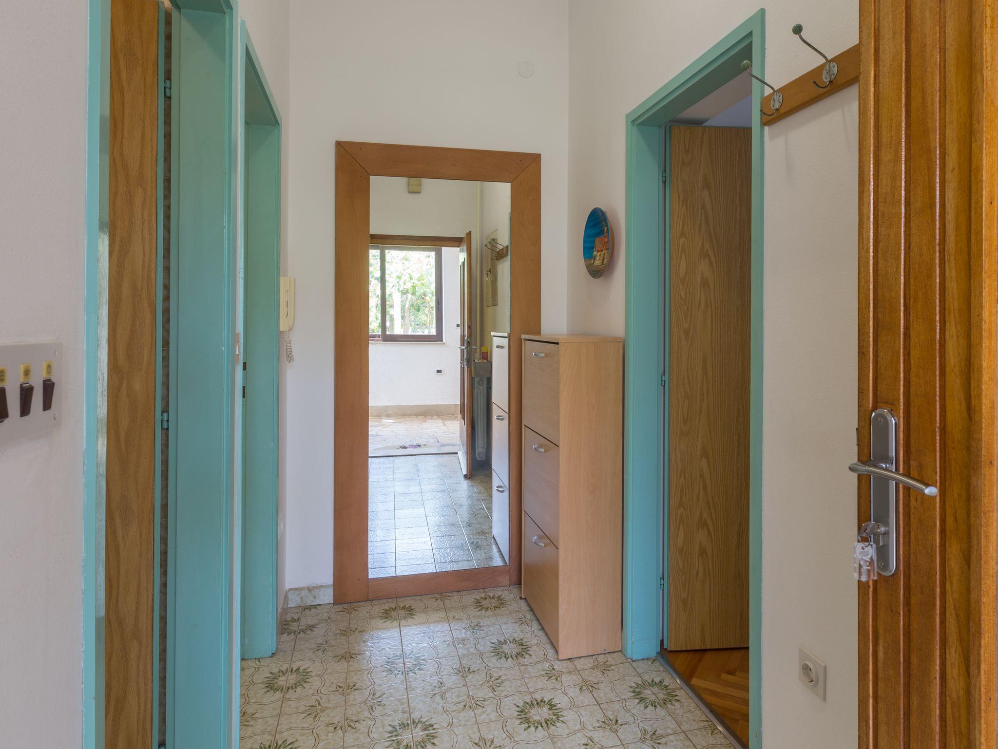 Ferienwohnung bietet Platz für 2 Gäste. Die Betten sind in Schlafzimmern, die es 1 gibt, innerhalb einer Gesamtfläche von 36m2, angeordnet. Die Gäste haben eine eigene Terrasse zur Verfügung, auf der sie in warmen Sommernächten genießen können. Es ist erlaubt, Speisen auf dem Gemeinschafts-Grill vorzubereiten. In der Unterkunftseinheit besteht die Möglichkeit des Mitbringens von Haustieren gegen Aufpreis. IM PREIS INBEGRIFFEN: Kurtaxe, Endreinigung, Klimatisierung, Parkplatz, Internet, Wäschewaschen, Kinderbett, Bügeleisen, Bügelbrett, Föhn. VERBINDLICHE ZUSÄTZLICHE KOSTEN: Aufzahlung für Kurzaufenthalte (prozentualer Zuschlag pro Nächtigungsanzahl: 30% - 1, 20% - 2, 10% - 3). UNVERBINDLICHE ZUSÄTZLICHE KOSTEN: Haustiere (8,00 € pro Nacht). Die Verfügbarkeit zusätzlicher Dienstleistungen in Ihrem reservierten Termin und die Preise derselben (falls nicht aufgeführt) müssen im Voraus überprüft werden. Zusätzliche Dienstleistungen die in der Zahlungsaufforderung nicht aufgeführt sind werden direkt beim Vermieter bezahlt, angenommen der Gast nutzt auch diese.