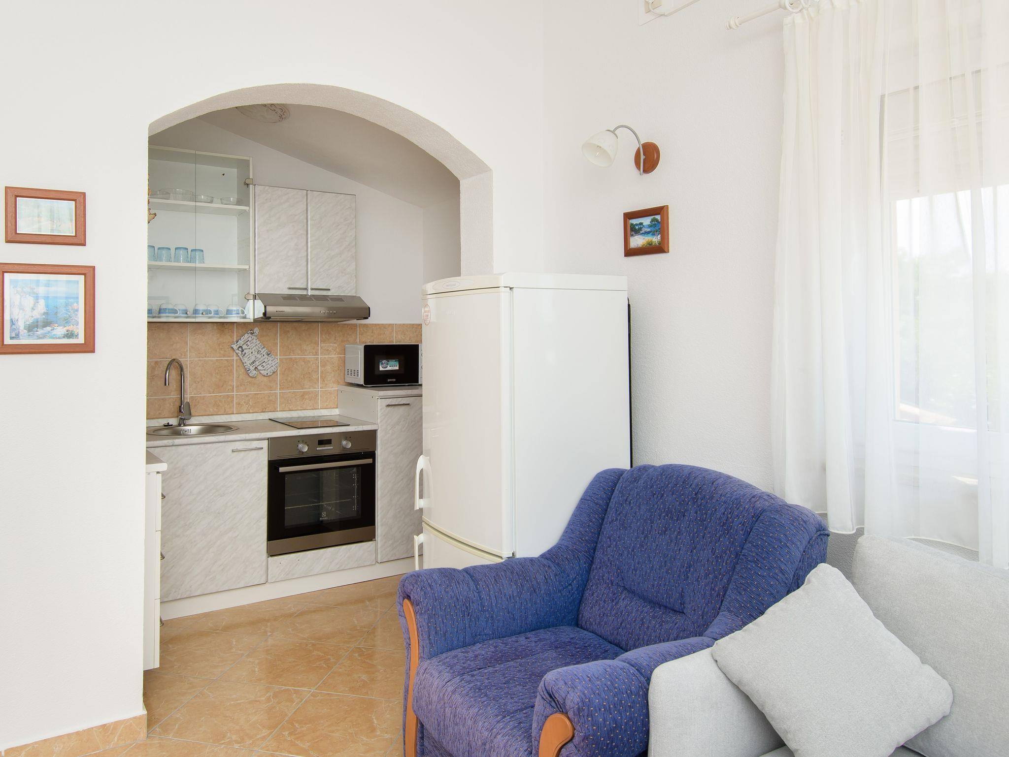 Ferienwohnung bietet Platz für 3 Gäste. Die Betten sind in Schlafzimmern, die es 1 gibt, und in Wohnzimmer, innerhalb einer Gesamtfläche von 36m2, angeordnet. Die Gäste haben eine eigene Terrasse zur Verfügung, auf der sie in warmen Sommernächten genießen können. Das Apartment bietet Meerblick. Es ist erlaubt, Speisen auf dem Gemeinschafts-Grill vorzubereiten. Während ihres Aufenthalts können Gäste das gemeinsam zur Nutzung stehende Schwimmbad benutzen. IM PREIS INBEGRIFFEN: Kurtaxe, Endreinigung, Klimatisierung, Zentralheizung, Pool, Parkplatz, Internet, Kinderbett, Zusatzbett, Föhn, tragbarer Grill, Sonnenschirm, Liegestühle. UNVERBINDLICHE ZUSÄTZLICHE KOSTEN: Wäschewaschen (2,00 € Waschen). Die Verfügbarkeit zusätzlicher Dienstleistungen in Ihrem reservierten Termin und die Preise derselben (falls nicht aufgeführt) müssen im Voraus überprüft werden. Zusätzliche Dienstleistungen die in der Zahlungsaufforderung nicht aufgeführt sind werden direkt beim Vermieter bezahlt, angenommen der Gast nutzt auch diese.