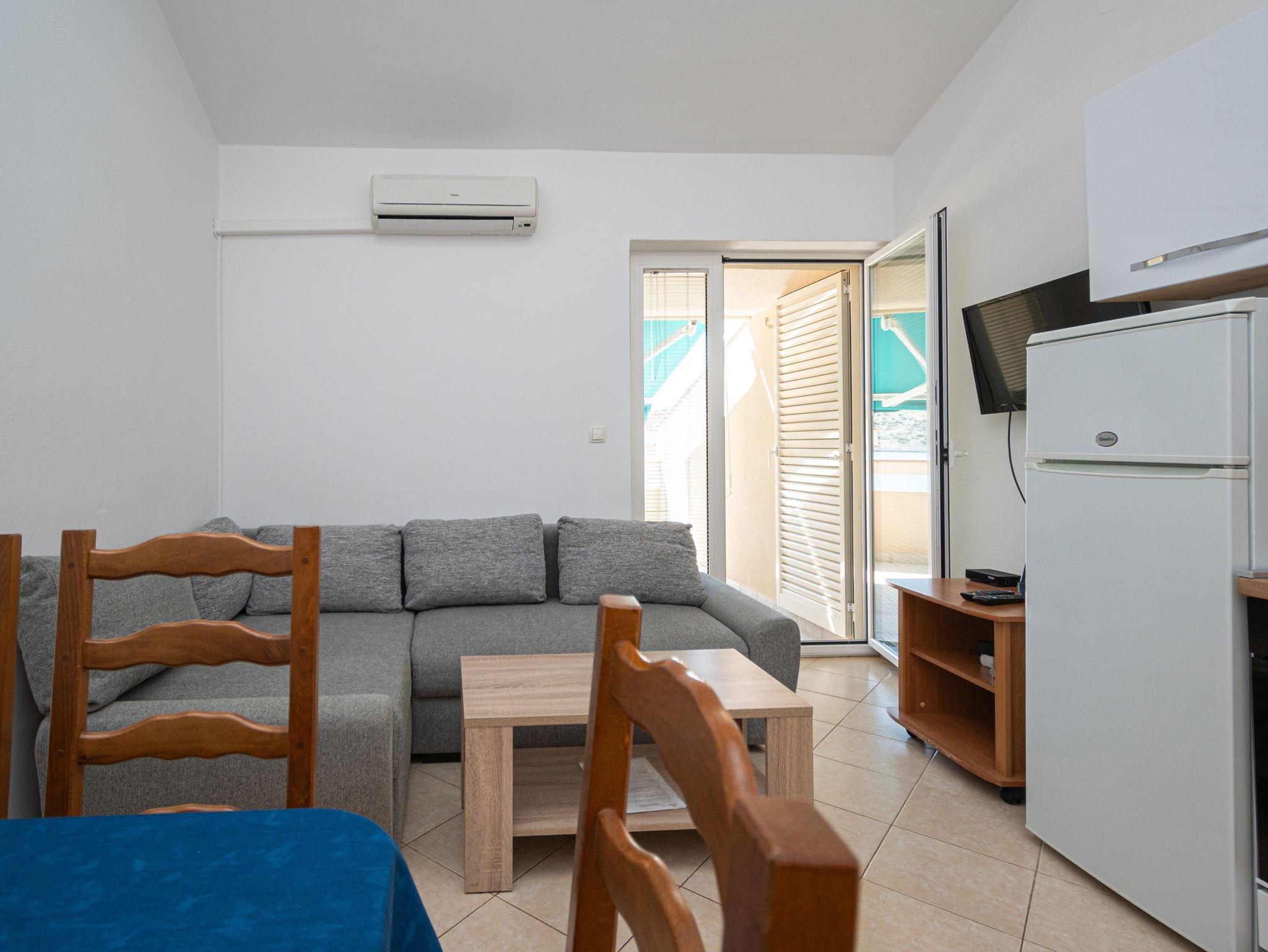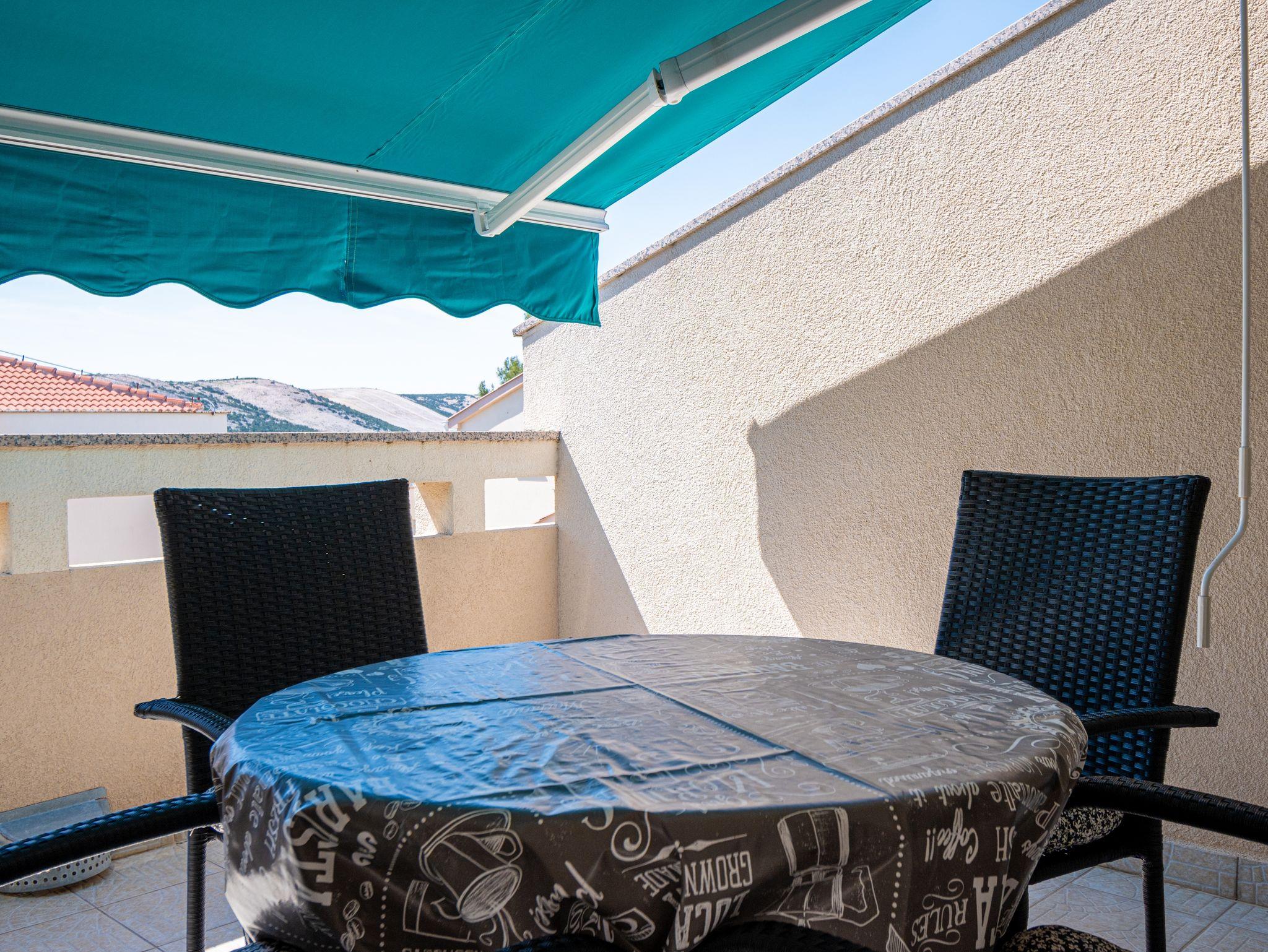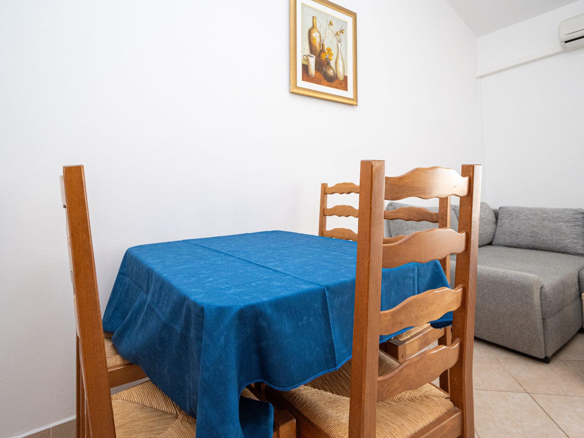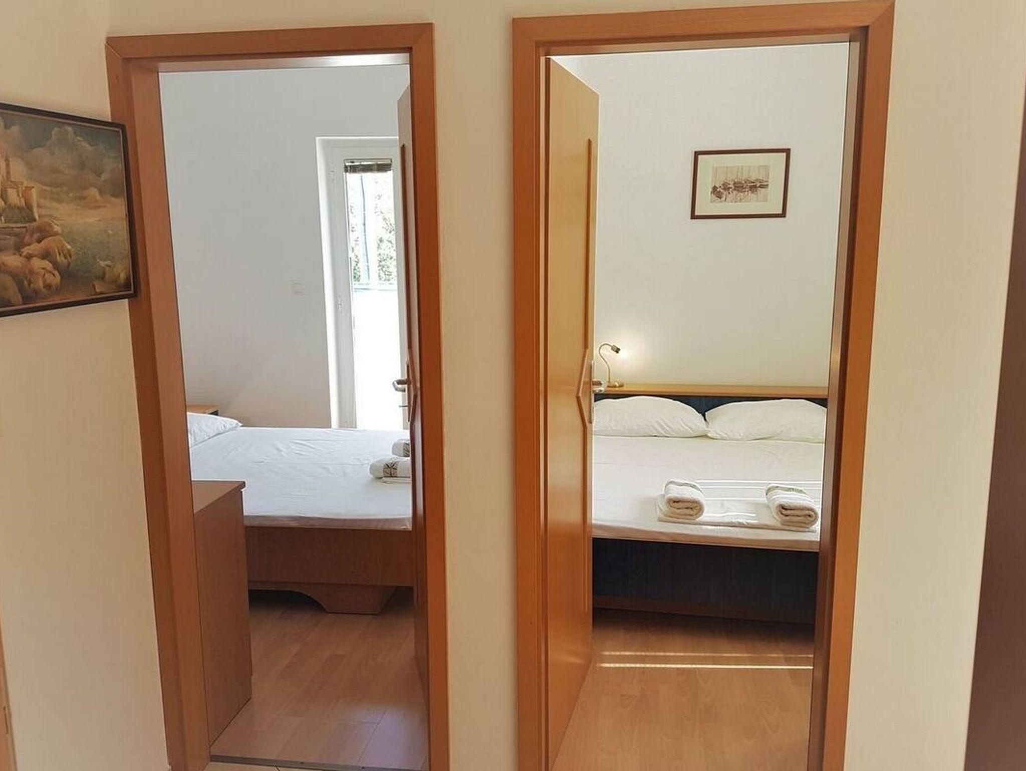 Ferienwohnung bietet Platz für 4 Gäste. Die Betten sind in Schlafzimmern, die es 2 gibt, innerhalb einer Gesamtfläche von 38m2, angeordnet. Die Gäste haben eine eigene Terrasse zur Verfügung, auf der sie in warmen Sommernächten genießen können. Das Apartment bietet Meerblick. Es ist erlaubt, Speisen auf dem Gemeinschafts-Grill vorzubereiten. In der Unterkunftseinheit besteht die Möglichkeit des Mitbringens von Haustieren gegen Aufpreis. IM PREIS INBEGRIFFEN: Kurtaxe, Endreinigung, Klimatisierung, Parkplatz, Internet, Wäschewaschen, Bootsanlegeplatz, Kinderbett, Föhn, Sonnenschirm, Liegestühle. UNVERBINDLICHE ZUSÄTZLICHE KOSTEN: Haustiere (15,00 € pro Nacht). Die Verfügbarkeit zusätzlicher Dienstleistungen in Ihrem reservierten Termin und die Preise derselben (falls nicht aufgeführt) müssen im Voraus überprüft werden. Zusätzliche Dienstleistungen die in der Zahlungsaufforderung nicht aufgeführt sind werden direkt beim Vermieter bezahlt, angenommen der Gast nutzt auch diese. Ermäßigung auf den Grundpreis: Gratistag 14=13 (bei einem Aufenthalt von 14 Tagen oder mehr erhalten Sie einen Gratistag für den Aufenthalt bis 31.12.26).