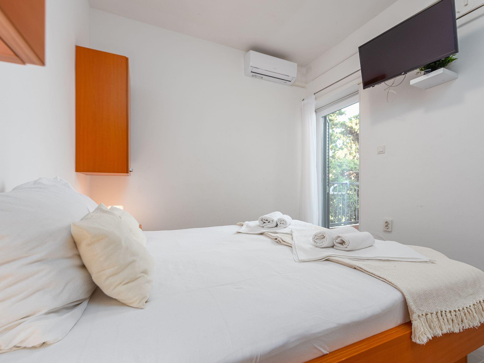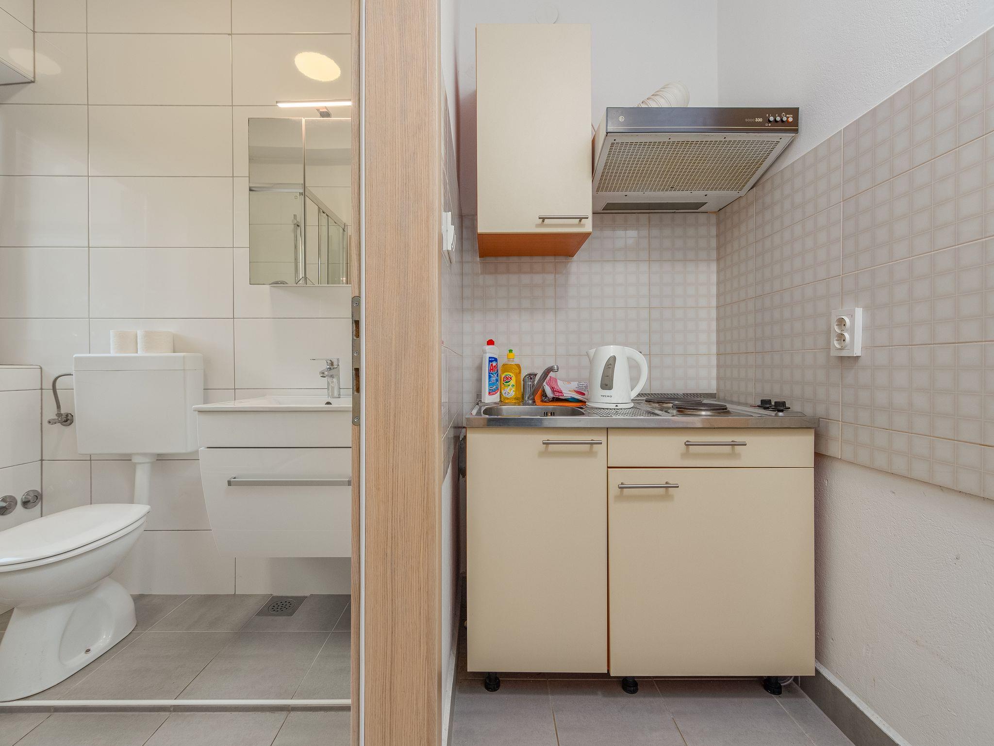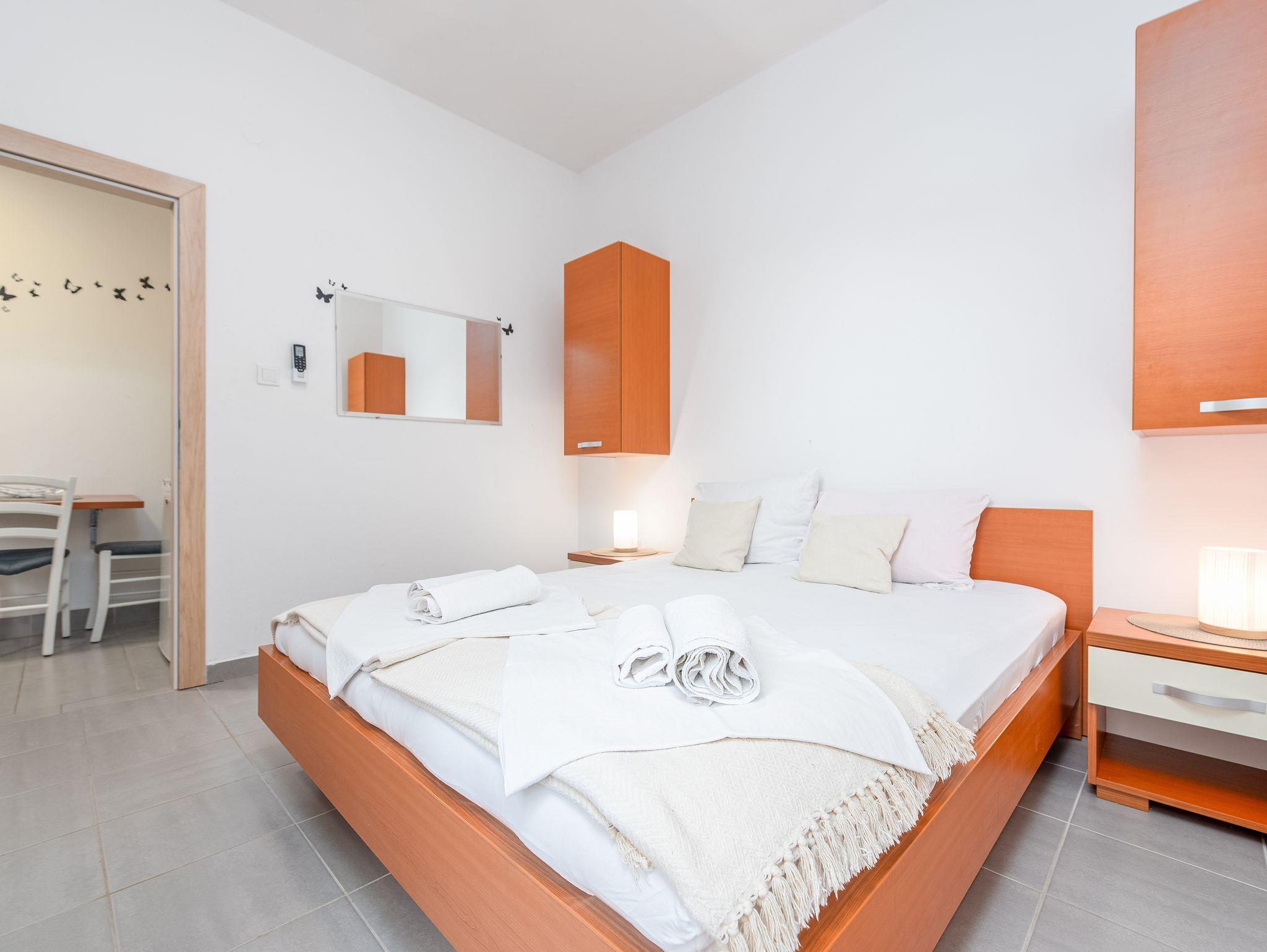 Ferienwohnung bietet Platz für 2 Gäste. Die Betten sind in Schlafzimmern, die es 1 gibt, innerhalb einer Gesamtfläche von 19m2, angeordnet. Die Gäste haben eine eigene Terrasse zur Verfügung, auf der sie in warmen Sommernächten genießen können. Es ist erlaubt, Speisen auf dem Gemeinschafts-Grill vorzubereiten. IM PREIS INBEGRIFFEN: Kurtaxe, Endreinigung, Klimatisierung, Parkplatz, Bootsanlegeplatz, Föhn. VERBINDLICHE ZUSÄTZLICHE KOSTEN: Aufzahlung für Kurzaufenthalte (prozentualer Zuschlag pro Nächtigungsanzahl: 30% - 1, 20% - 2, 10% - 3). Die Verfügbarkeit zusätzlicher Dienstleistungen in Ihrem reservierten Termin und die Preise derselben (falls nicht aufgeführt) müssen im Voraus überprüft werden. Zusätzliche Dienstleistungen die in der Zahlungsaufforderung nicht aufgeführt sind werden direkt beim Vermieter bezahlt, angenommen der Gast nutzt auch diese.