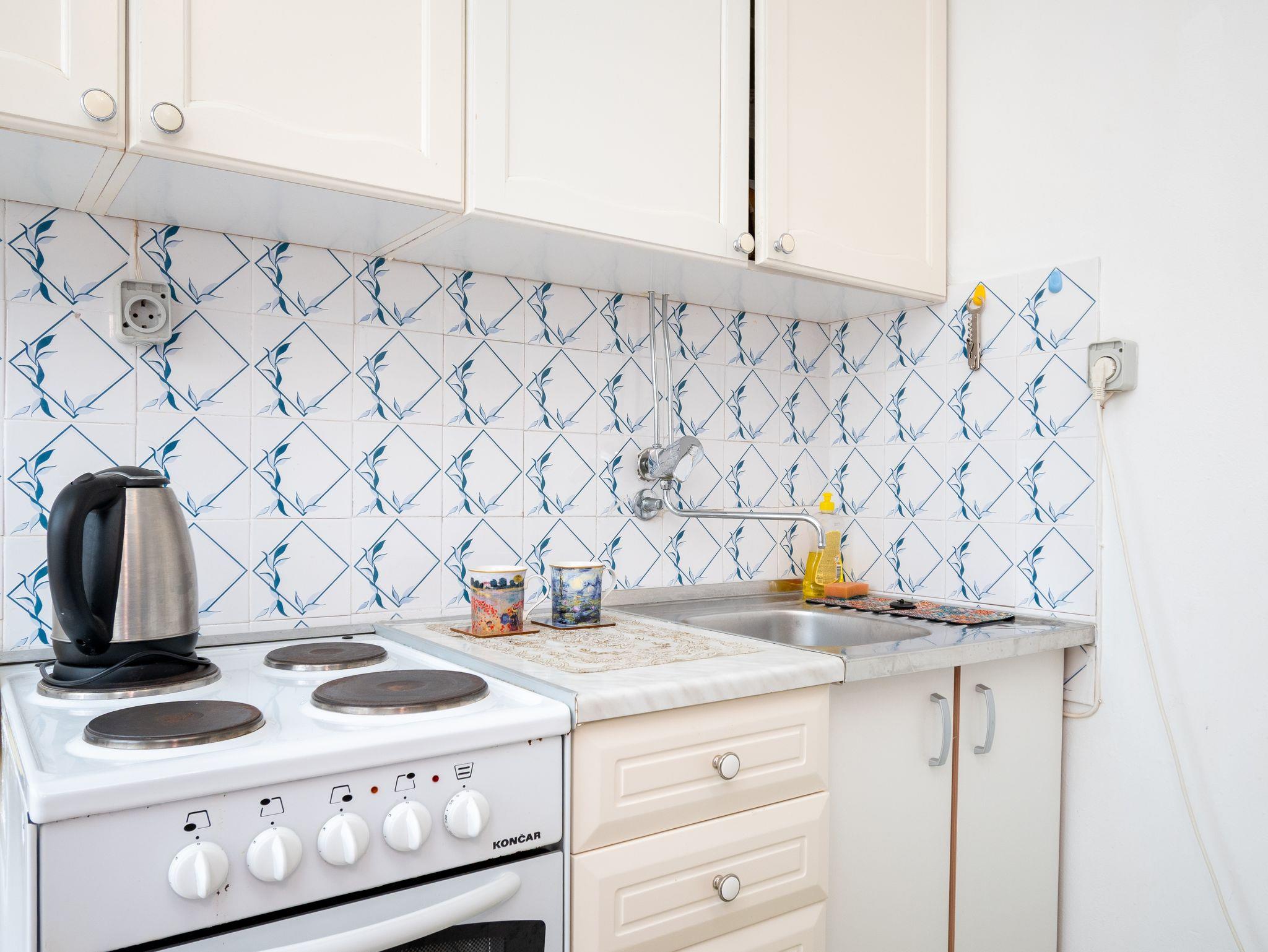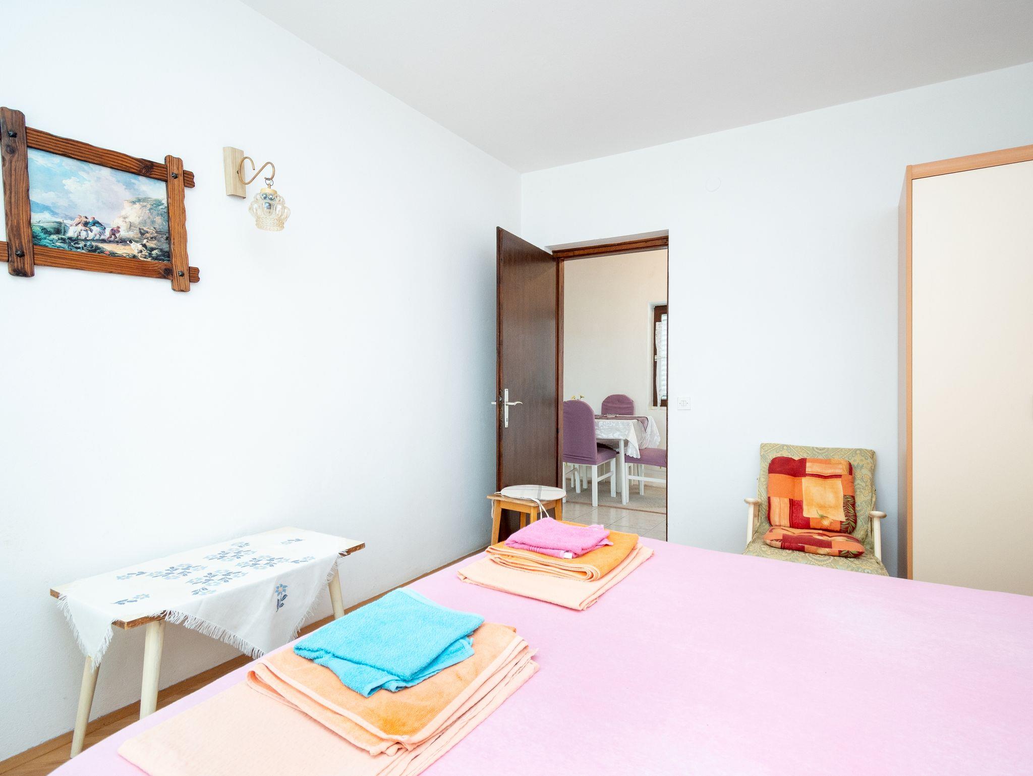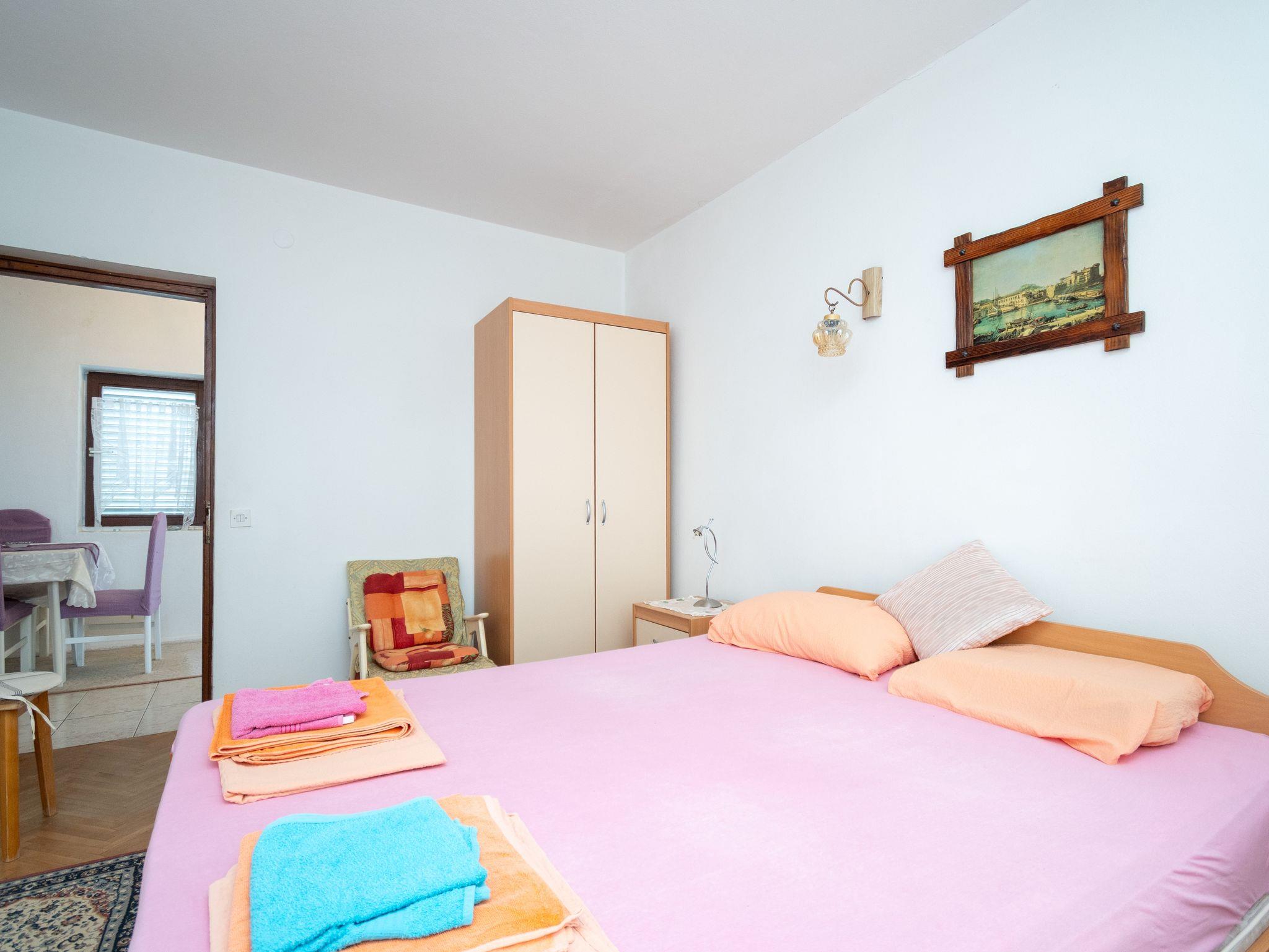 Studio bietet Platz für 4 Gäste. Die Betten sind in Schlafzimmern, die es 2 gibt, innerhalb einer Gesamtfläche von 44m2, angeordnet. Die Gäste haben eine eigene Terrasse zur Verfügung, auf der sie in warmen Sommernächten genießen können. Es ist erlaubt, Speisen auf dem Gemeinschafts-Grill vorzubereiten. IM PREIS INBEGRIFFEN: Kurtaxe, Endreinigung, Parkplatz, Internet, Bootsanlegeplatz, Bügeleisen, Föhn, Sonnenschirm, Liegestühle. VERBINDLICHE ZUSÄTZLICHE KOSTEN: Aufzahlung für Kurzaufenthalte (prozentualer Zuschlag pro Nächtigungsanzahl: 30% - 1, 20% - 2, 10% - 3). Die Verfügbarkeit zusätzlicher Dienstleistungen in Ihrem reservierten Termin und die Preise derselben (falls nicht aufgeführt) müssen im Voraus überprüft werden. Zusätzliche Dienstleistungen die in der Zahlungsaufforderung nicht aufgeführt sind werden direkt beim Vermieter bezahlt, angenommen der Gast nutzt auch diese.