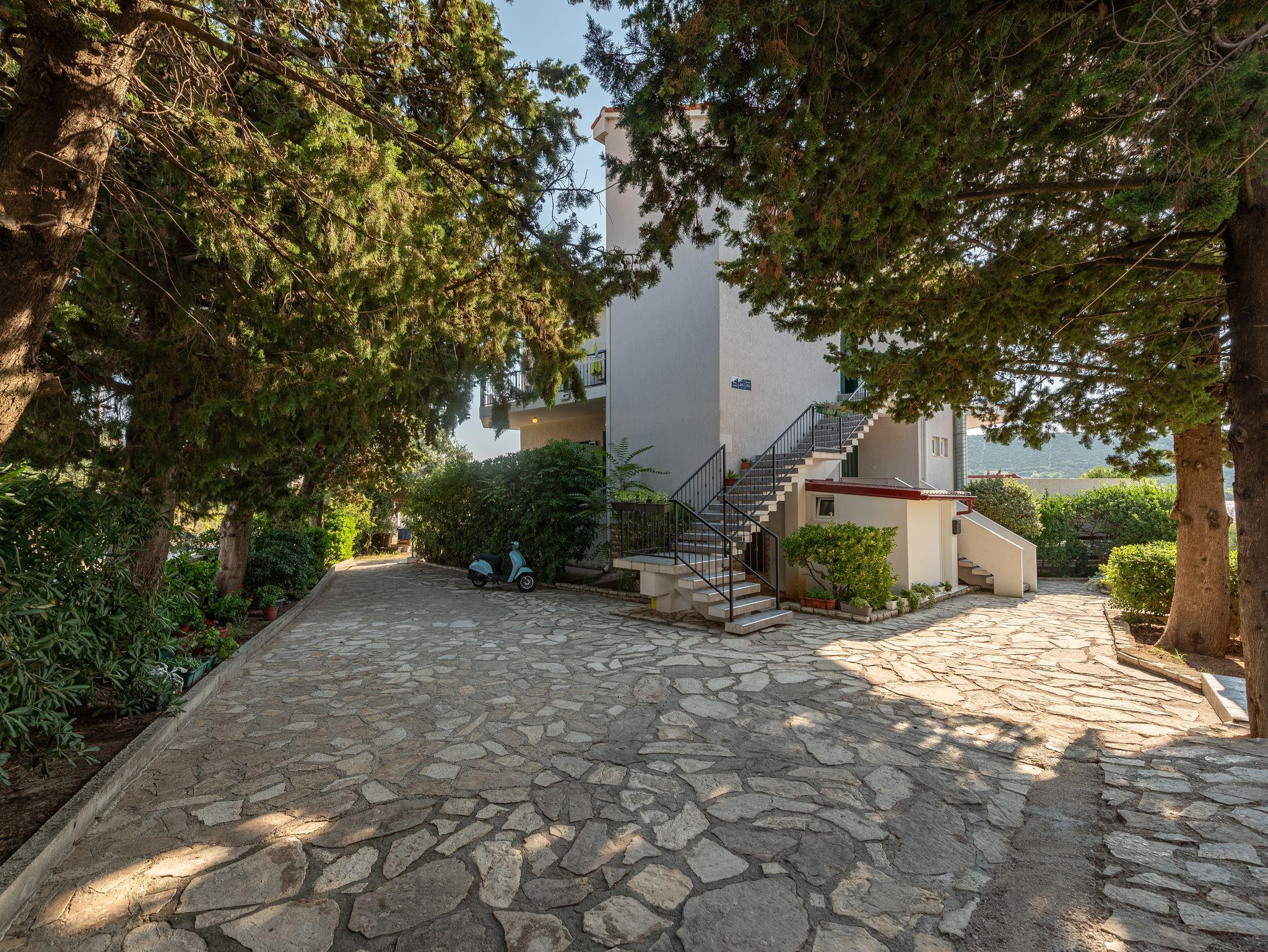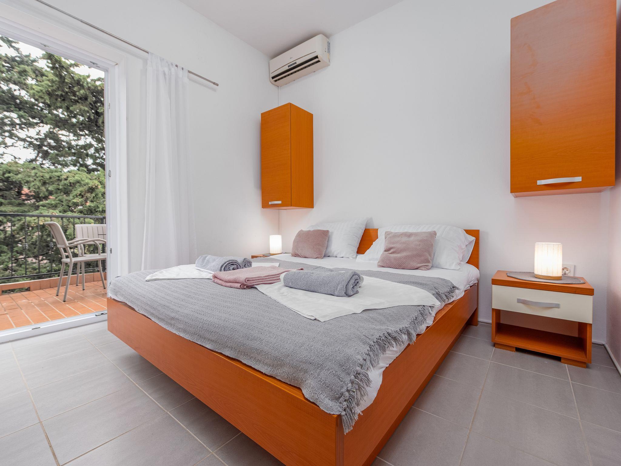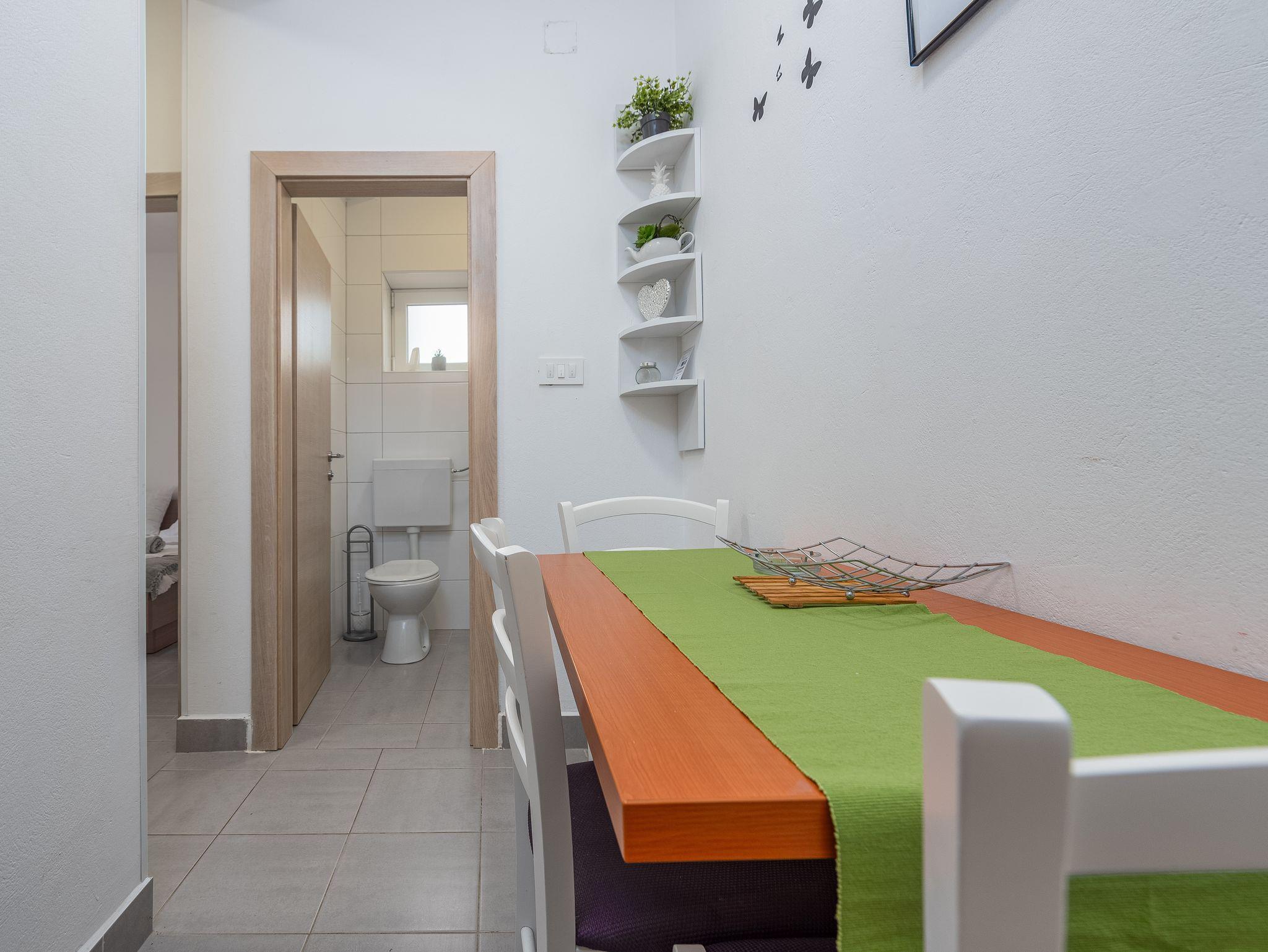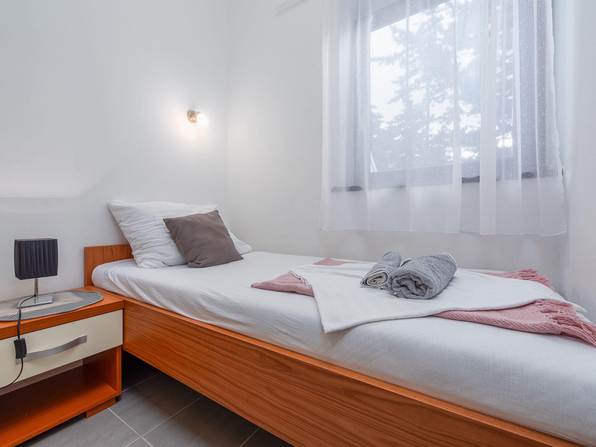 Ferienwohnung bietet Platz für 3 Gäste. Die Betten sind in Schlafzimmern, die es 2 gibt, innerhalb einer Gesamtfläche von 22m2, angeordnet. Die Gäste haben eine eigene Terrasse zur Verfügung, auf der sie in warmen Sommernächten genießen können. Das Apartment bietet Meerblick. Es ist erlaubt, Speisen auf dem Gemeinschafts-Grill vorzubereiten. IM PREIS INBEGRIFFEN: Kurtaxe, Endreinigung, Klimatisierung, Parkplatz, Bootsanlegeplatz, Föhn. VERBINDLICHE ZUSÄTZLICHE KOSTEN: Aufzahlung für Kurzaufenthalte (prozentualer Zuschlag pro Nächtigungsanzahl: 30% - 1, 20% - 2, 10% - 3). Die Verfügbarkeit zusätzlicher Dienstleistungen in Ihrem reservierten Termin und die Preise derselben (falls nicht aufgeführt) müssen im Voraus überprüft werden. Zusätzliche Dienstleistungen die in der Zahlungsaufforderung nicht aufgeführt sind werden direkt beim Vermieter bezahlt, angenommen der Gast nutzt auch diese.