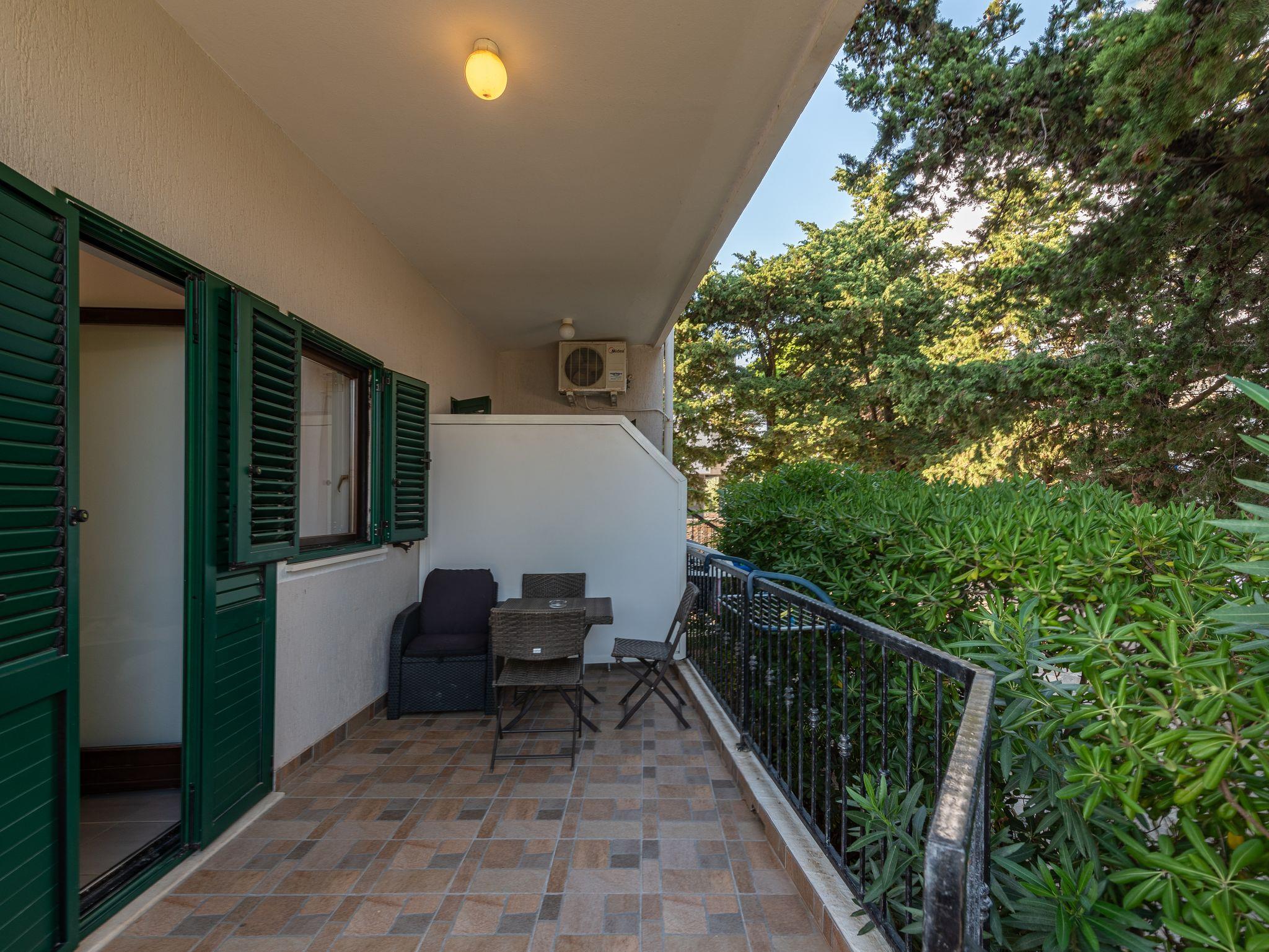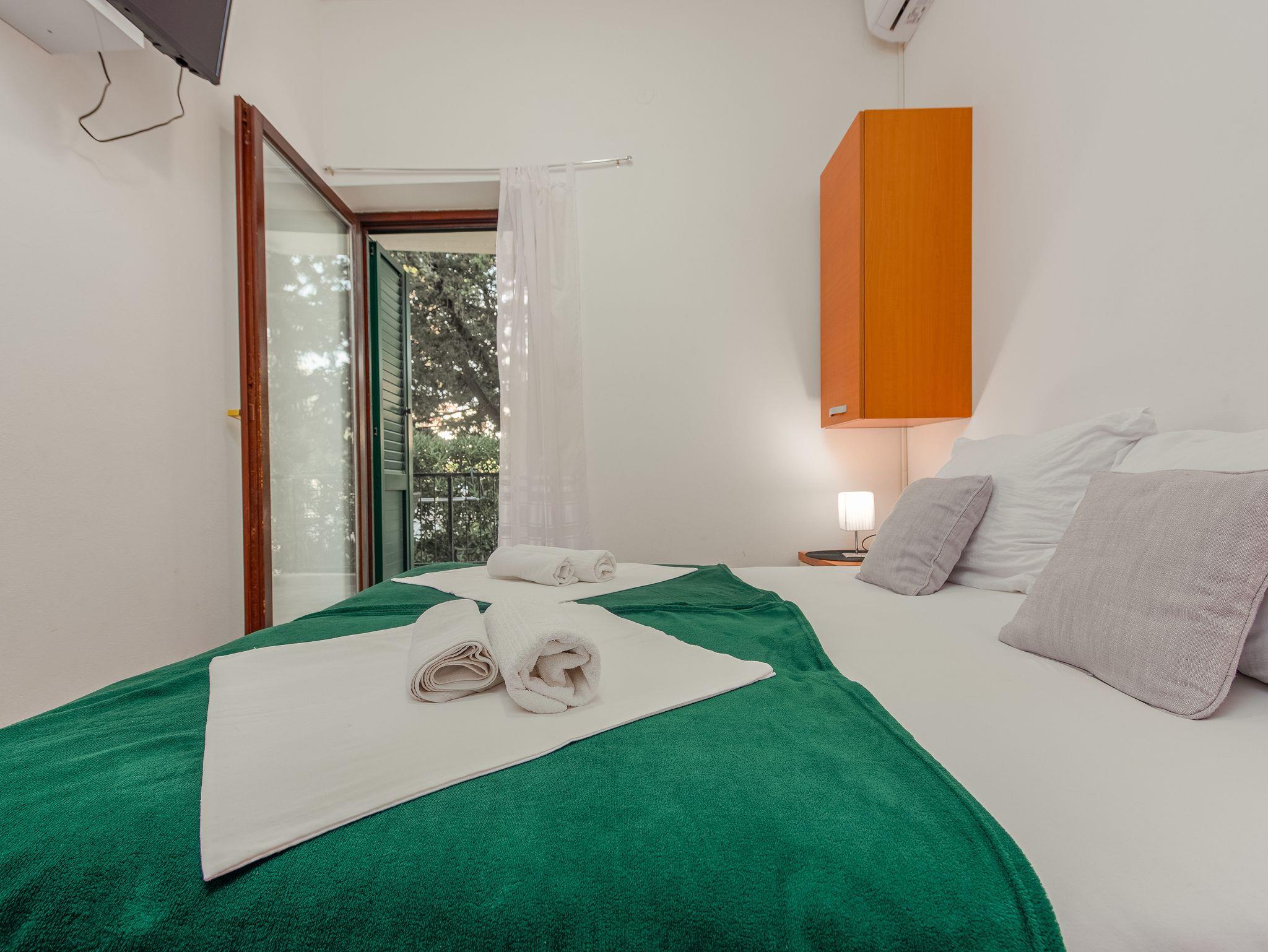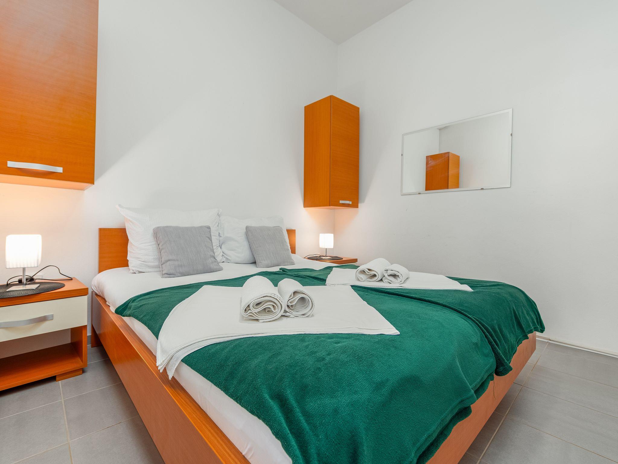 Ferienwohnung bietet Platz für 3 Gäste. Die Betten sind in Schlafzimmern, die es 2 gibt, innerhalb einer Gesamtfläche von 22m2, angeordnet. Die Gäste haben eine eigene Terrasse zur Verfügung, auf der sie in warmen Sommernächten genießen können. Das Apartment bietet Meerblick. Es ist erlaubt, Speisen auf dem Gemeinschafts-Grill vorzubereiten. IM PREIS INBEGRIFFEN: Kurtaxe, Endreinigung, Klimatisierung, Parkplatz, Bootsanlegeplatz, Föhn. VERBINDLICHE ZUSÄTZLICHE KOSTEN: Aufzahlung für Kurzaufenthalte (prozentualer Zuschlag pro Nächtigungsanzahl: 30% - 1, 20% - 2, 10% - 3). Die Verfügbarkeit zusätzlicher Dienstleistungen in Ihrem reservierten Termin und die Preise derselben (falls nicht aufgeführt) müssen im Voraus überprüft werden. Zusätzliche Dienstleistungen die in der Zahlungsaufforderung nicht aufgeführt sind werden direkt beim Vermieter bezahlt, angenommen der Gast nutzt auch diese.