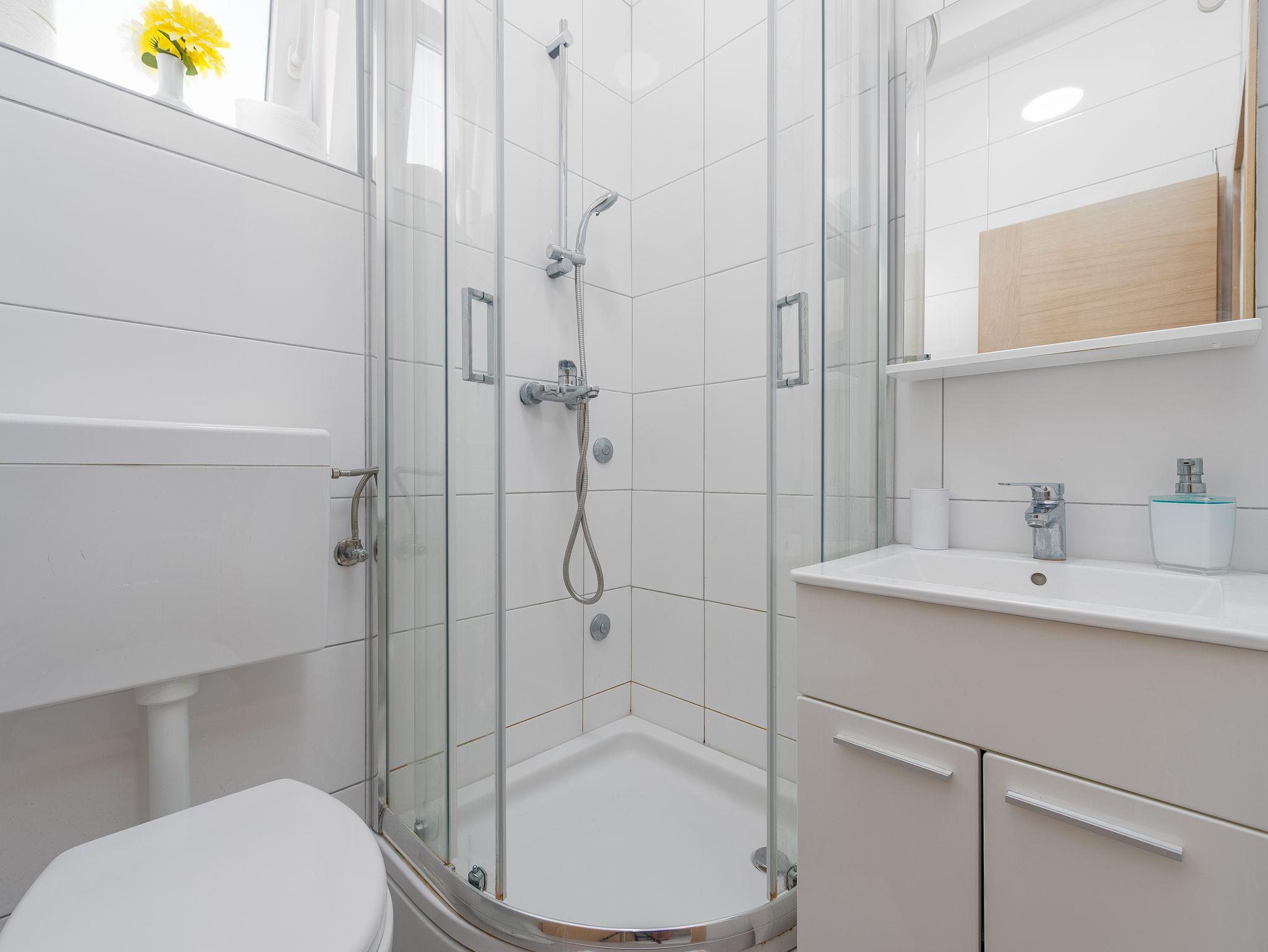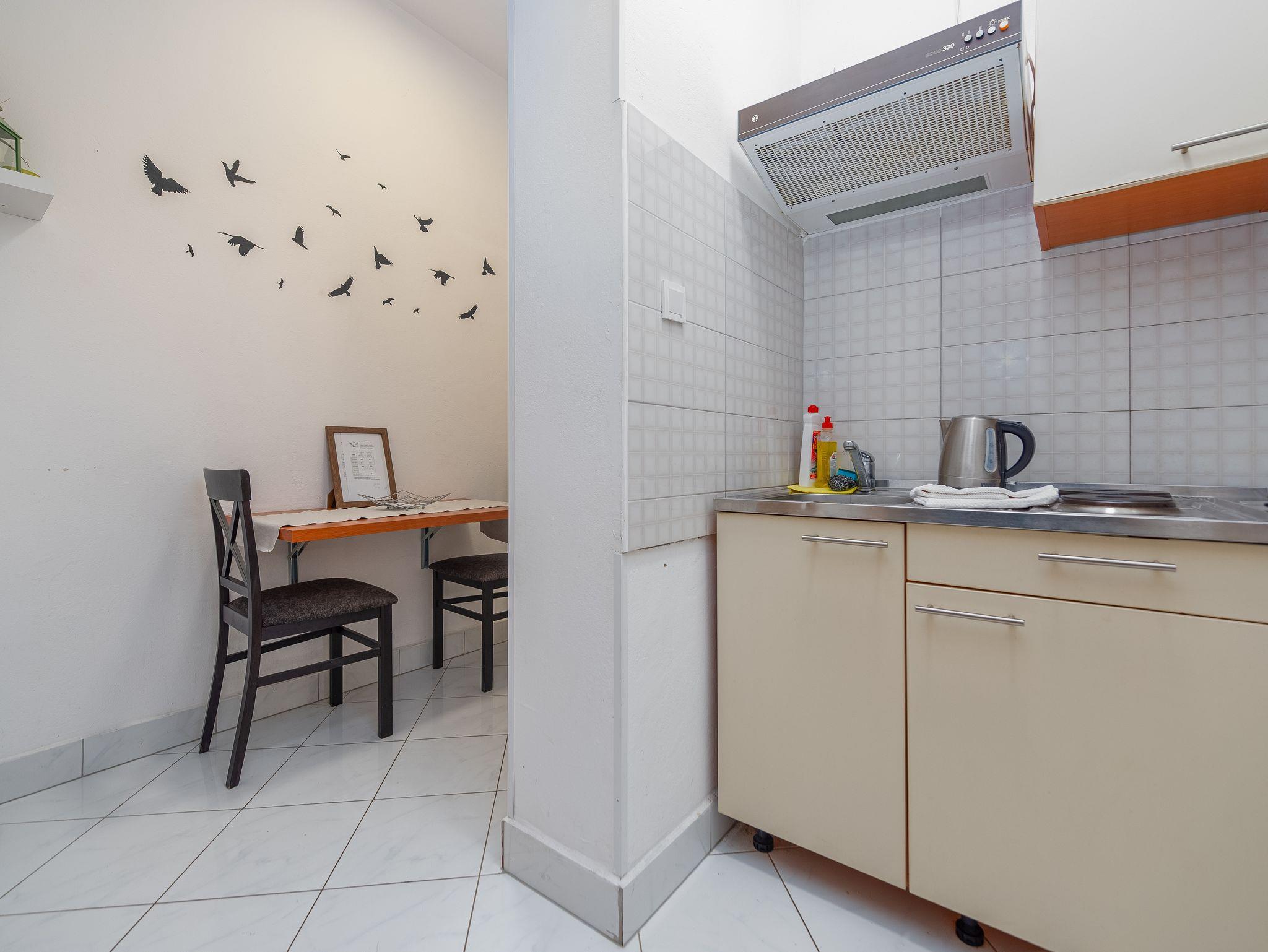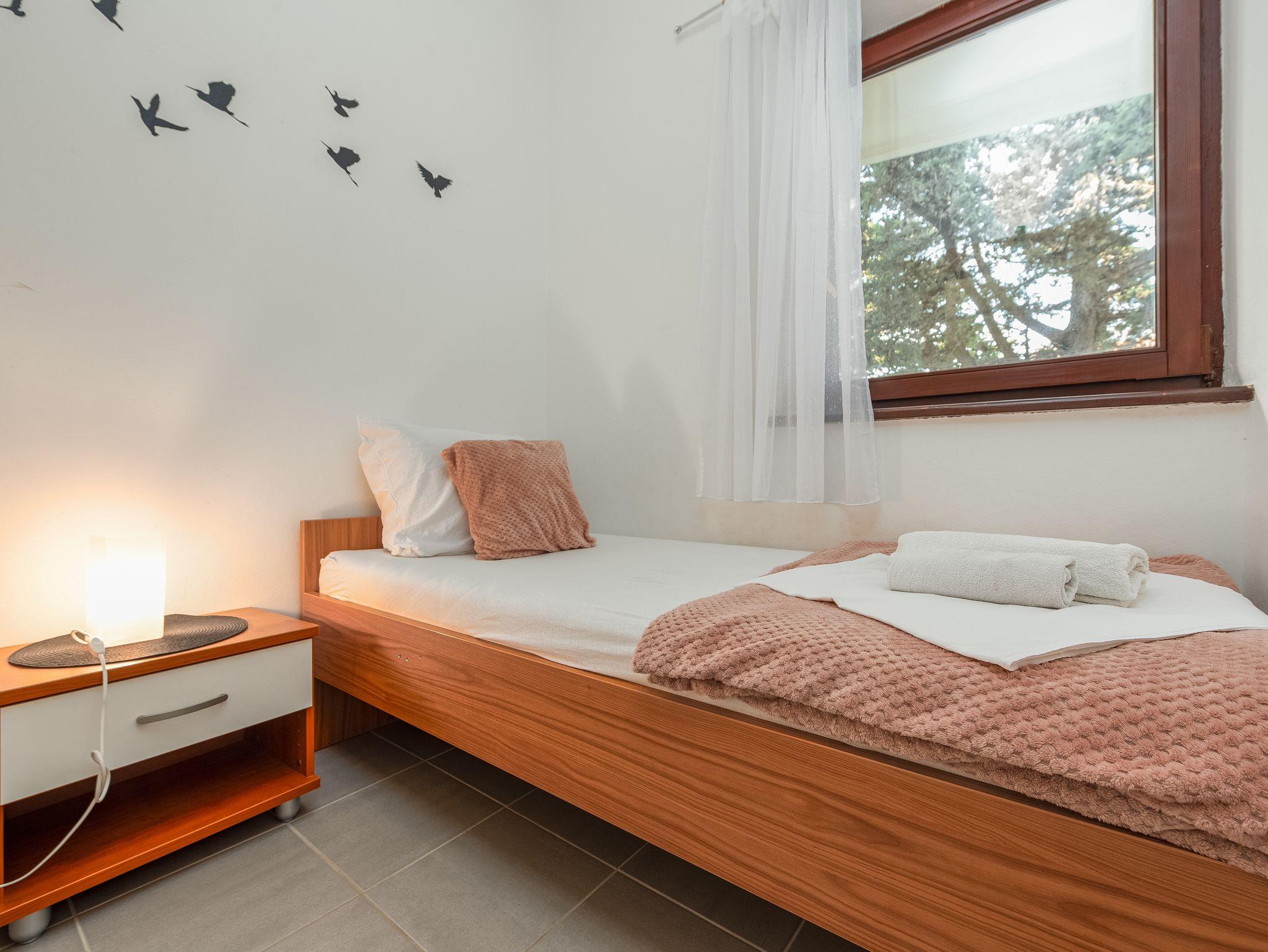 Ferienwohnung bietet Platz für 3 Gäste. Die Betten sind in Schlafzimmern, die es 2 gibt, innerhalb einer Gesamtfläche von 22m2, angeordnet. Die Gäste haben eine eigene Terrasse zur Verfügung, auf der sie in warmen Sommernächten genießen können. Das Apartment bietet Meerblick. Es ist erlaubt, Speisen auf dem Gemeinschafts-Grill vorzubereiten. IM PREIS INBEGRIFFEN: Kurtaxe, Endreinigung, Klimatisierung, Parkplatz, Bootsanlegeplatz, Föhn. VERBINDLICHE ZUSÄTZLICHE KOSTEN: Aufzahlung für Kurzaufenthalte (prozentualer Zuschlag pro Nächtigungsanzahl: 30% - 1, 20% - 2, 10% - 3). Die Verfügbarkeit zusätzlicher Dienstleistungen in Ihrem reservierten Termin und die Preise derselben (falls nicht aufgeführt) müssen im Voraus überprüft werden. Zusätzliche Dienstleistungen die in der Zahlungsaufforderung nicht aufgeführt sind werden direkt beim Vermieter bezahlt, angenommen der Gast nutzt auch diese.