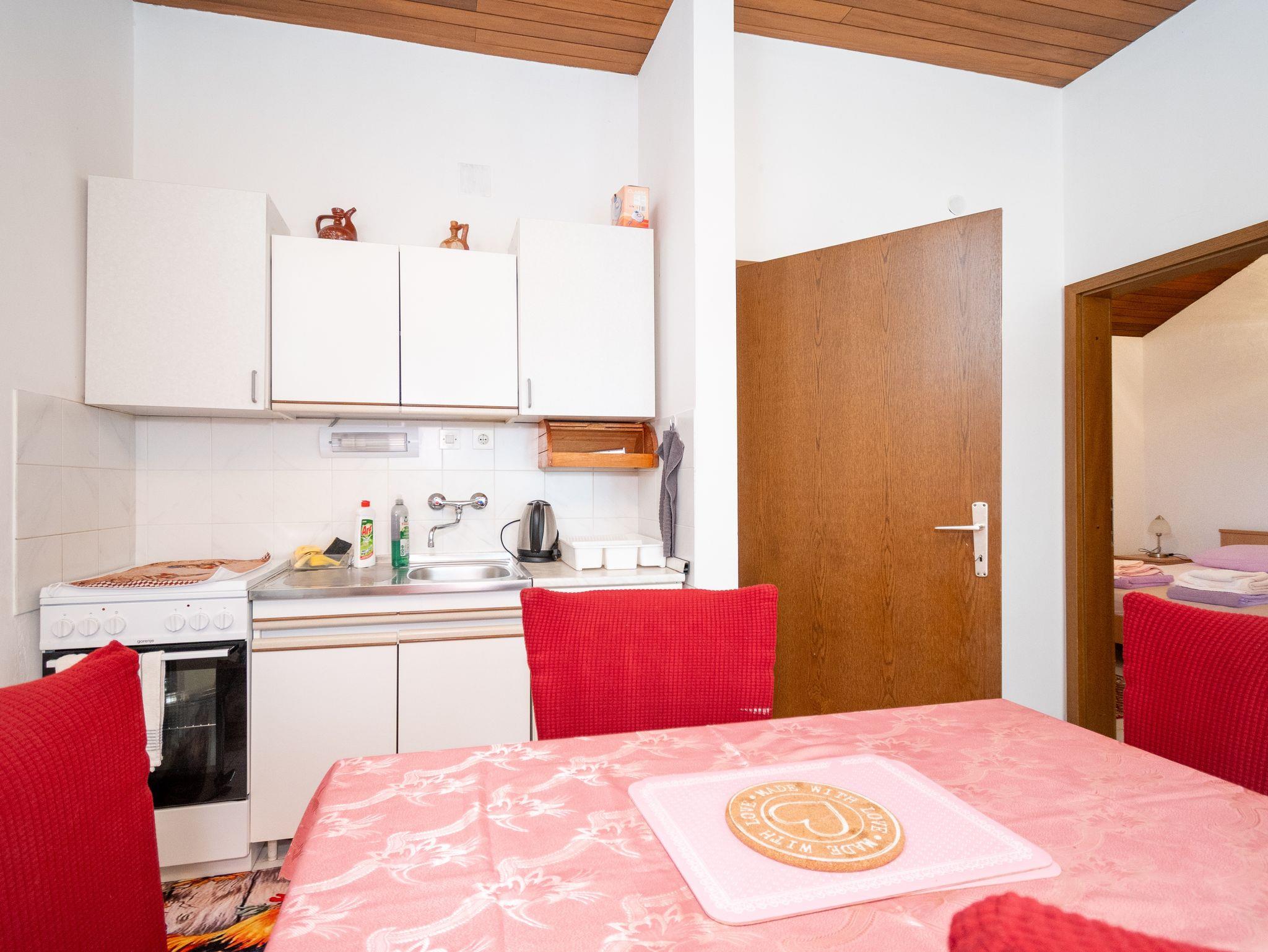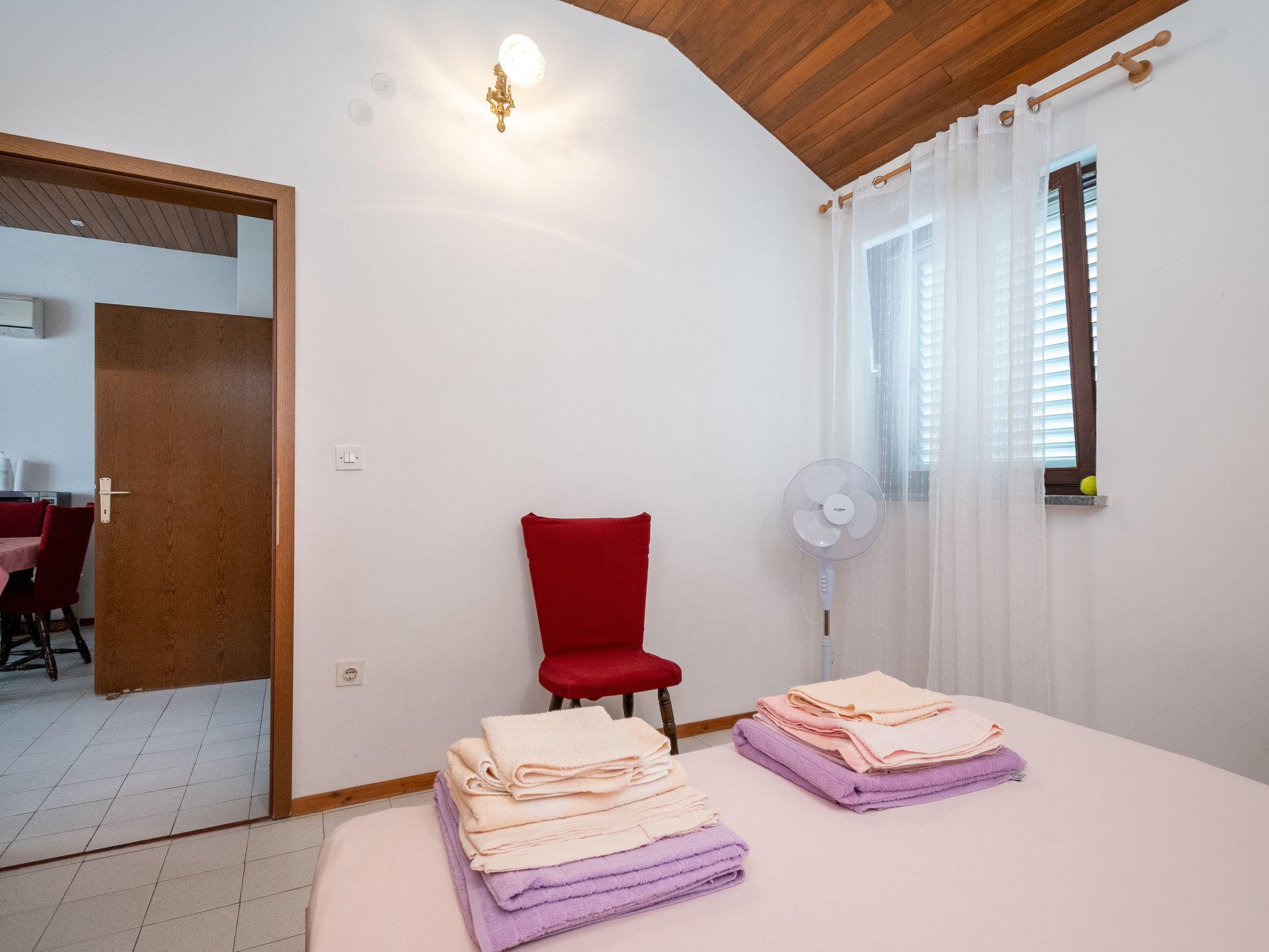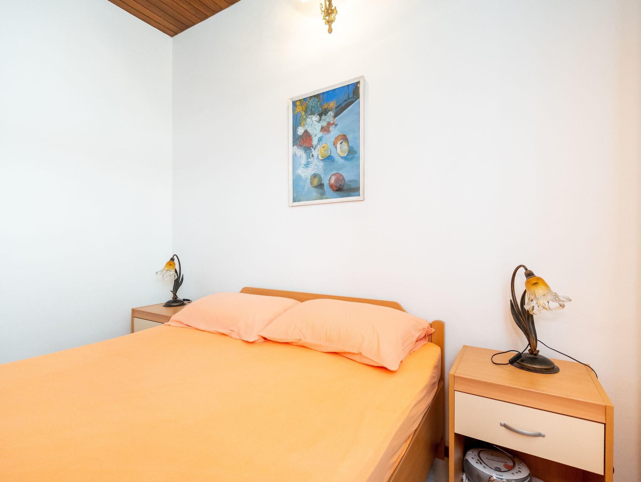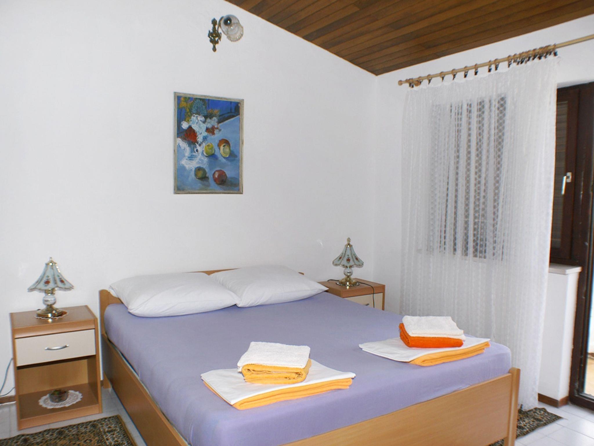 Ferienwohnung bietet Platz für 4 Gäste. Die Betten sind in Schlafzimmern, die es 2 gibt, innerhalb einer Gesamtfläche von 46m2, angeordnet. Die Gäste haben eine eigene Terrasse zur Verfügung, auf der sie in warmen Sommernächten genießen können. Das Apartment bietet Meerblick. Es ist erlaubt, Speisen auf dem Gemeinschafts-Grill vorzubereiten. IM PREIS INBEGRIFFEN: Kurtaxe, Endreinigung, Klimatisierung, Parkplatz, Internet, Bootsanlegeplatz, Bügeleisen, Föhn, Sonnenschirm, Liegestühle. VERBINDLICHE ZUSÄTZLICHE KOSTEN: Aufzahlung für Kurzaufenthalte (prozentualer Zuschlag pro Nächtigungsanzahl: 30% - 1, 20% - 2, 10% - 3). Die Verfügbarkeit zusätzlicher Dienstleistungen in Ihrem reservierten Termin und die Preise derselben (falls nicht aufgeführt) müssen im Voraus überprüft werden. Zusätzliche Dienstleistungen die in der Zahlungsaufforderung nicht aufgeführt sind werden direkt beim Vermieter bezahlt, angenommen der Gast nutzt auch diese.