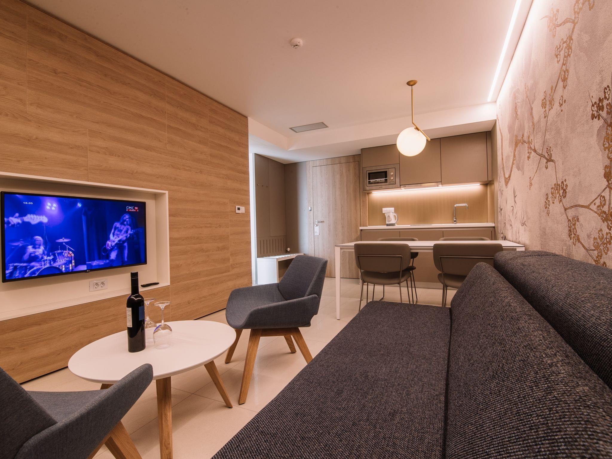 Ferienwohnung bietet Platz für 4 Gäste. Die Betten sind in Schlafzimmern, die es 1 gibt, und in Wohnzimmer, innerhalb einer Gesamtfläche von 46m2, angeordnet. Die Gäste haben einen eigenen Balkon zur Verfügung, auf der sie in warmen Sommernächten genießen können. Das Apartment bietet Meerblick. Während ihres Aufenthalts können Gäste das gemeinsam zur Nutzung stehende Schwimmbad benutzen. In der Unterkunftseinheit besteht die Möglichkeit des Mitbringens von Haustieren gegen Aufpreis. IM PREIS INBEGRIFFEN: Frühstück, Endreinigung, Klimatisierung, Zentralheizung, Pool, Parkplatz, Internet, Kinderbett, Bügeleisen, Bügelbrett, Föhn. VERBINDLICHE ZUSÄTZLICHE KOSTEN: Kurtaxe (Erwachsene 0,93 € - 1,60 € Nacht/Person, Kinderermäßigung 12 - 17 Jahre). UNVERBINDLICHE ZUSÄTZLICHE KOSTEN: Haustiere (15,00 € pro Nacht). Die Verfügbarkeit zusätzlicher Dienstleistungen in Ihrem reservierten Termin und die Preise derselben (falls nicht aufgeführt) müssen im Voraus überprüft werden. Zusätzliche Dienstleistungen die in der Zahlungsaufforderung nicht aufgeführt sind werden direkt beim Vermieter bezahlt, angenommen der Gast nutzt auch diese. Ermäßigung auf den Grundpreis: Gratistag 14=13 (bei einem Aufenthalt von 14 Tagen oder mehr erhalten Sie einen Gratistag für den Aufenthalt bis 31.12.26).