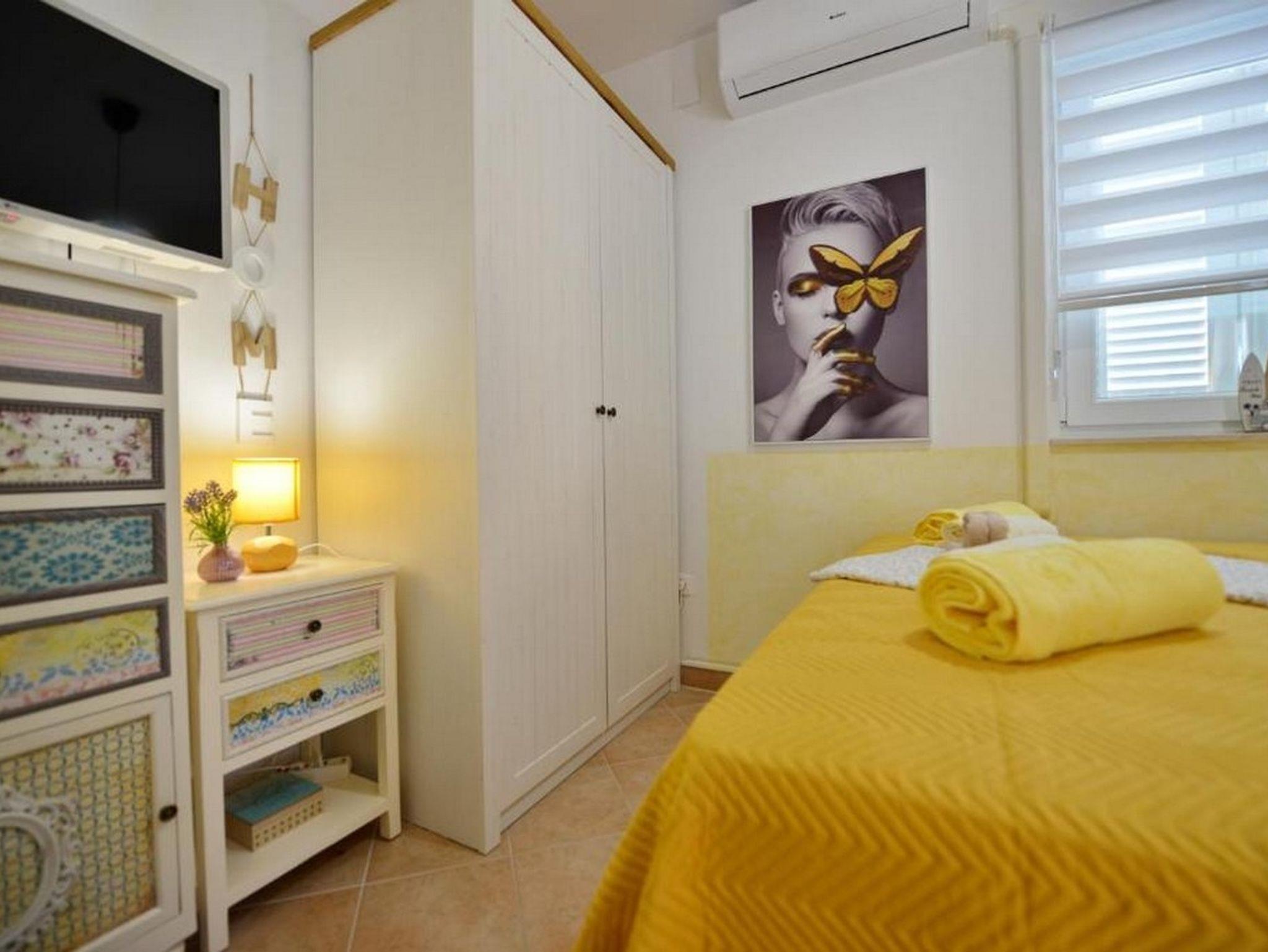 Ferienwohnung bietet Platz für 4 Gäste. Die Betten sind in Schlafzimmern, die es 2 gibt, innerhalb einer Gesamtfläche von 40m2, angeordnet. Die Gäste haben einen eigenen Balkon zur Verfügung, auf der sie in warmen Sommernächten genießen können. Das Apartment bietet Meerblick. IM PREIS INBEGRIFFEN: Kurtaxe, Endreinigung, Klimatisierung, Parkplatz, Internet, Kinderbett, Bügeleisen, Bügelbrett, Föhn. Die Verfügbarkeit zusätzlicher Dienstleistungen in Ihrem reservierten Termin und die Preise derselben (falls nicht aufgeführt) müssen im Voraus überprüft werden. Zusätzliche Dienstleistungen die in der Zahlungsaufforderung nicht aufgeführt sind werden direkt beim Vermieter bezahlt, angenommen der Gast nutzt auch diese.