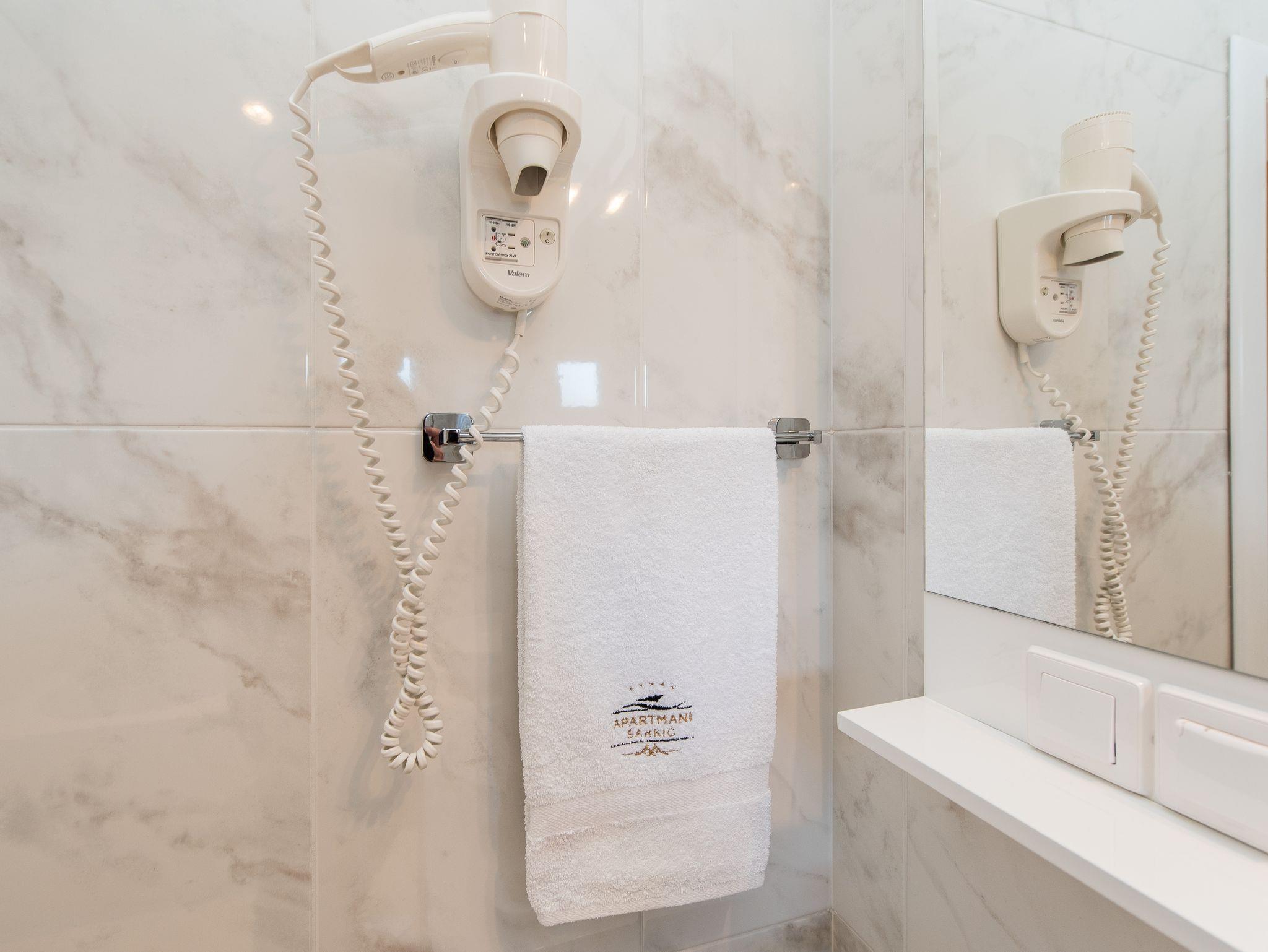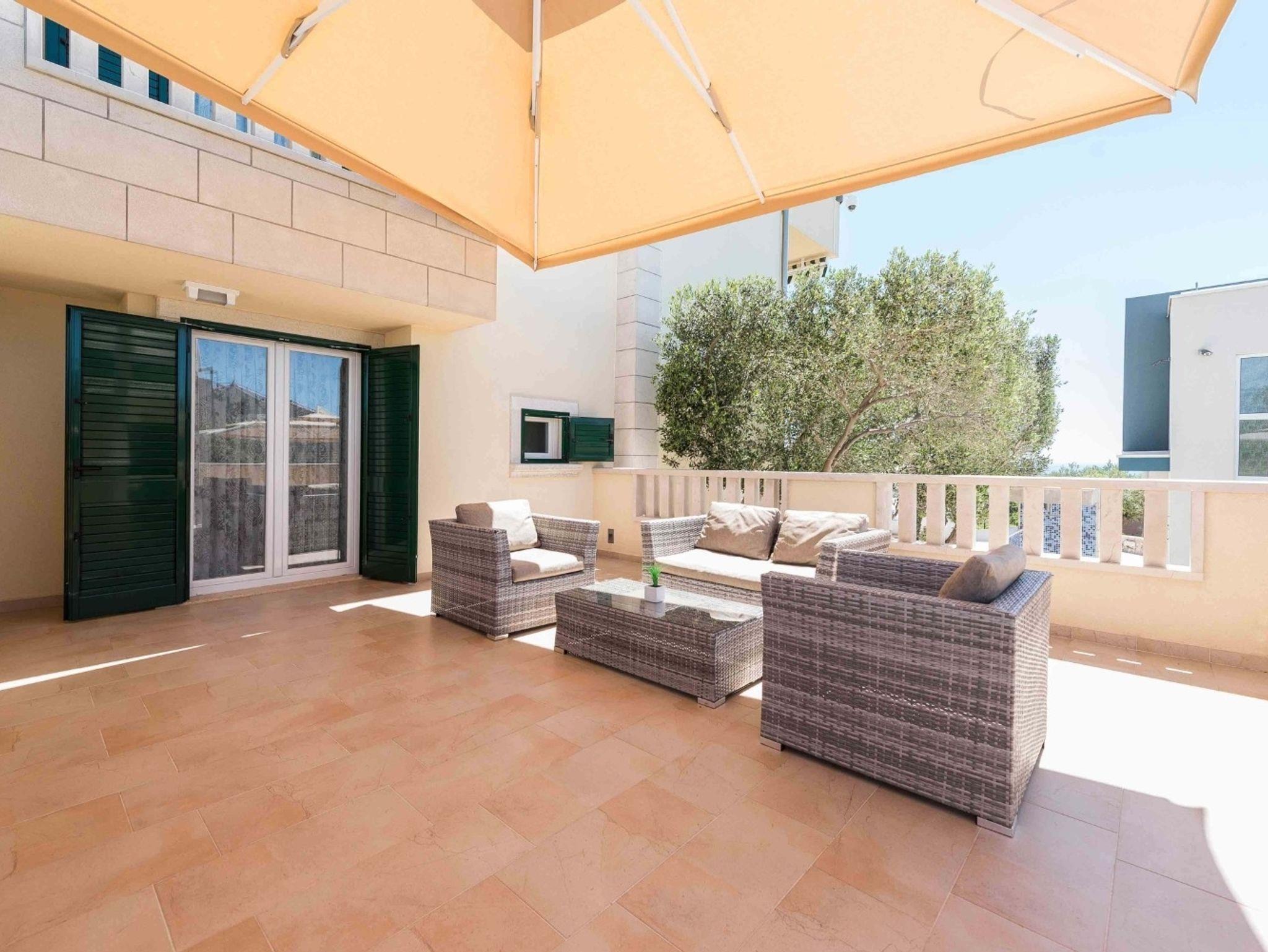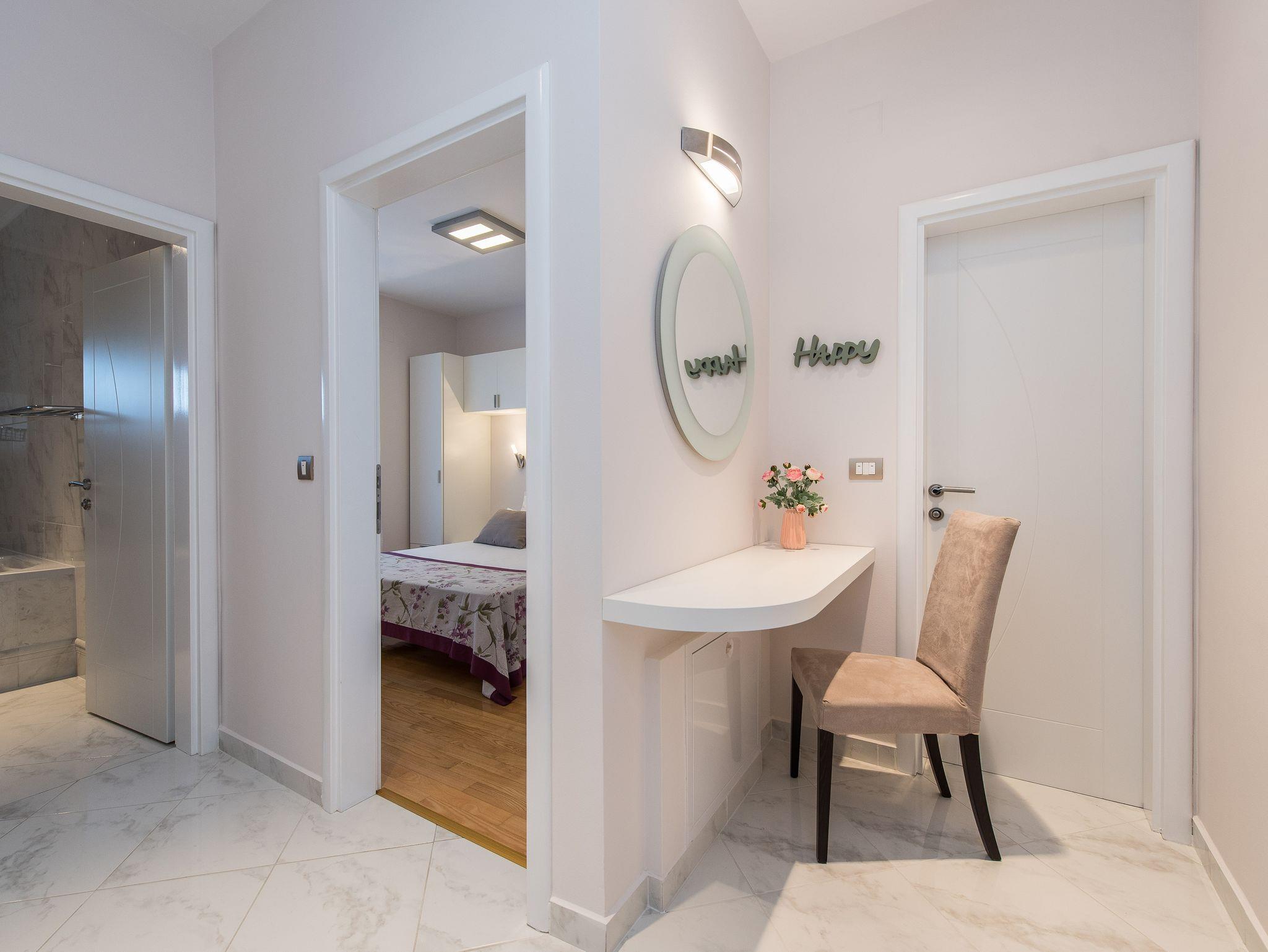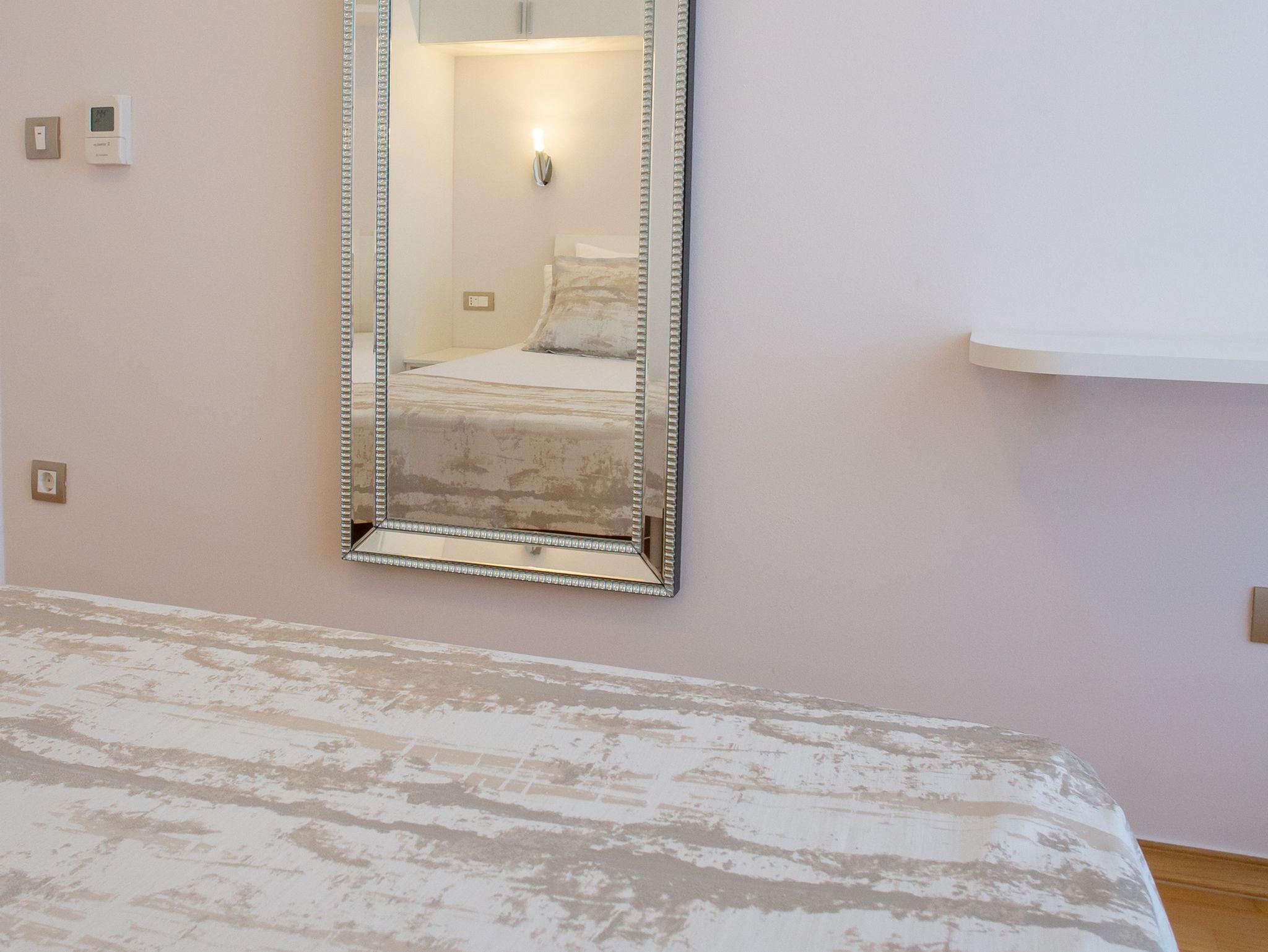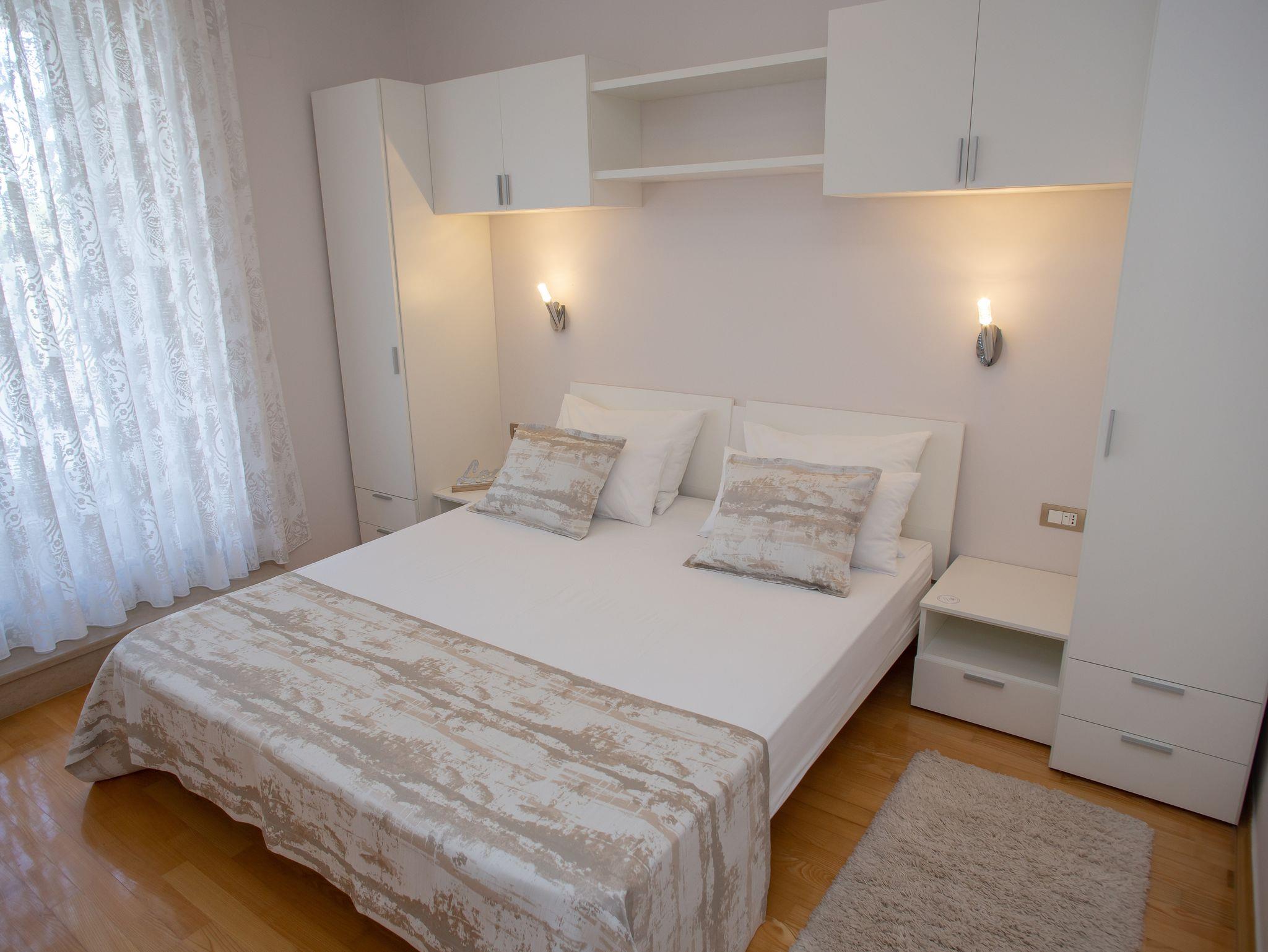 Ferienwohnung bietet Platz für 4 Gäste. Die Betten sind in Schlafzimmern, die es 1 gibt, und in Wohnzimmer, innerhalb einer Gesamtfläche von 55m2, angeordnet. Die Gäste haben eine eigene Terrasse zur Verfügung, auf der sie in warmen Sommernächten genießen können. Das Apartment bietet Meerblick. Es ist erlaubt, Speisen auf dem Gemeinschafts-Grill vorzubereiten. Während ihres Aufenthalts können Gäste das gemeinsam zur Nutzung stehende Schwimmbad benutzen. IM PREIS INBEGRIFFEN: Kurtaxe, Endreinigung, Klimatisierung, Pool, Parkplatz, Garage, Internet, Föhn. UNVERBINDLICHE ZUSÄTZLICHE KOSTEN: Wäschewaschen (10,00 € Waschen). Die Verfügbarkeit zusätzlicher Dienstleistungen in Ihrem reservierten Termin und die Preise derselben (falls nicht aufgeführt) müssen im Voraus überprüft werden. Zusätzliche Dienstleistungen die in der Zahlungsaufforderung nicht aufgeführt sind werden direkt beim Vermieter bezahlt, angenommen der Gast nutzt auch diese. Ermäßigung auf den Grundpreis: Gratistag 14=13 (bei einem Aufenthalt von 14 Tagen oder mehr erhalten Sie einen Gratistag für den Aufenthalt bis 31.12.26).