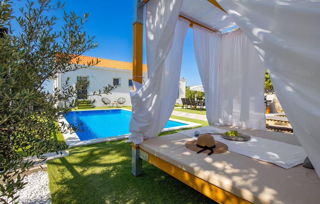 Forkæl jer selv med en afslappende tid på terrassen foran, hvor en solseng, jacuzzi og en betagende udsigt venter på jer. Træk jer tilbage her for at nyde fred og ro. Men der er også meget, der venter på jer bag huset. Svøm og plask i poolen, nyd jeres måltider al fresco eller solbad på sengen eller liggestolene.