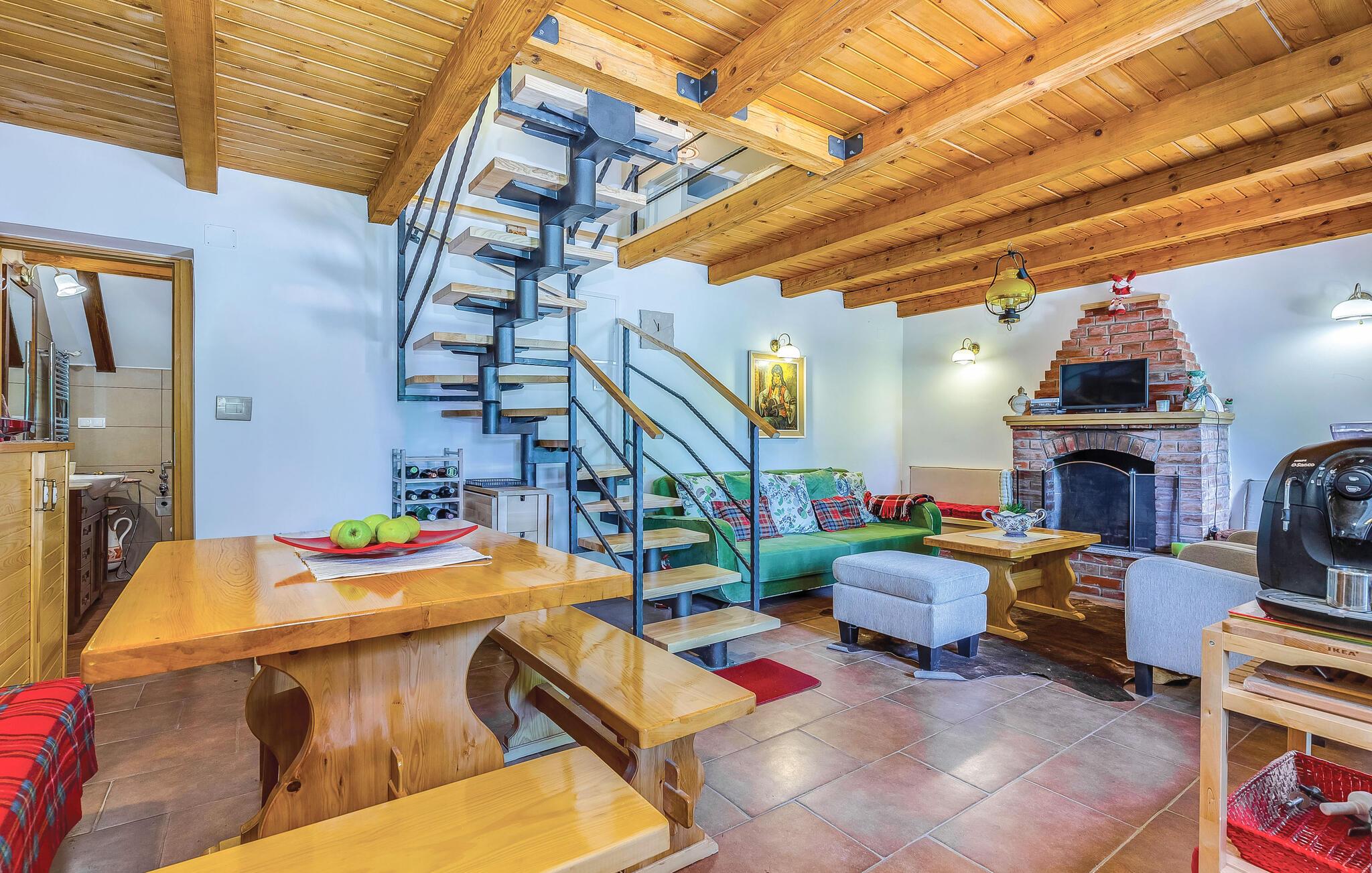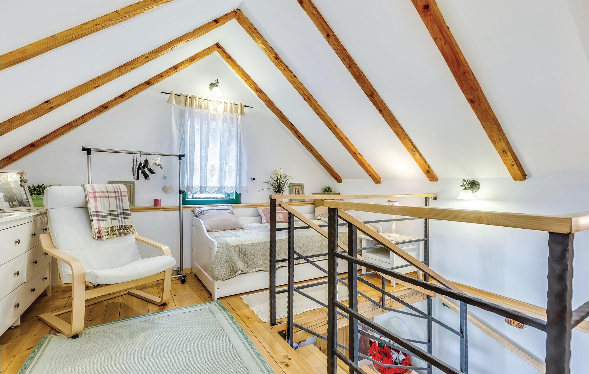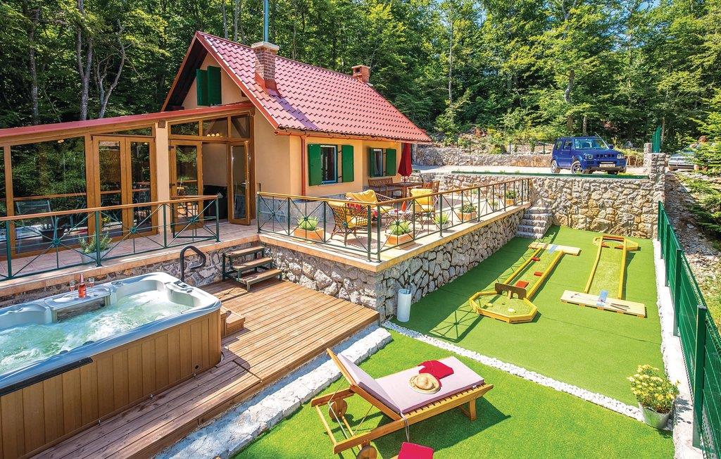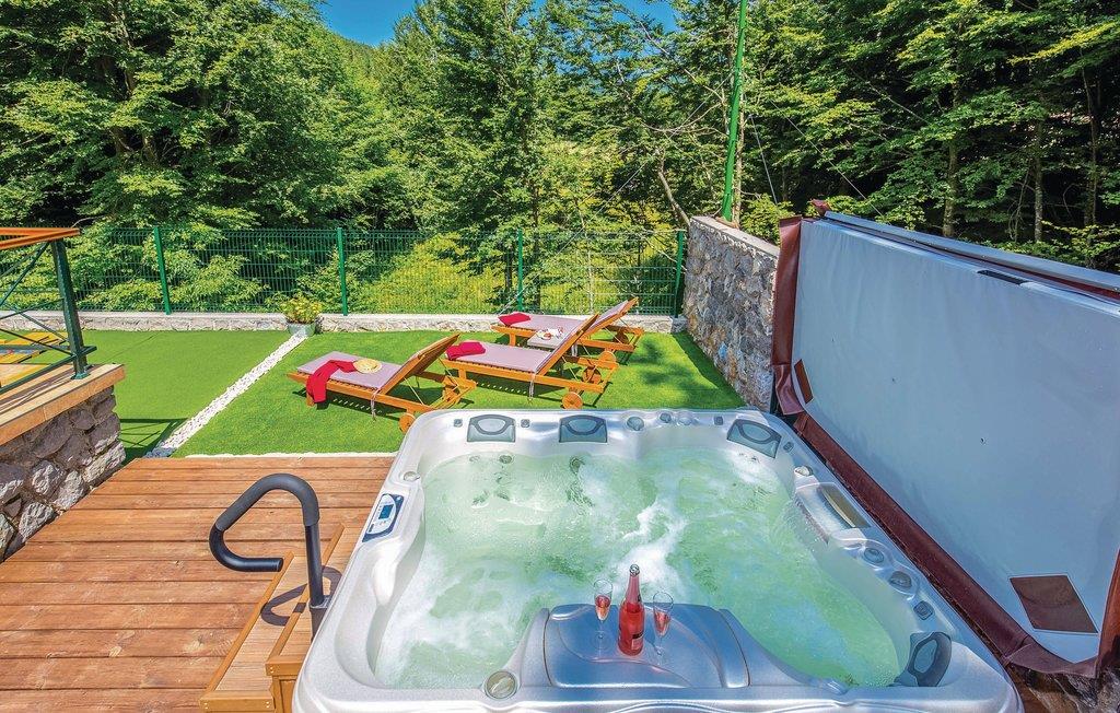 Dette feriehus ligger i det ringe beboede og rolige bagland ved Bribir som er meget populært blandt alle der holder af natur. I stueplan ligger køkkenet i åben forbindelse med stuen, hvor en indre trappe fører op til den rummelige hems med sovemulighed (laveste loftshøjde i siden 100 cm). Over en separat indgang kommer I til sommerkøkkene, hvor der også er grill og samt badeværelse. Dette feriehus er meget charmerende indrettet, med kærlighed helt ned i de små detaljer. Nyd naturen, som vil gøre både krop og sjæl godt eller hop en tur i whirlpoolen og lad de ømme muskler massere af tusinder af bobler. I Novi Vinodolski (22 km) er der skønne kyster og romantiske strande, som sikkert vil fortrylle jer.