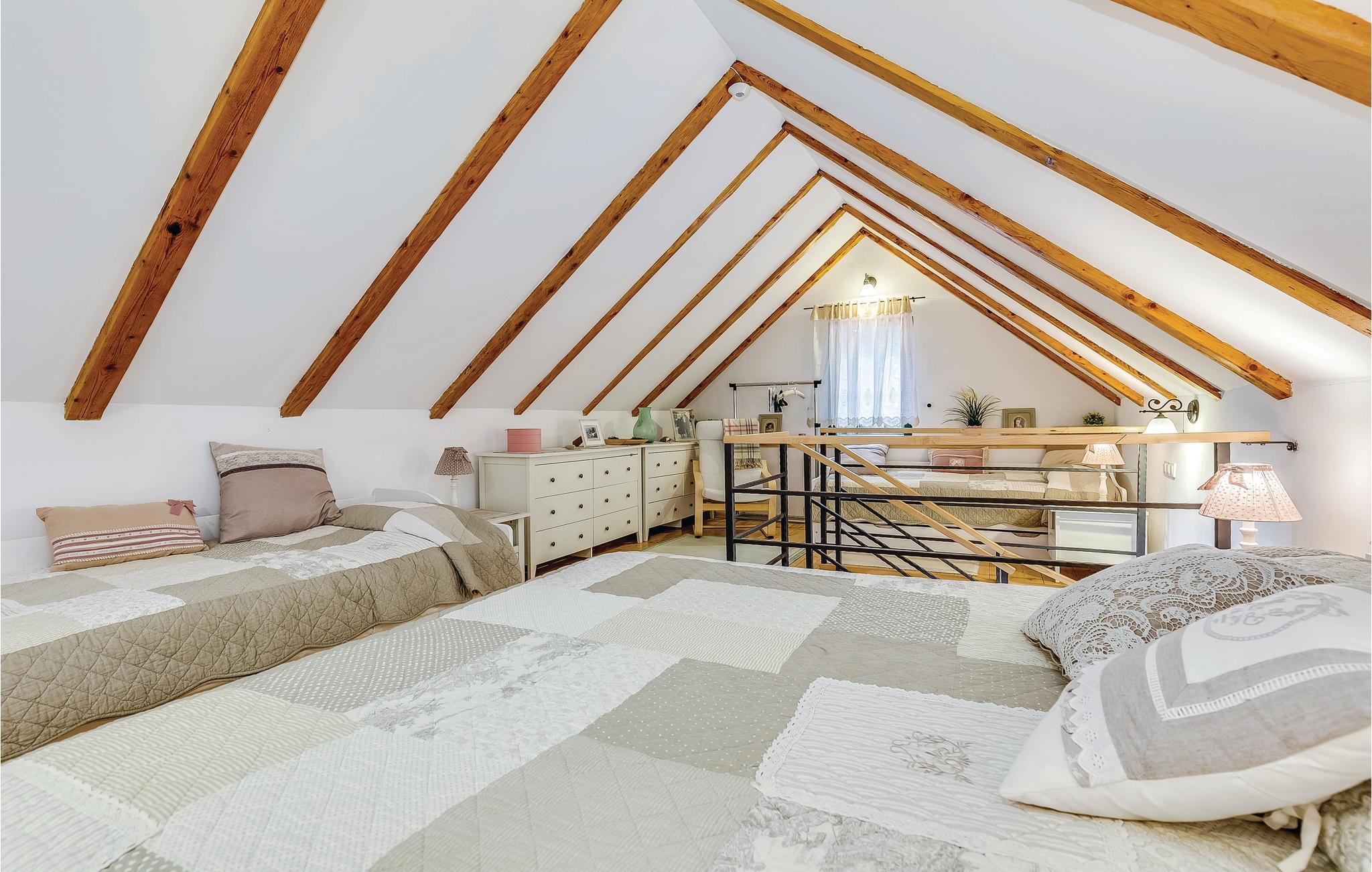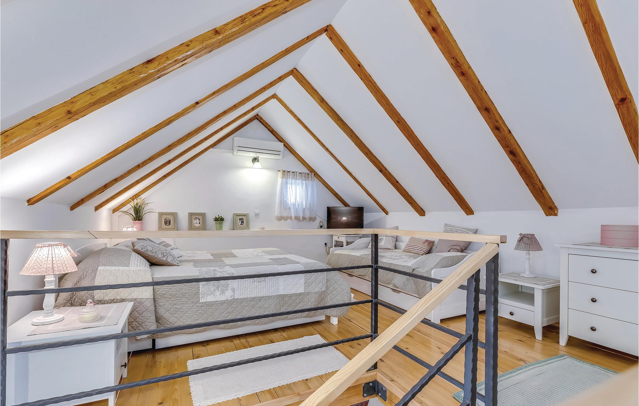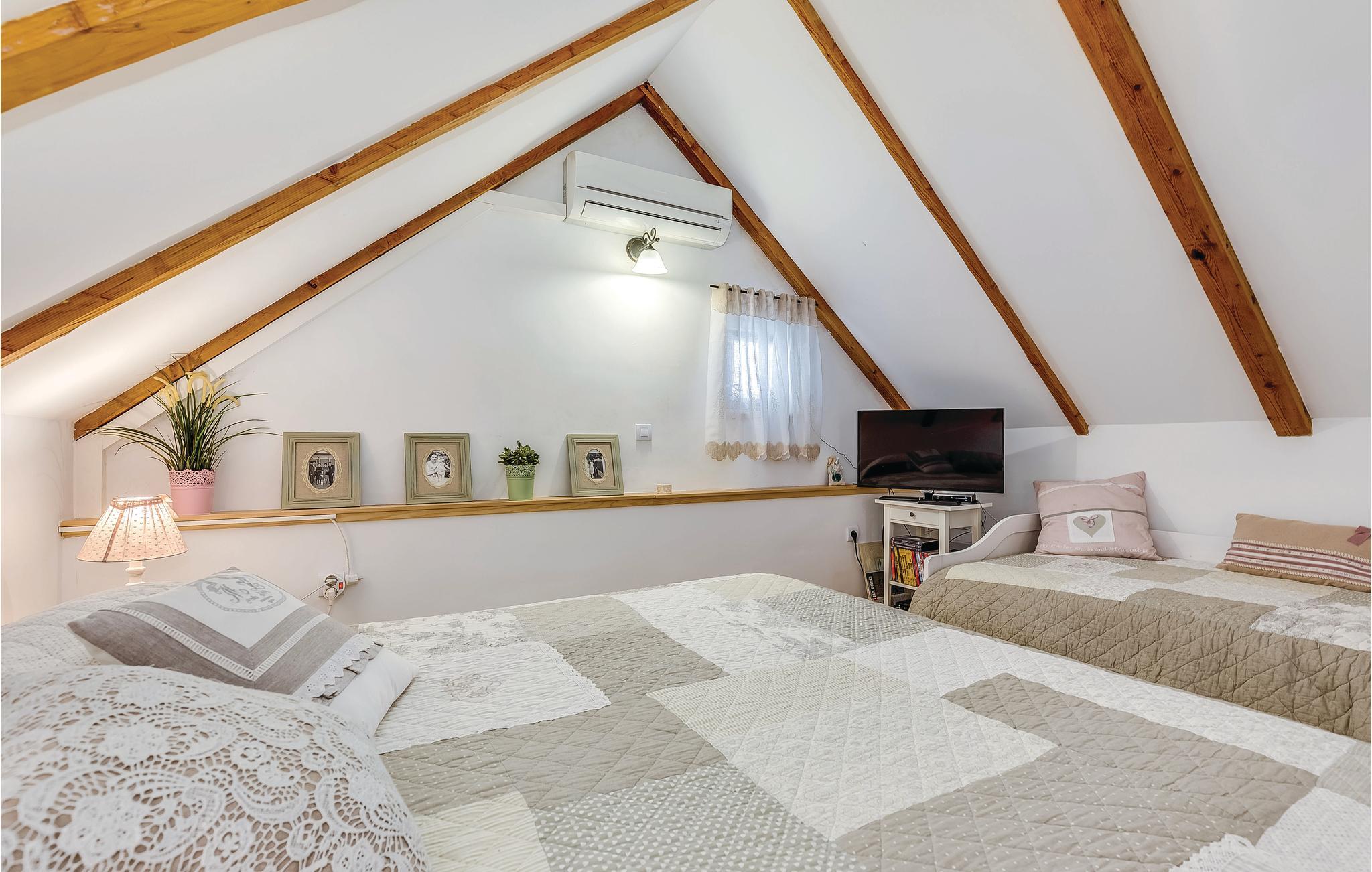 Dette feriehus ligger i det ringe beboede og rolige bagland ved Bribir som er meget populært blandt alle der holder af natur. I stueplan ligger køkkenet i åben forbindelse med stuen, hvor en indre trappe fører op til den rummelige hems med sovemulighed (laveste loftshøjde i siden 100 cm). Over en separat indgang kommer I til sommerkøkkene, hvor der også er grill og samt badeværelse. Dette feriehus er meget charmerende indrettet, med kærlighed helt ned i de små detaljer. Nyd naturen, som vil gøre både krop og sjæl godt eller hop en tur i whirlpoolen og lad de ømme muskler massere af tusinder af bobler. I Novi Vinodolski (22 km) er der skønne kyster og romantiske strande, som sikkert vil fortrylle jer.