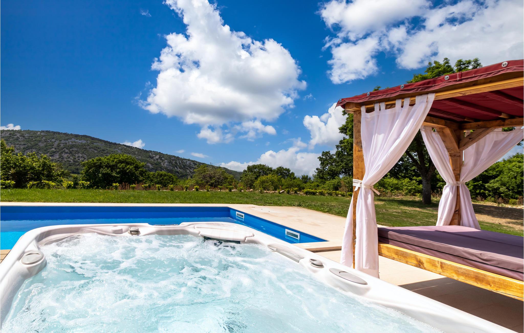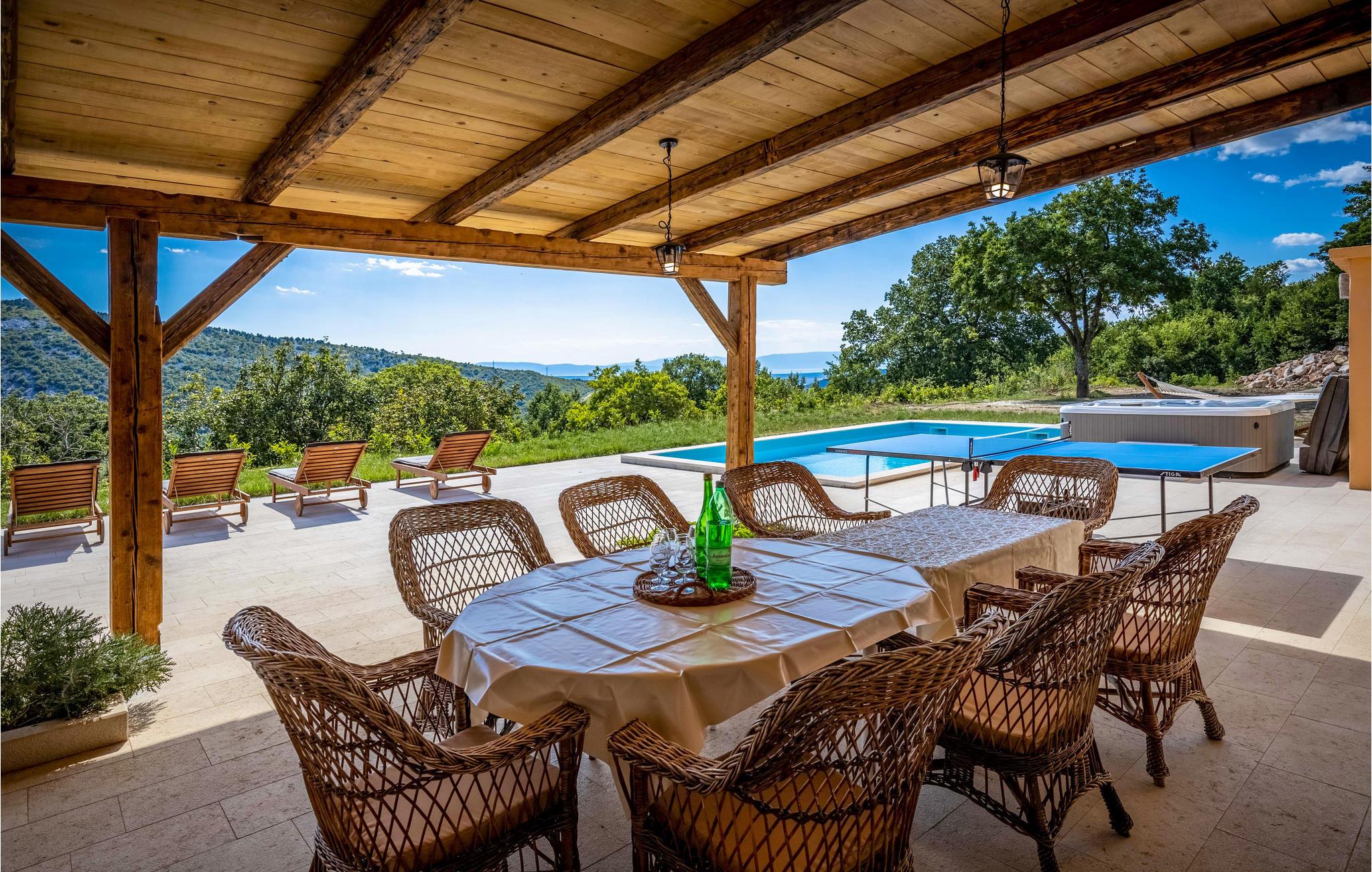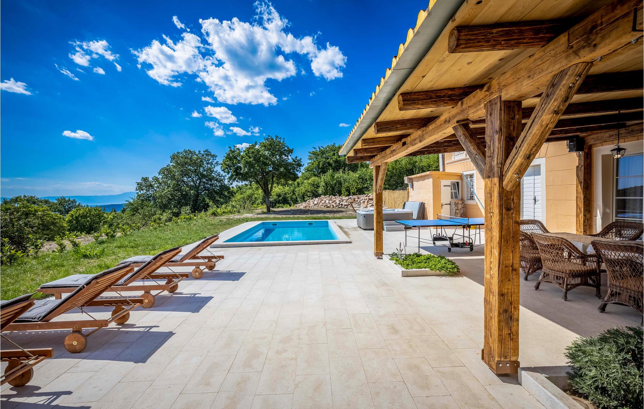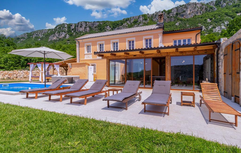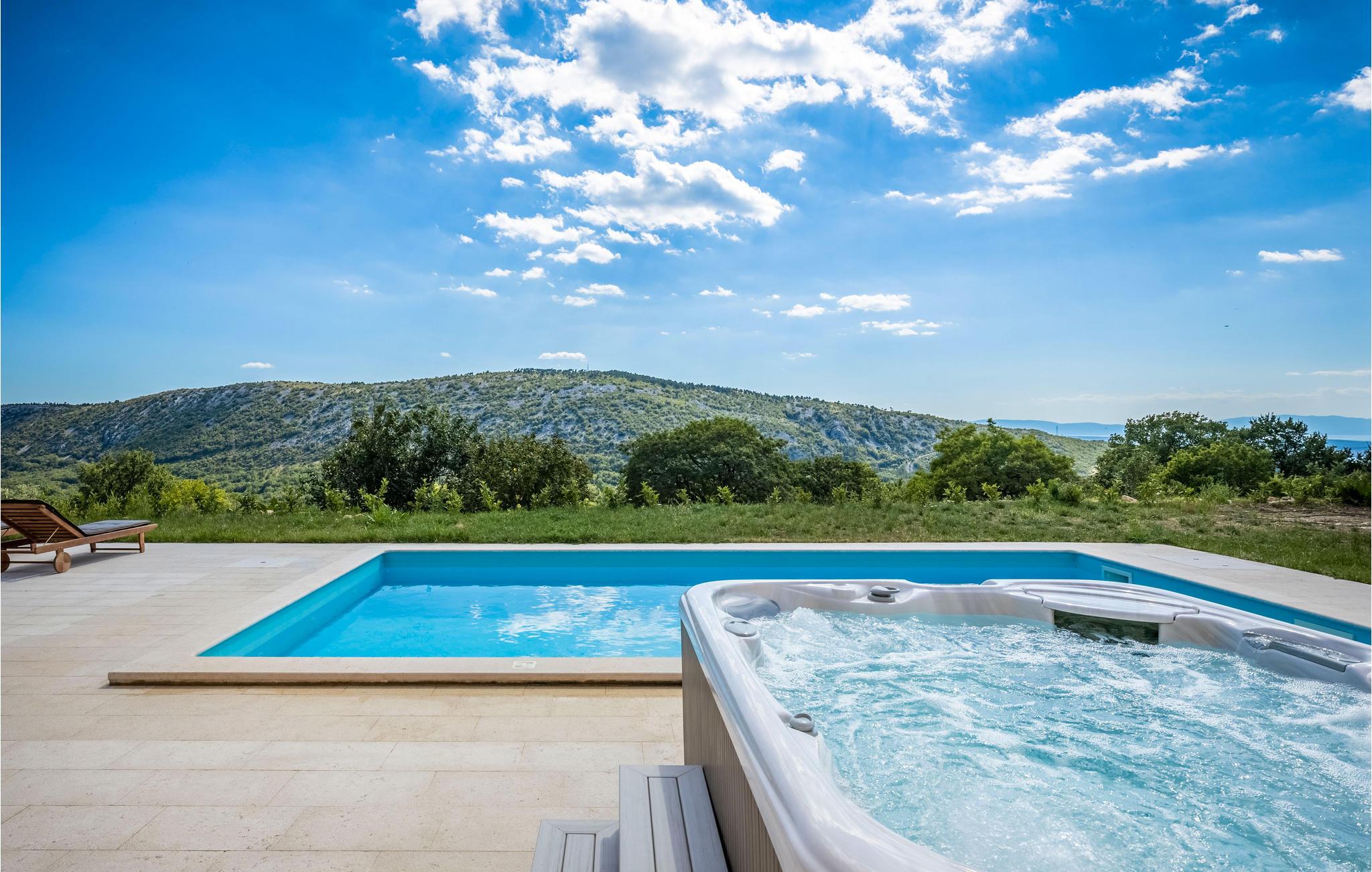 Dette afsides beliggende feriehus med swimmingpool ligger i den lille by Bribir, ikke langt fra Novi Vinodolski. Hvis I søger fred og ro, er dette hus helt perfekt. Huset er funktionelt indrettet og har et soveværelse med to enkeltsenge og et galleri med dobbeltseng. Et af soveværelserne er et gennemgangsværelse. Naturelskere vil nyde de talrige vandre- og cykelruter i området. I Novi Vinodolski venter dejlige strande for hele familien samt mange events om sommeren. Har I lyst til ren afslapning, kan I bruge whirlpoolen, svømme i poolen eller sidde på den store terrasse.