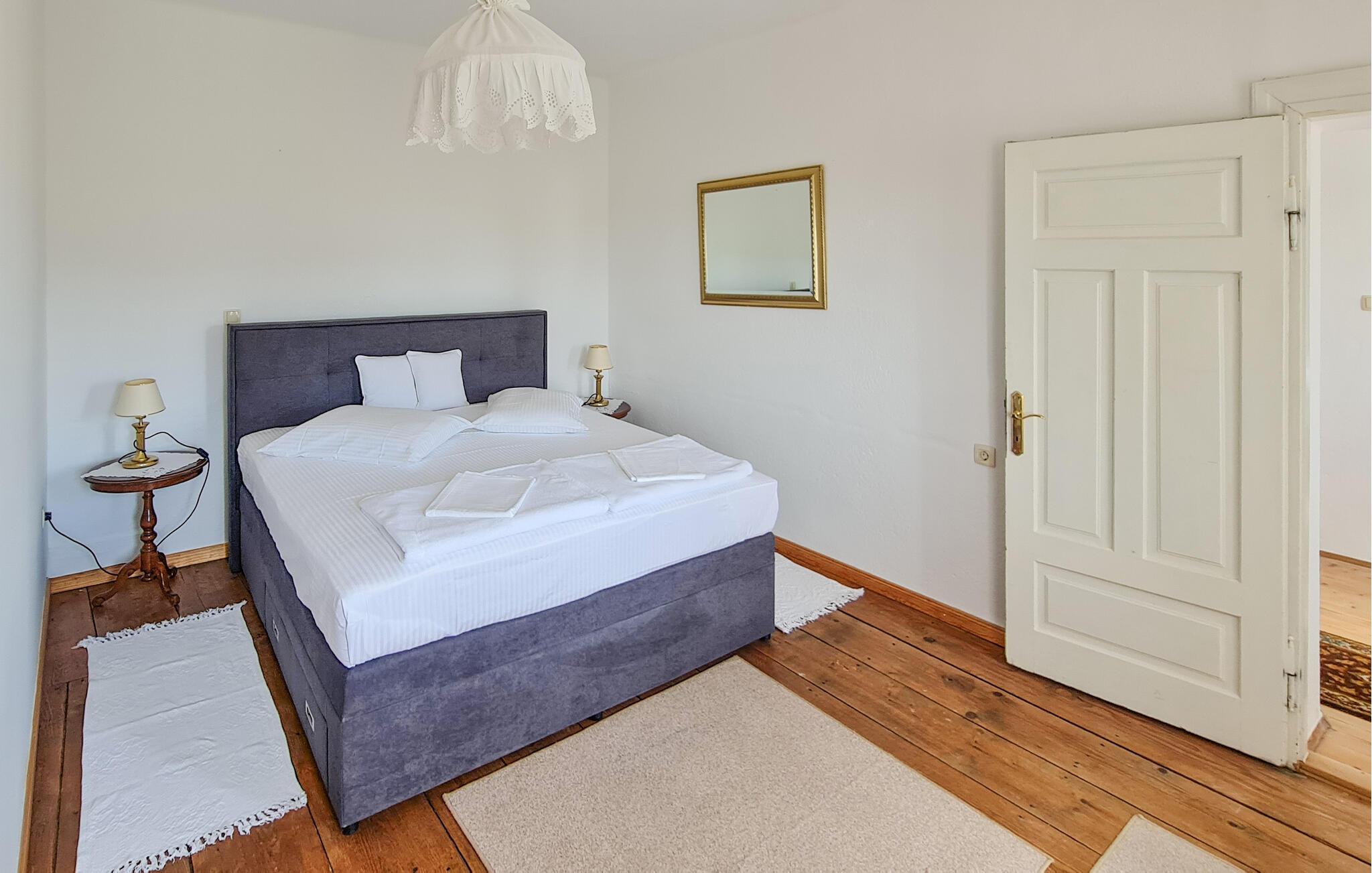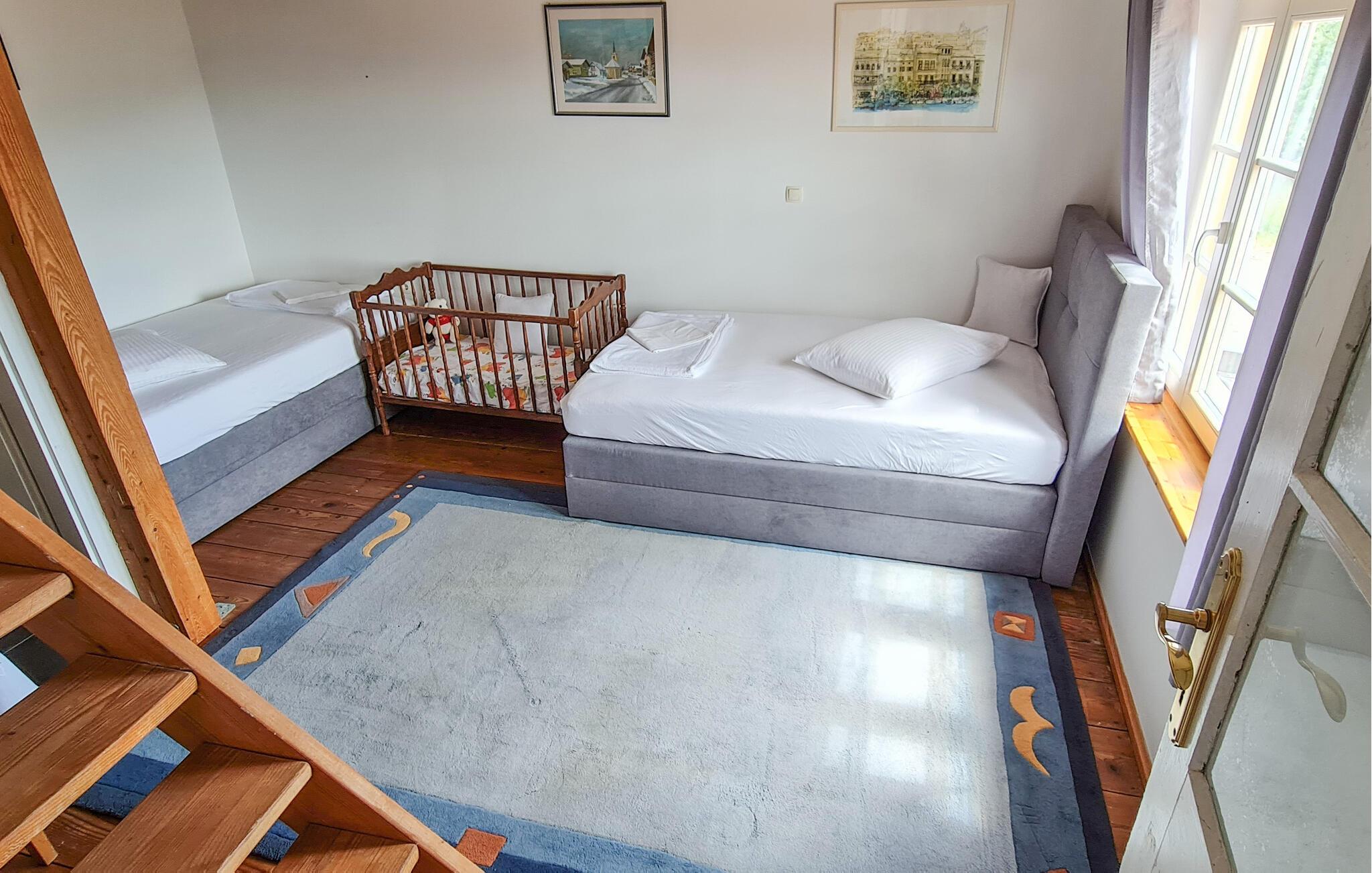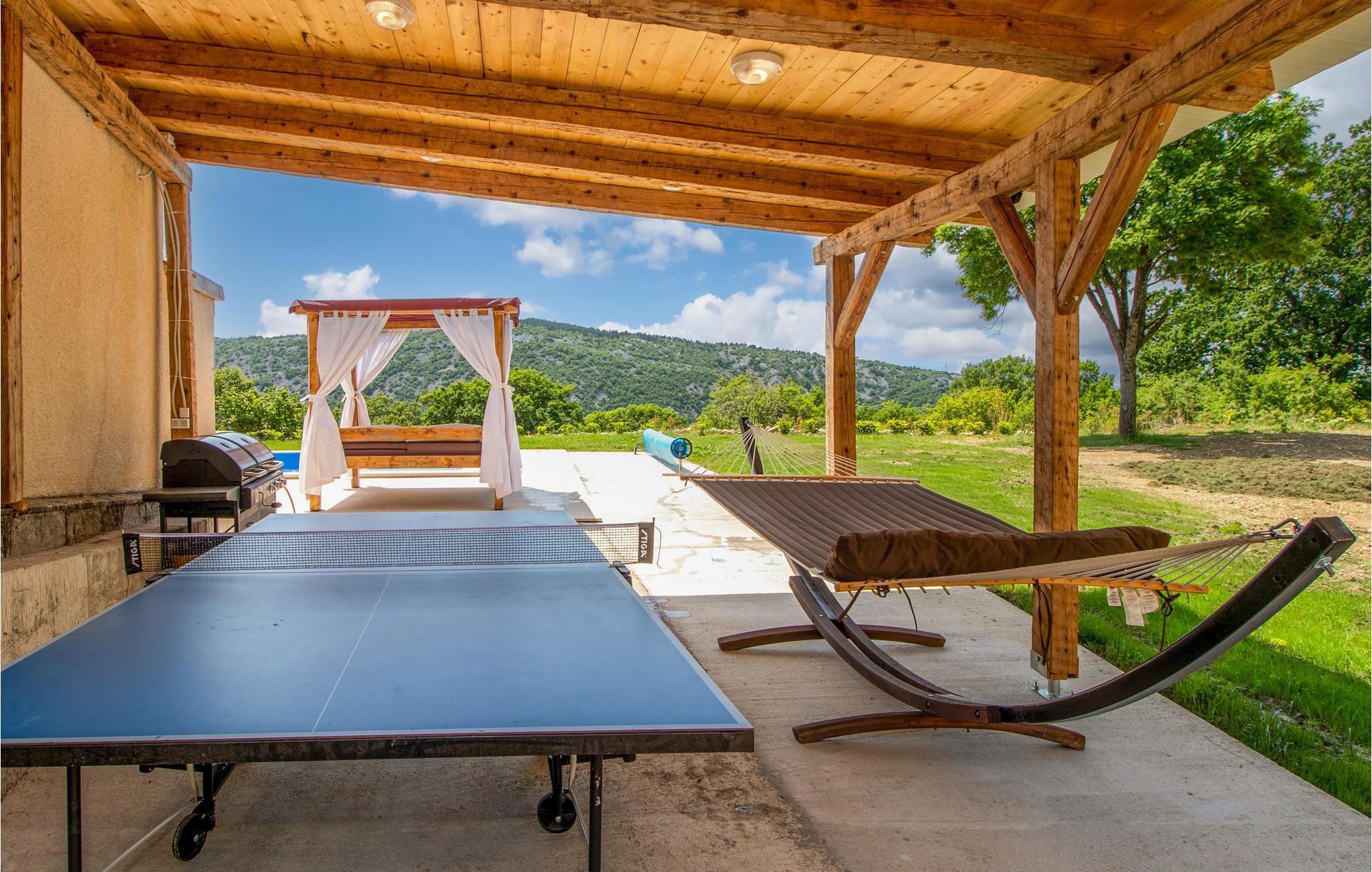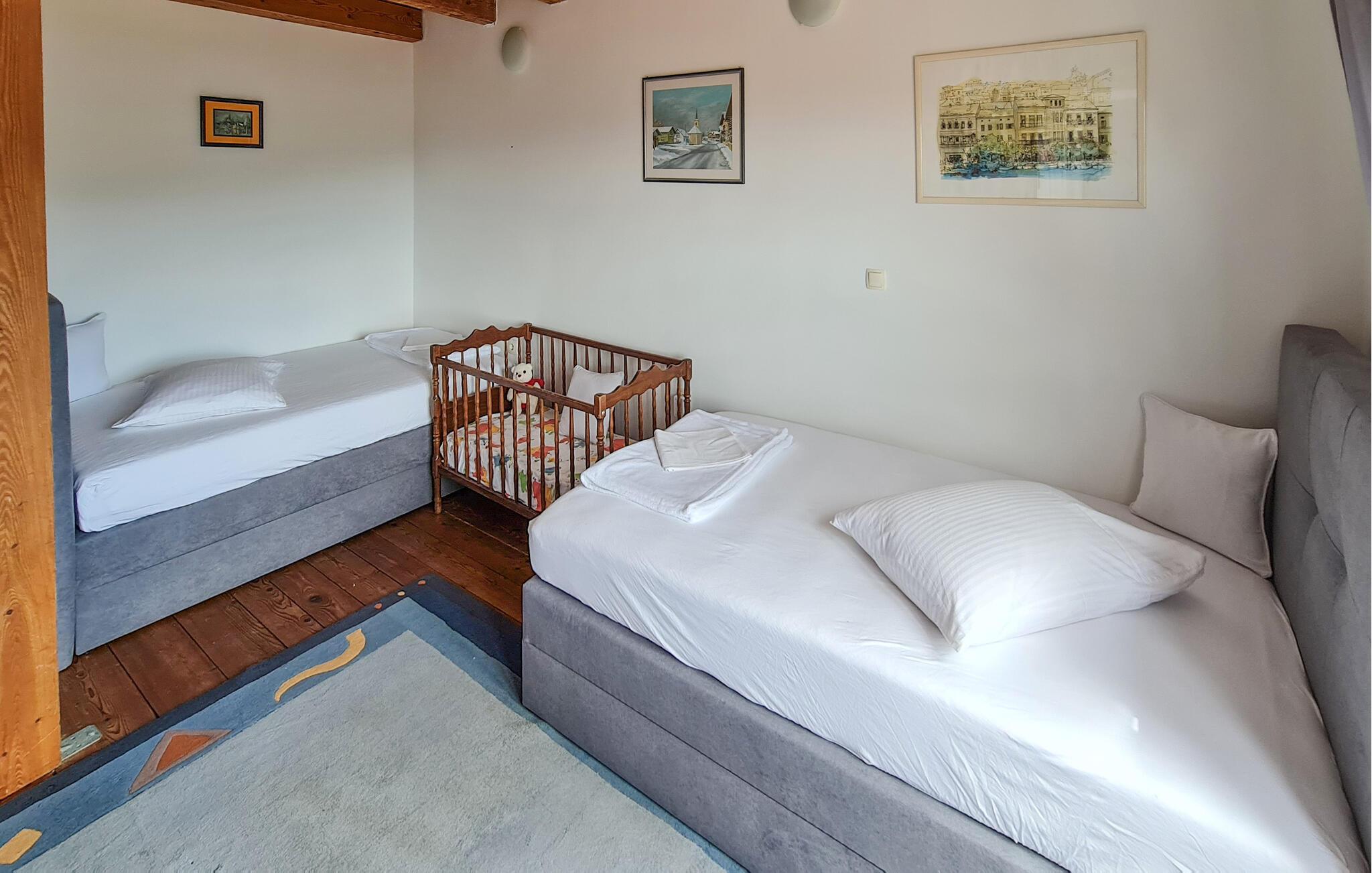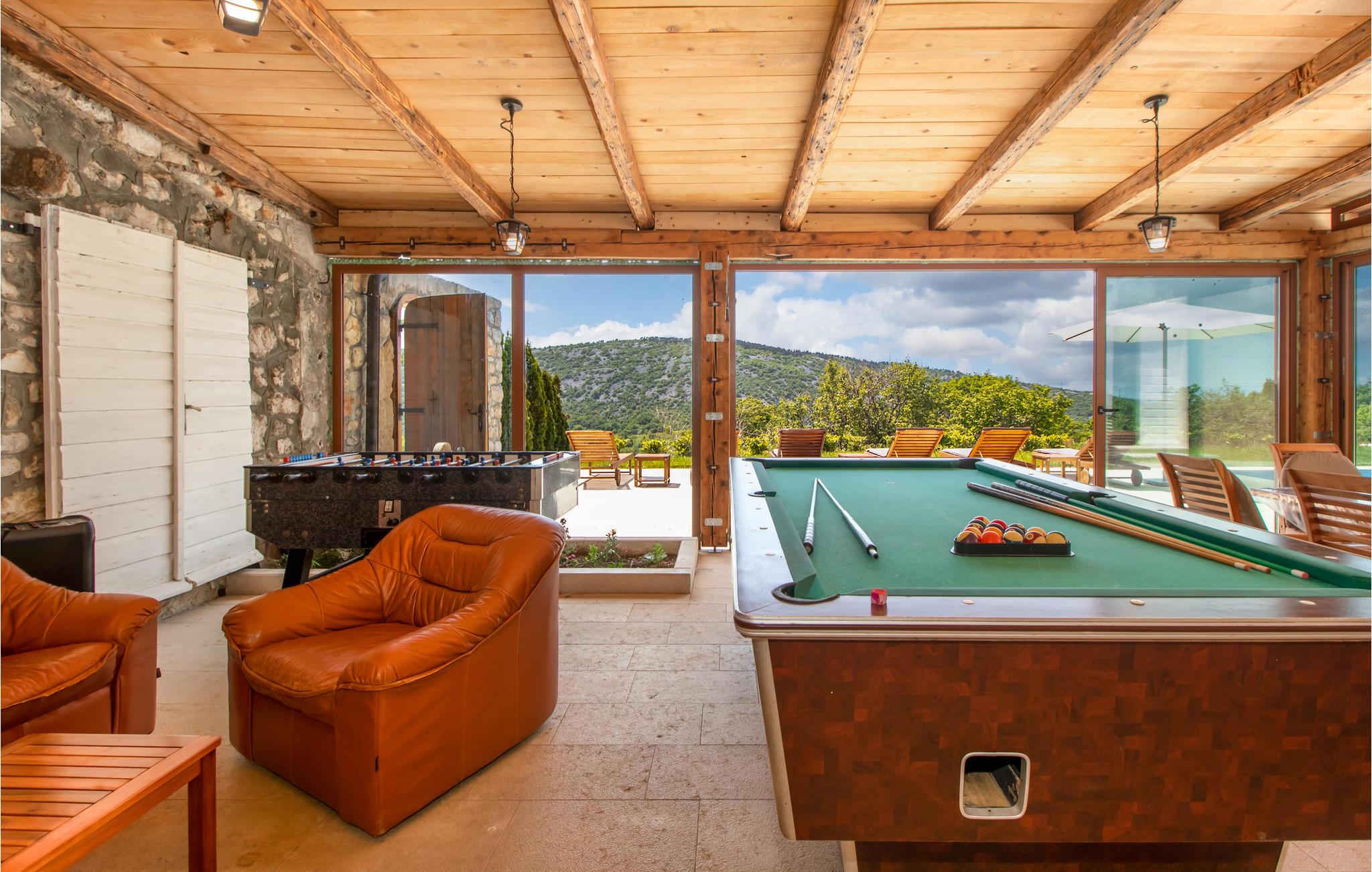 Dette afsides beliggende feriehus med swimmingpool ligger i den lille by Bribir, ikke langt fra Novi Vinodolski. Hvis I søger fred og ro, er dette hus helt perfekt. Huset er funktionelt indrettet og har et soveværelse med to enkeltsenge og et galleri med dobbeltseng. Et af soveværelserne er et gennemgangsværelse. Naturelskere vil nyde de talrige vandre- og cykelruter i området. I Novi Vinodolski venter dejlige strande for hele familien samt mange events om sommeren. Har I lyst til ren afslapning, kan I bruge whirlpoolen, svømme i poolen eller sidde på den store terrasse.