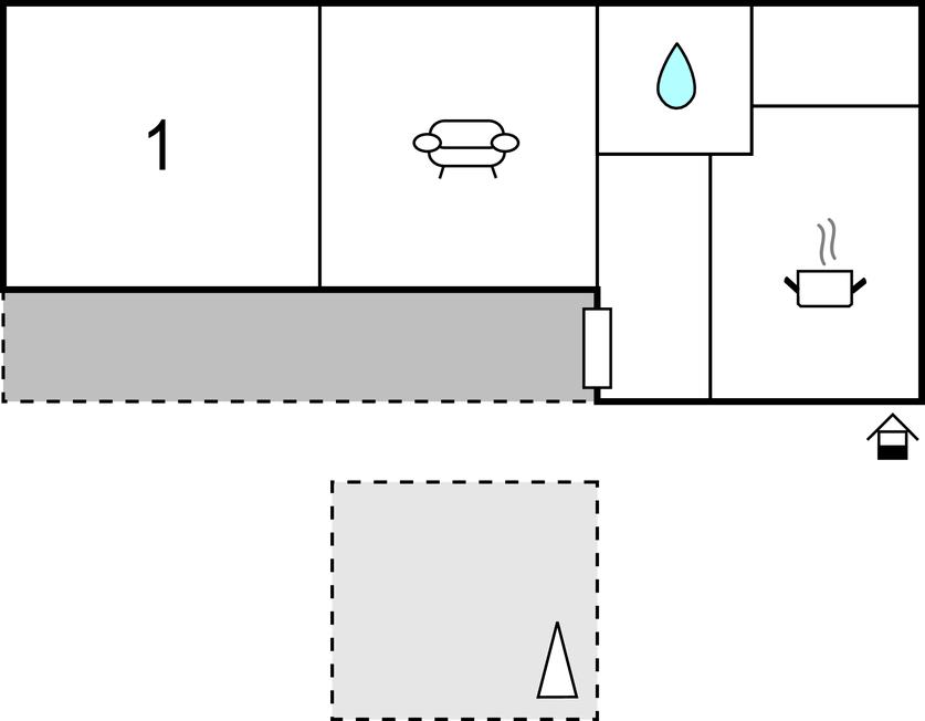 Soveværelse 18m2 (nr. 1) - 2 Sovepladser. (Dobbeltseng(e)). 1 Soveplads. (Sofa, madras eller lignende).