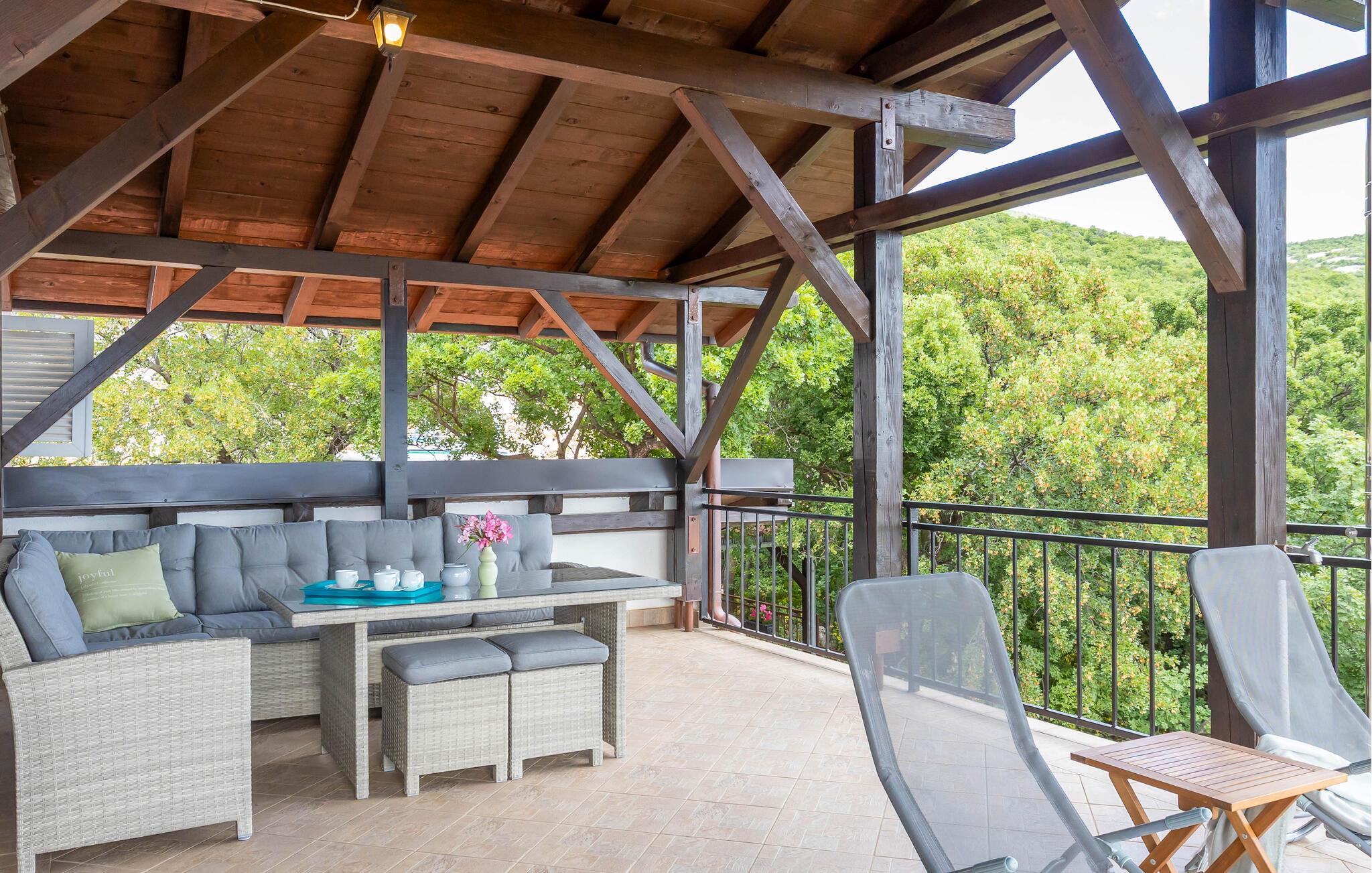 Begynd dagene på terrassen med en betagende udsigt over det glitrende hav til de fjerne bjerge. Bagefter inviterer haven jer til at slappe af, måske fordybe jer i jeres ferielæsning eller snakke med familien. Om aftenen kan I tænde grillen og afslutte dagen med et glas vin.