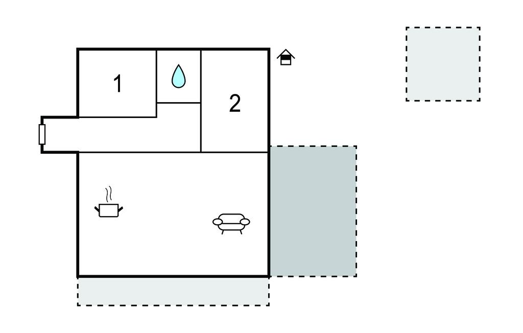 Opholdsstue/køkken 30m2 - 1 Soveplads. (Sofa, madras eller lignende).