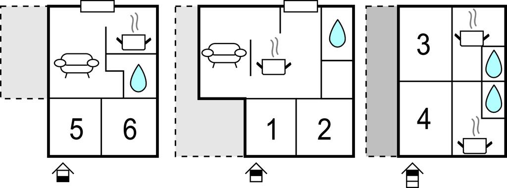 Badeværelse (nr. 3) - WC. Varmt og koldt vand. Bruser