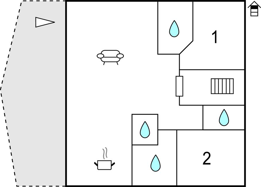 Opholdsstue/køkken 40m2 - 2 Sovepladser. (Sofa, madras eller lignende).
