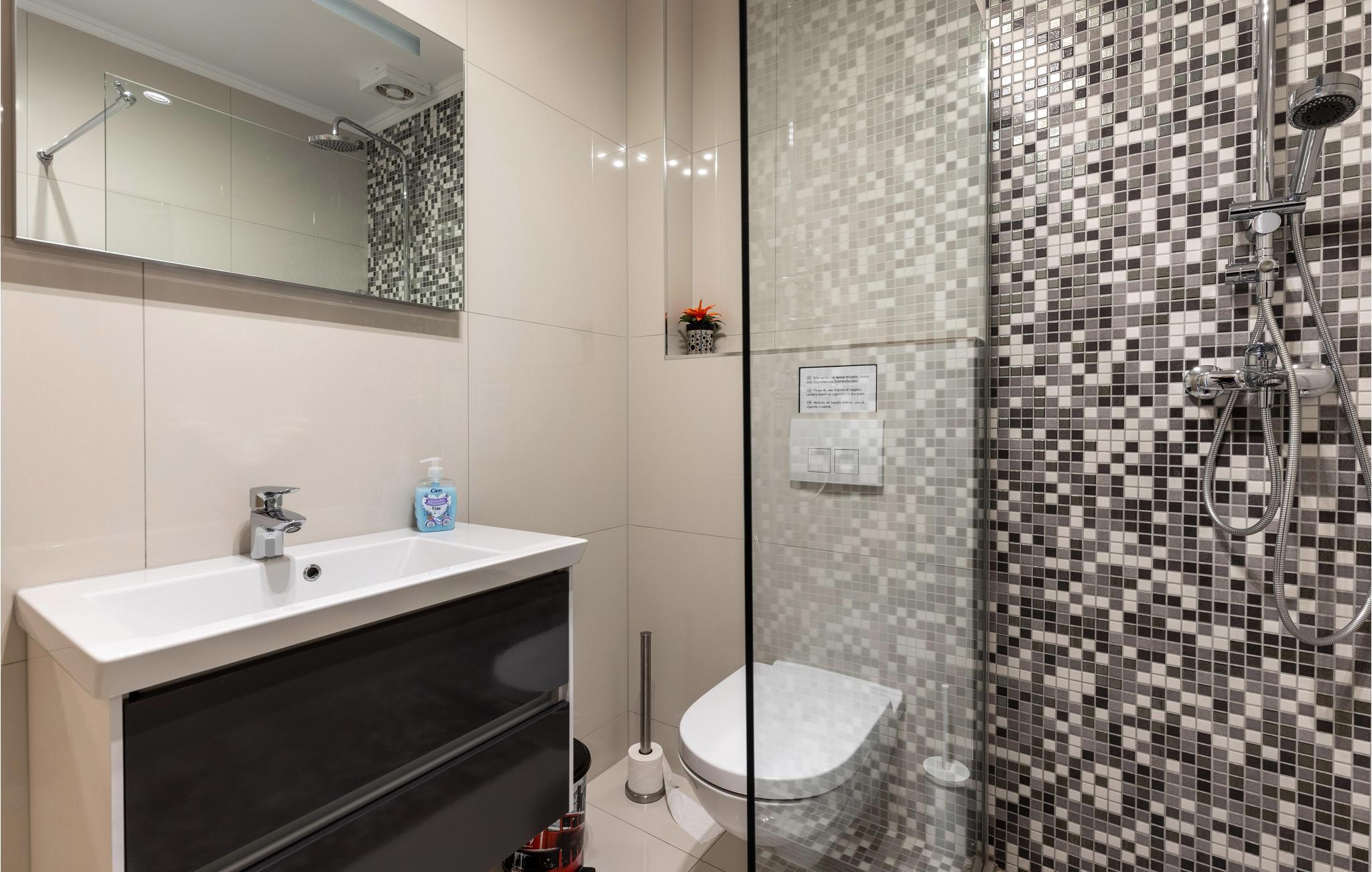 Badeværelse 6m2 (nr. 2) - WC. Varmt og koldt vand. Bruser
