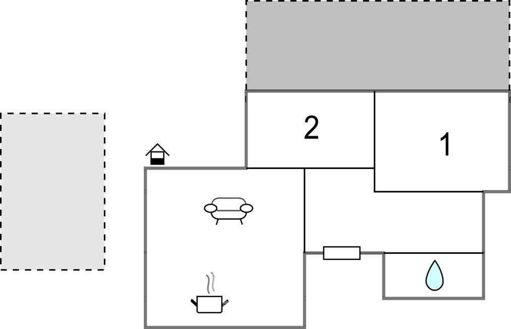 Opholdsstue/køkken 30m2 - 1 Soveplads. (Sofa, madras eller lignende).