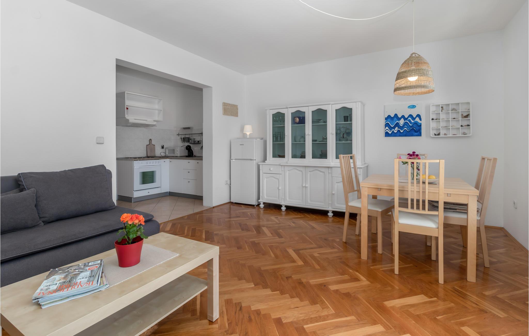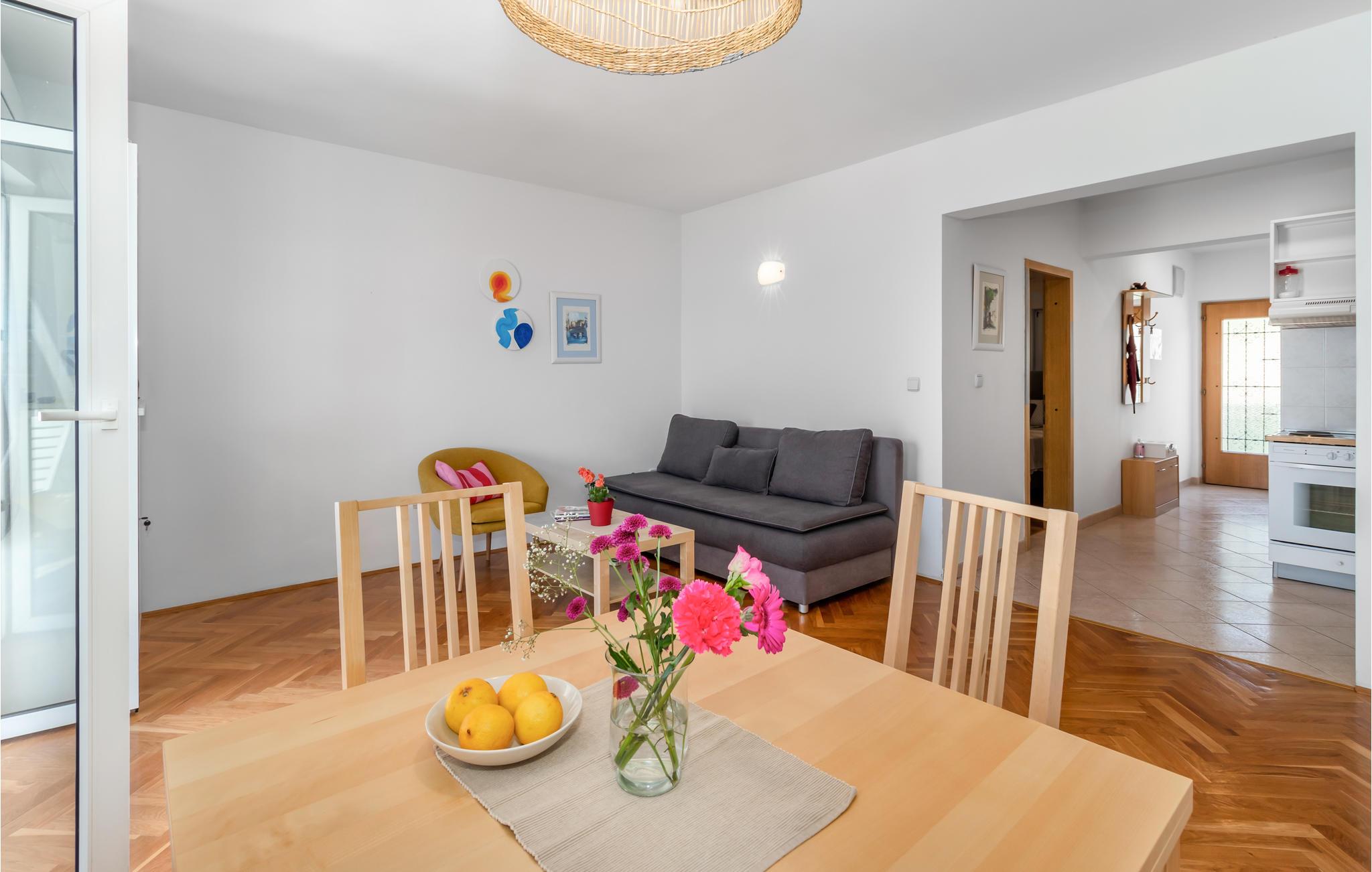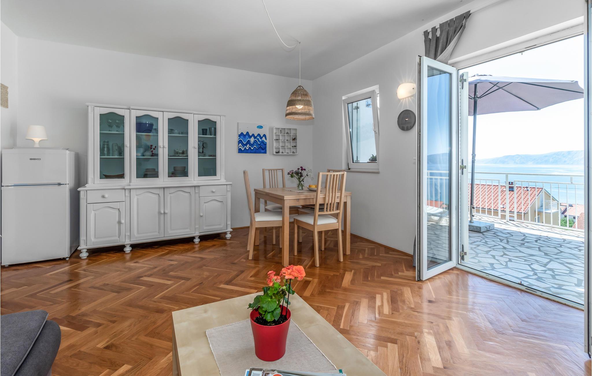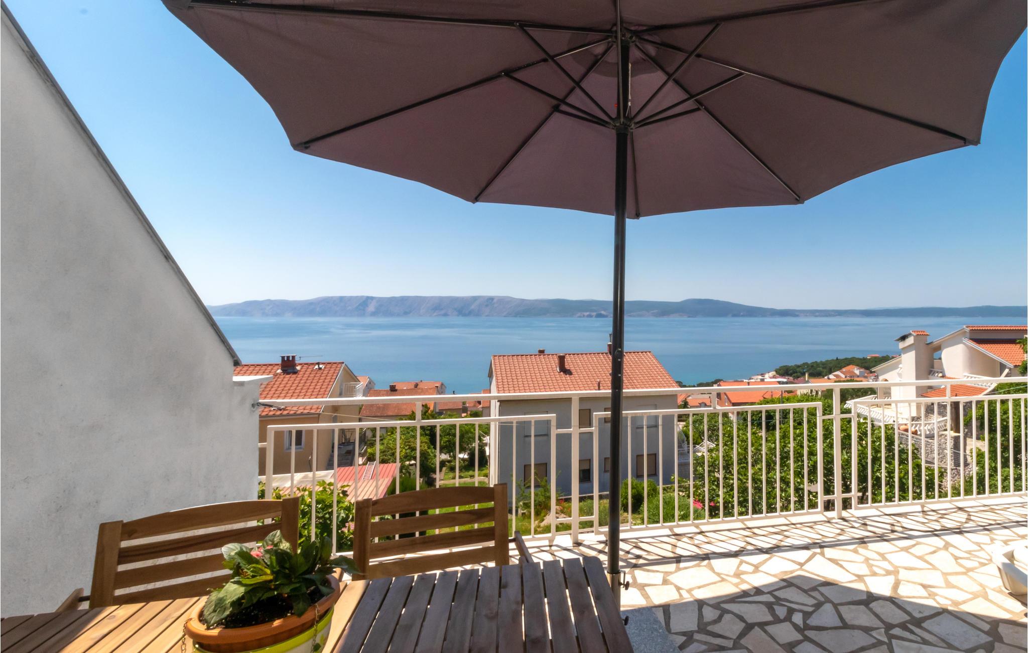 Slap af på terrassen og nyd den skønne udsigt over havet i denne smagfuldt indrettede ferielejlighed på første sal i Novi Vinodolski. Lejligheden er udstyret med alt til en komfortabel ferie, her kan I virkelig nyde jeres velfortjente ferie. Med bil kommer I hurtigt til de skønne strande. I byens centrum er der mange underholdningstilbud, ligesom I også skal opleve det nærliggende Crikvenica og øen Krk. På de mange lokale restauranter kan I spise og drikke godt – maden er både helt traditionel og international.