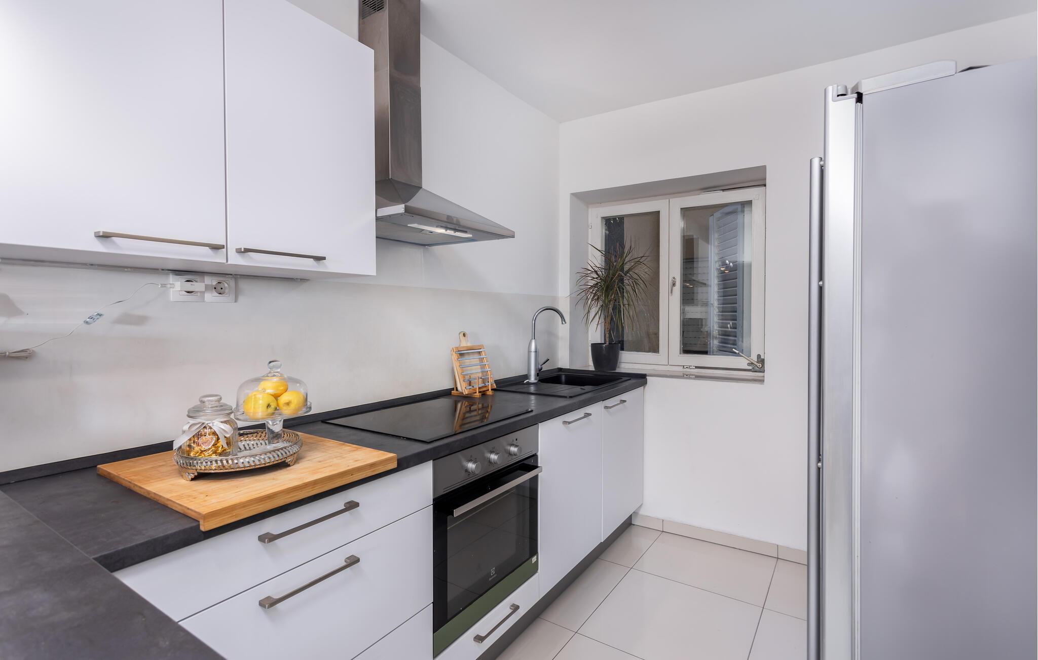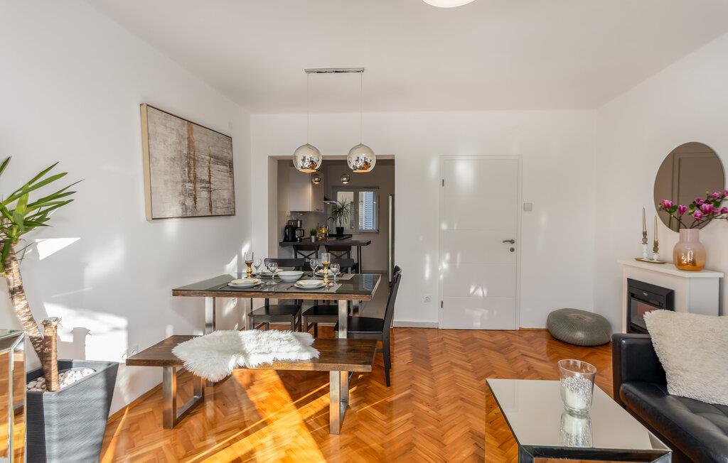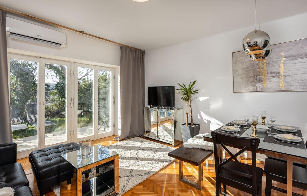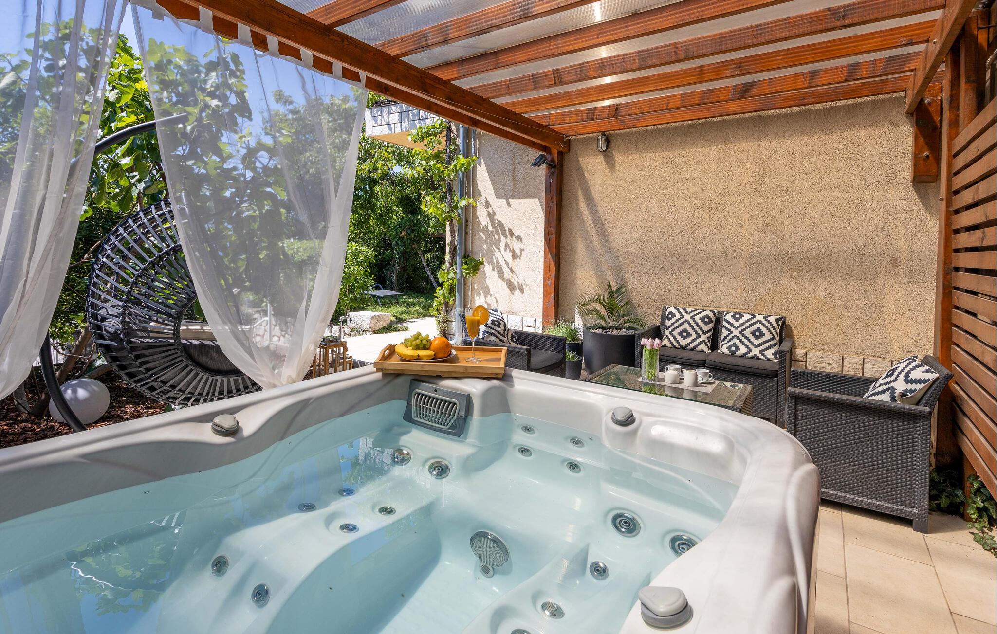 I nærhedene af Novi Vinodolski ligger denne fint indrettede halvdel af et deobbelthus, som breder sig over to etager. I stueetagen ligger køkkenet med opholdsstue og et ekstra toilet, mens der på første sal ligger soveværelser og badeværelse. Terrasserne ligger nedenfor. Lige foran stuen en mindre og ved siden af denne, den store hvor whirlpoolen lokker med mange timers afslapning. På få minutter er I fremme ved strande og caféer, restauranter og andre gode tilbud for den nysgerrige feriegæst. Udnyt den gode beliggenhed og tag på besøg i den populære by Crikvenica eller den spændende ø Krk.