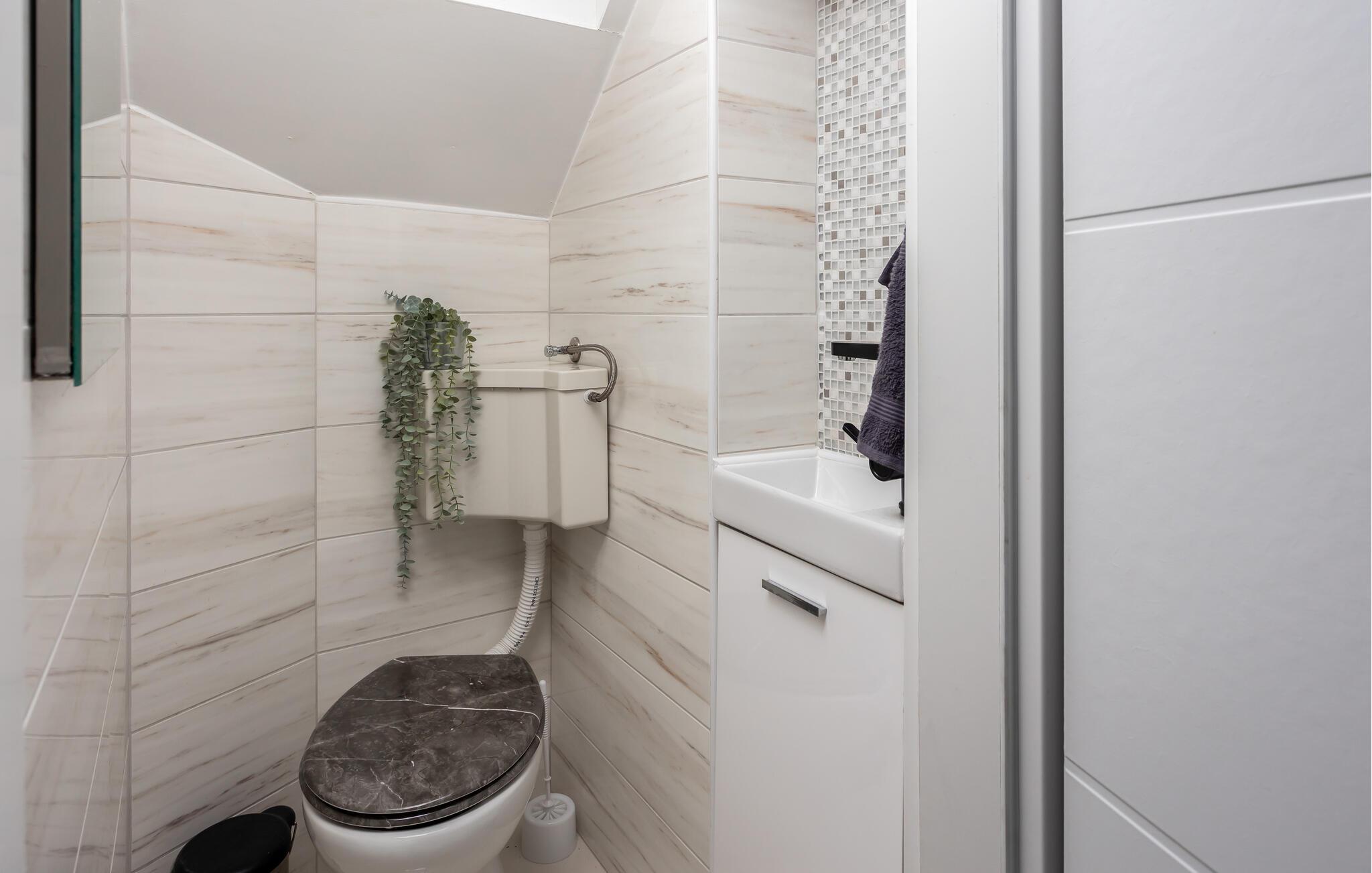 Badeværelse (nr. 1) - WC. Varmt og koldt vand. Bruser