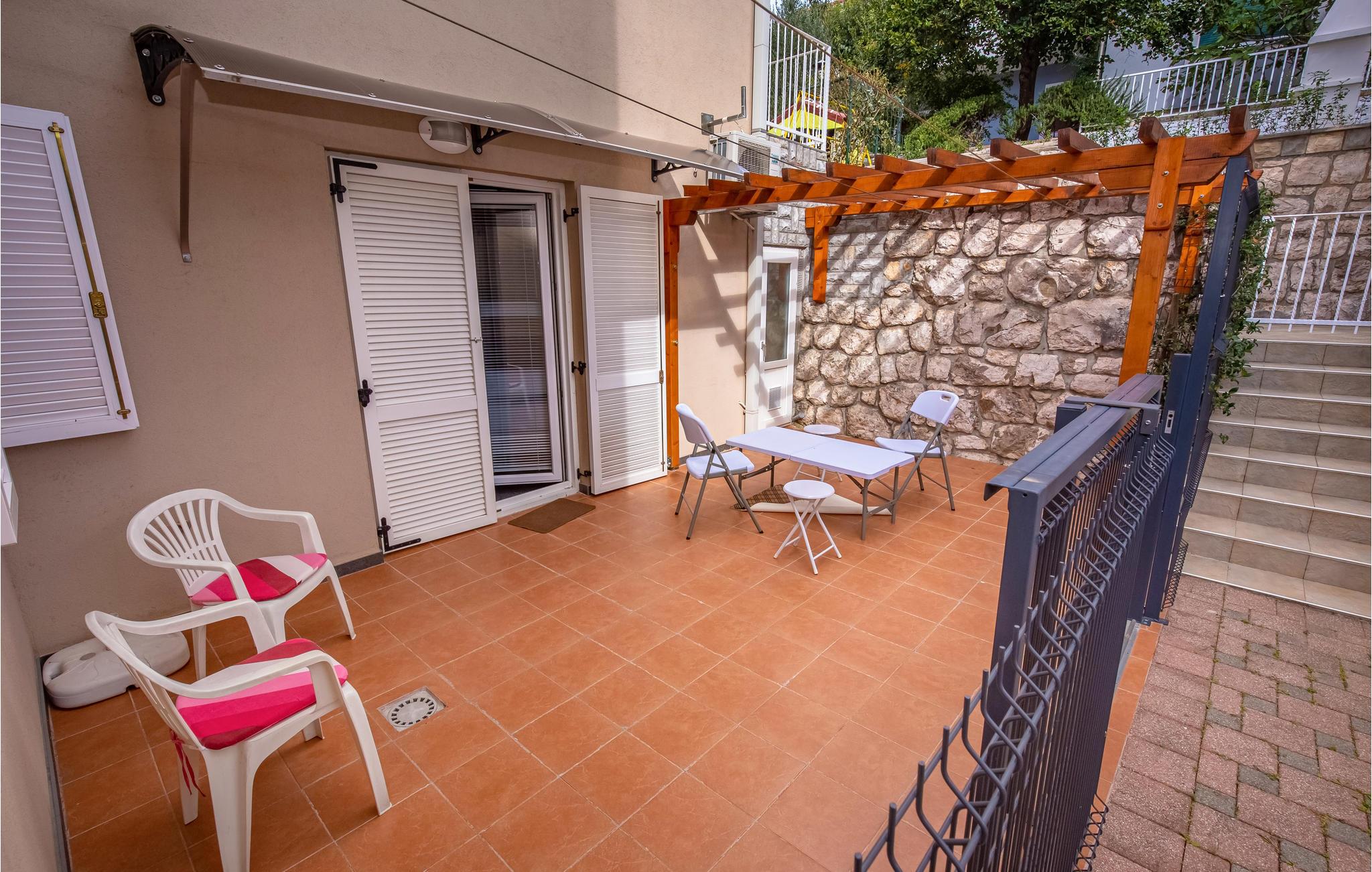 Denne rummelige ferielejlighed ligger i den poulære by Novi Vinodolski, ikke langt fra de skønne strande. De komfortabelt indrettede rum er to soveværelser, en stue der er åben mod køkkenet og har spiseafdeling, samt to badeværelser. Desuden har I adgang til en skøn have, med tre private terrasser og adgang til en fælles terrasse. I kan hurtigt gå til de nærmeste strande. I løbet af sommeren afholdes der mange former for underholdning i den indre by. Desuden kan I glæde jer til en perlerække af fremragende restauranter og smage de mange lokale specialiteter.