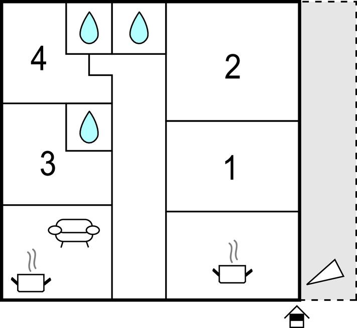 Opholdsstue/køkken 18m2 - 1 Soveplads. (Sofa, madras eller lignende).