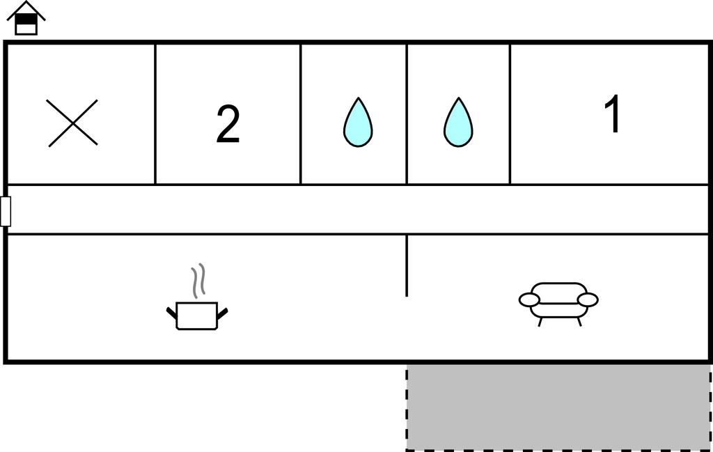 Opholdsstue/køkken - 1 Soveplads. (Sofa, madras eller lignende).