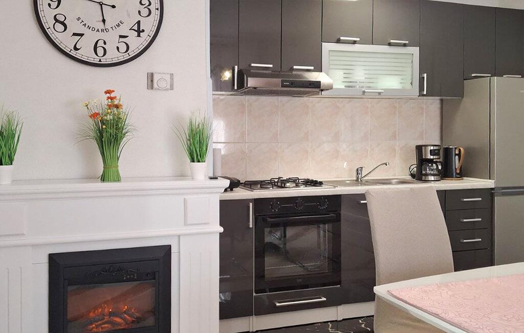 Denne lejlighed er perfekt til en afslappende pause fra hverdagen. En komfortabel sofa lægger op til at slappe af med en duftende kaffe, mens I snakker eller lytter til god musik. Tilbered lækre måltider i køkkenet og server dem med et glas vin.