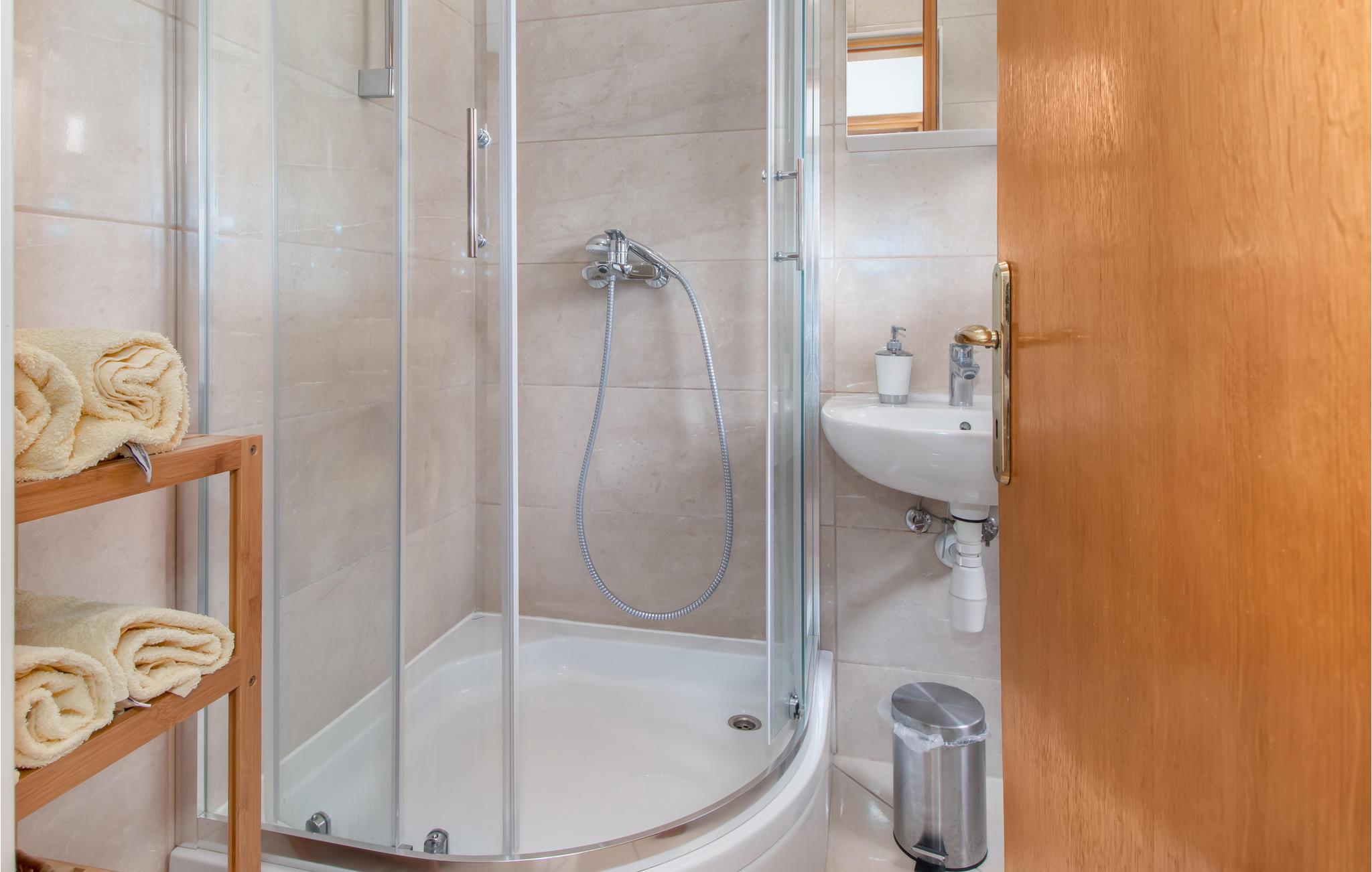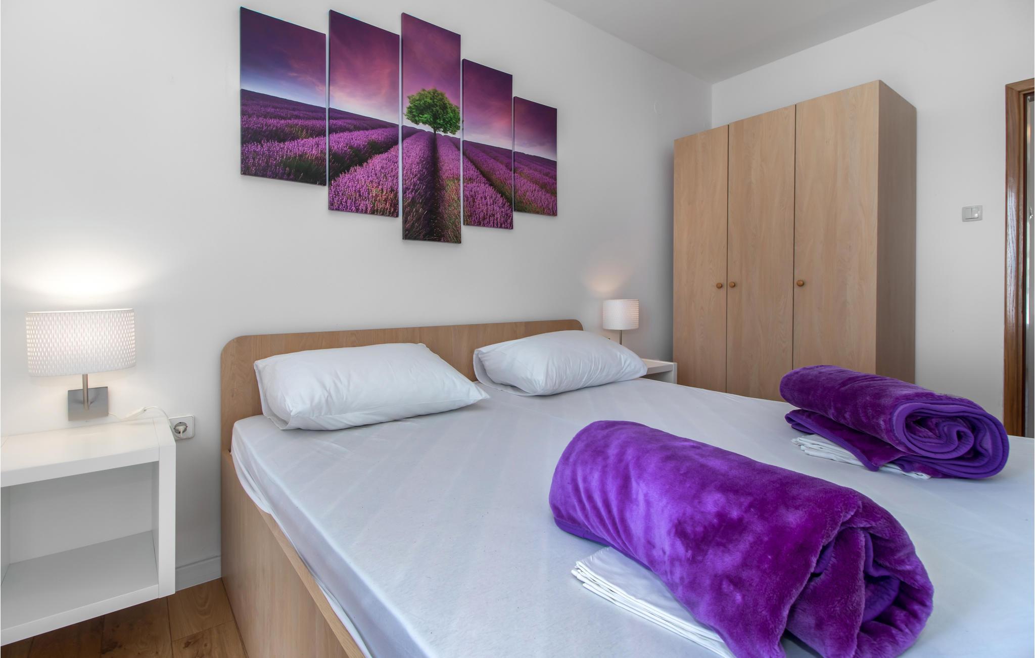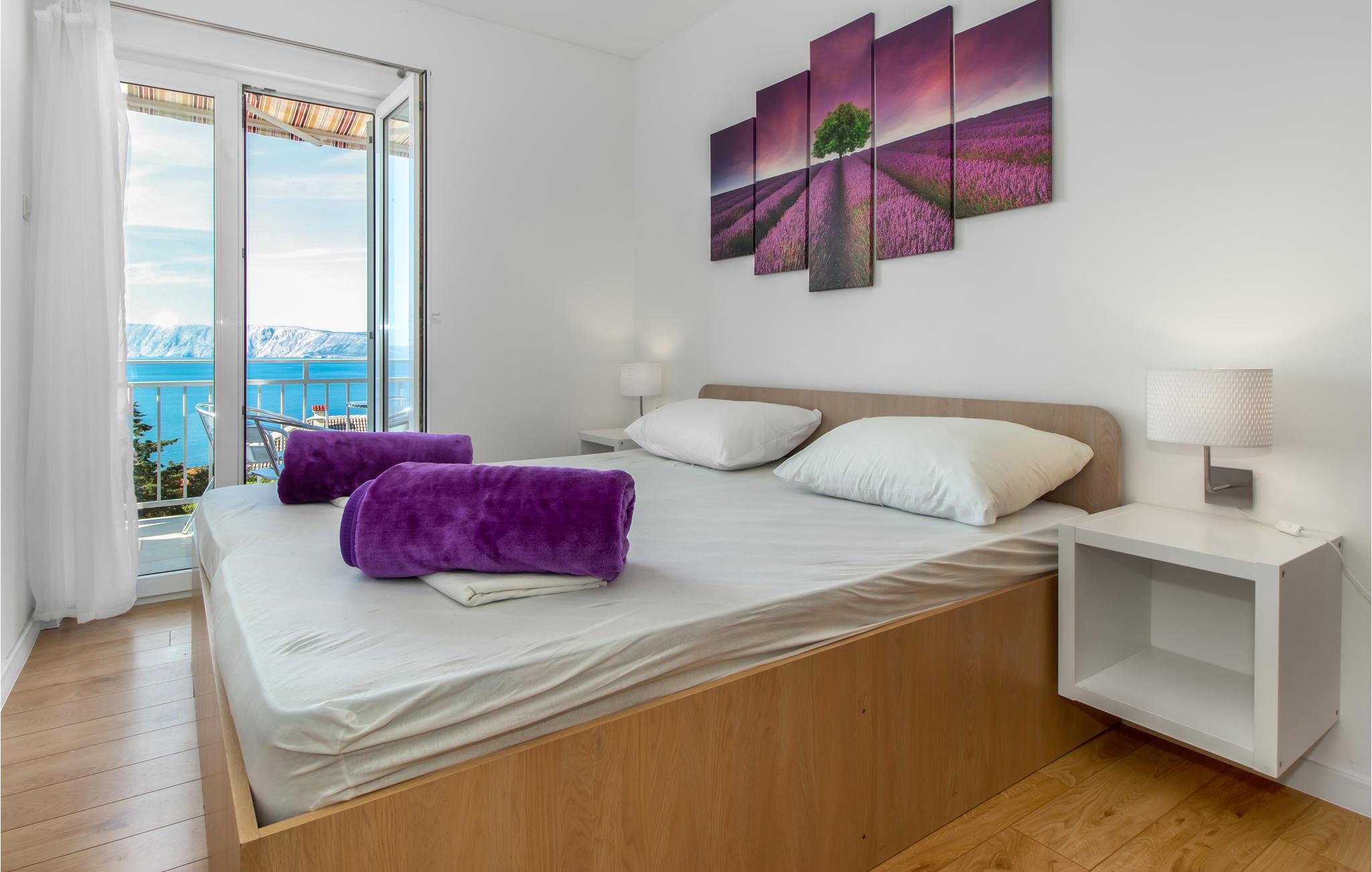 Velkommen til denne velindrettede lejlighed på 2. sal i et familievenligt dobbelthus. Du kan parkere din bil på ejendommen. Lejligheden byder på en vidunderlig udsigt over bugten og helt til øen Krk. Nyd din morgenkaffe til denne betagende udsigt, eller et godt glas vin om aftenen. Lejligheden er komfortabelt og praktisk indrettet, og er ideel til en lille familie med børn.