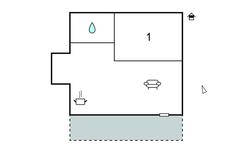Opholdsstue/køkken 25m2 - 2 Sovepladser. (Sofa, madras eller lignende).