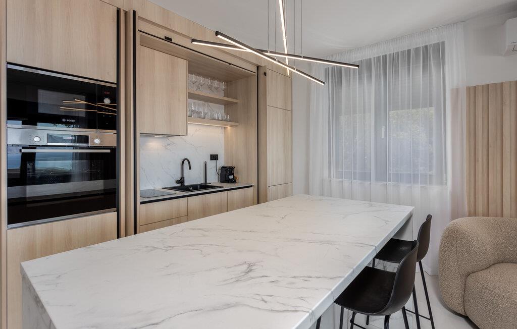 Tag familien under armen og rejs til Novi Vinodolski, hvor der få skridt fra stranden og promenaden venter jer denne luksusperle af en feriebolig. Indvendigt emmer det af kvalitet, komfort og moderne bekvemmeligheder over hele linjen i et stilsikkert interiør, der får dejlige lysindfald gennem de mange vinduespartier og fremtræder lyst, luftigt og lækkert.