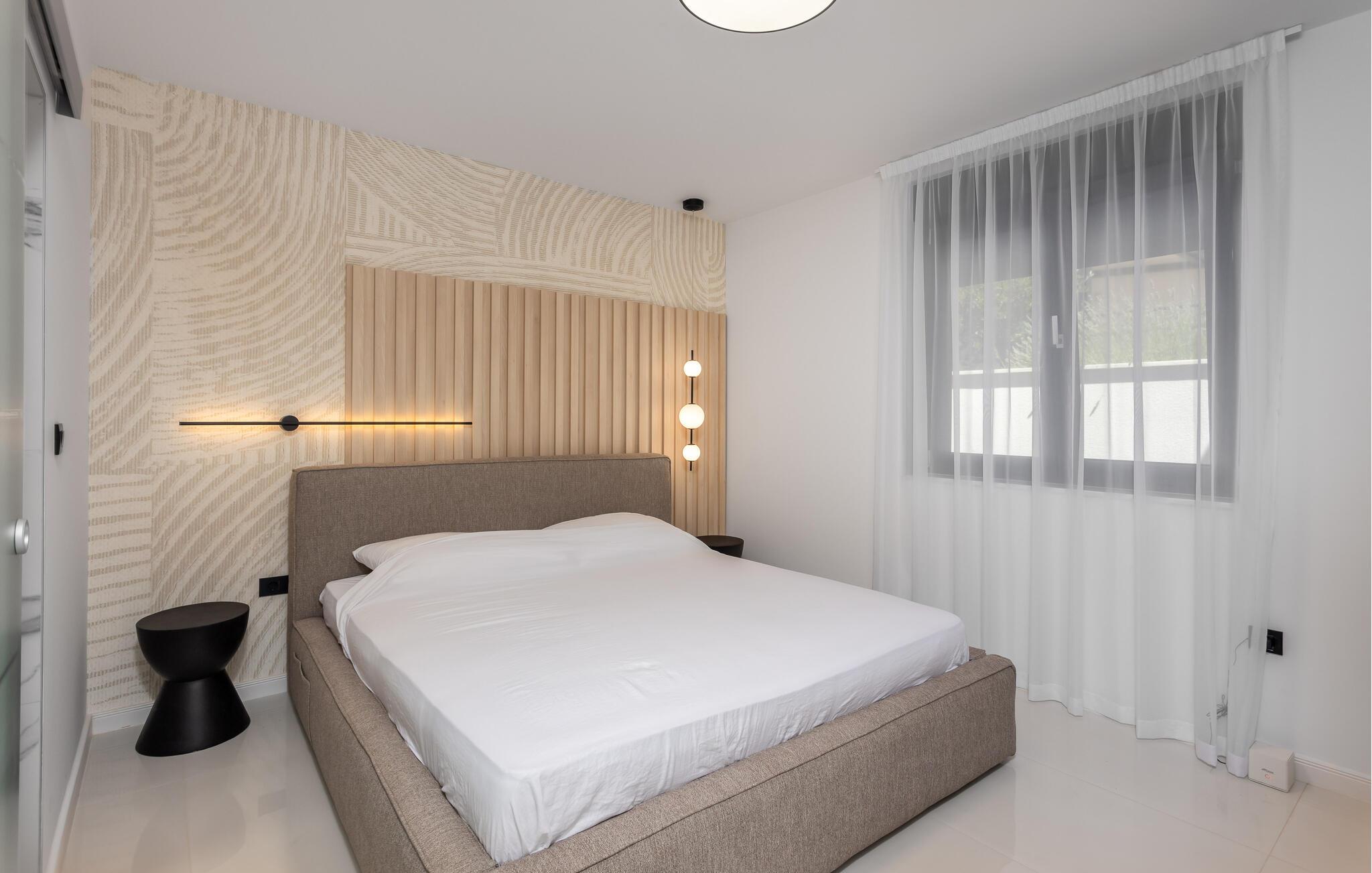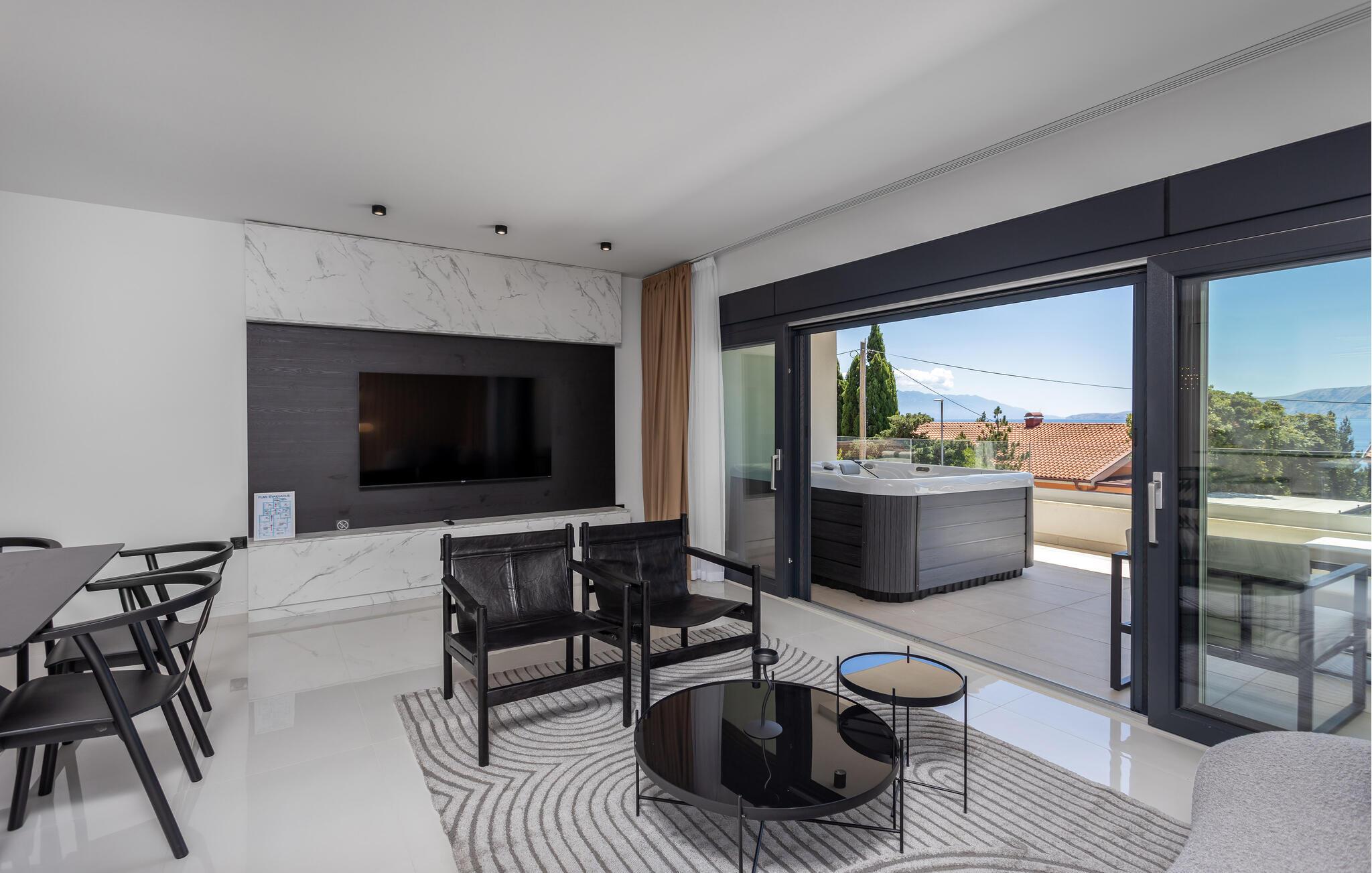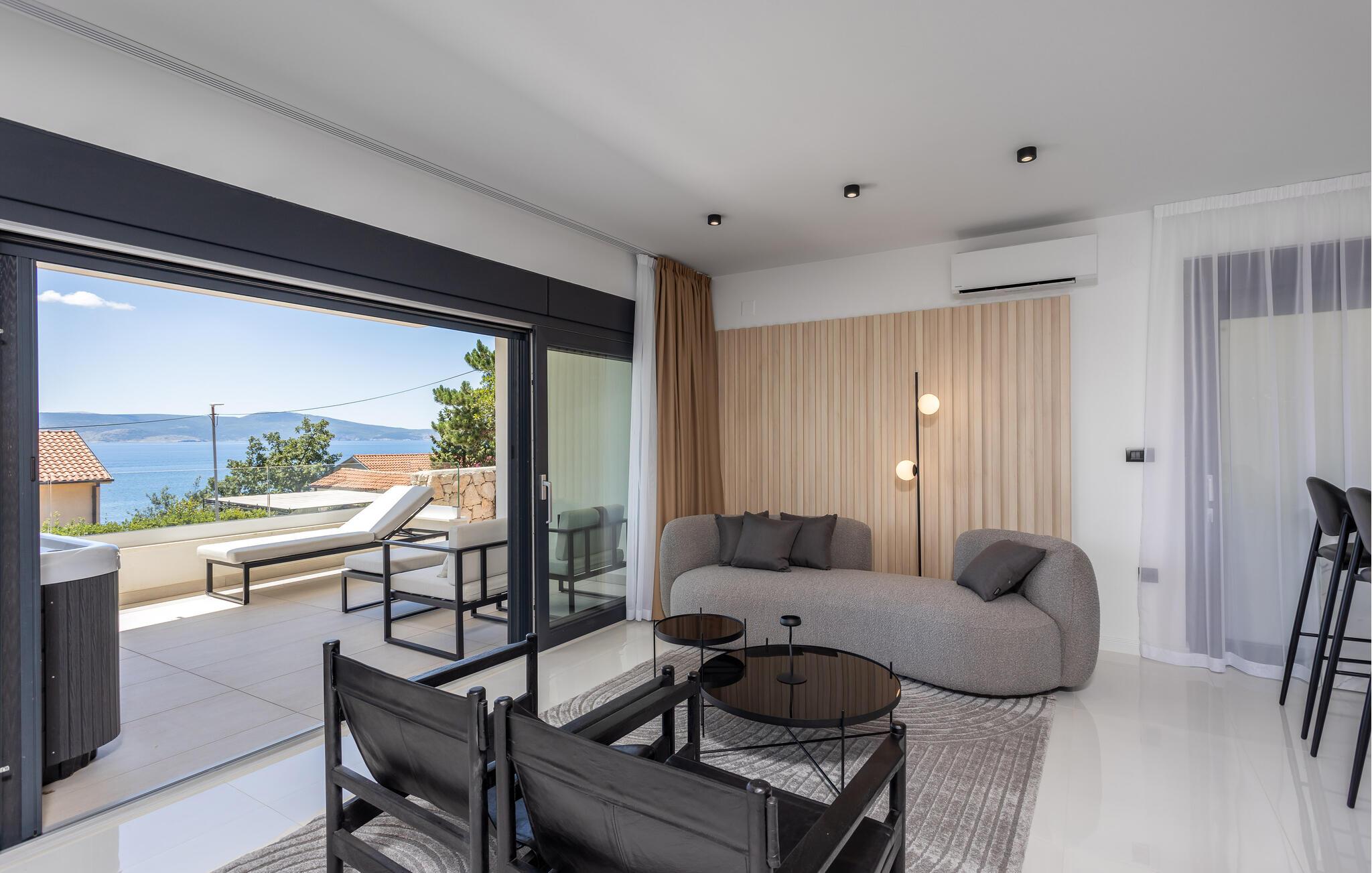 Tag familien under armen og rejs til Novi Vinodolski, hvor der få skridt fra stranden og promenaden venter jer denne luksusperle af en feriebolig. Indvendigt emmer det af kvalitet, komfort og moderne bekvemmeligheder over hele linjen i et stilsikkert interiør, der får dejlige lysindfald gennem de mange vinduespartier og fremtræder lyst, luftigt og lækkert.