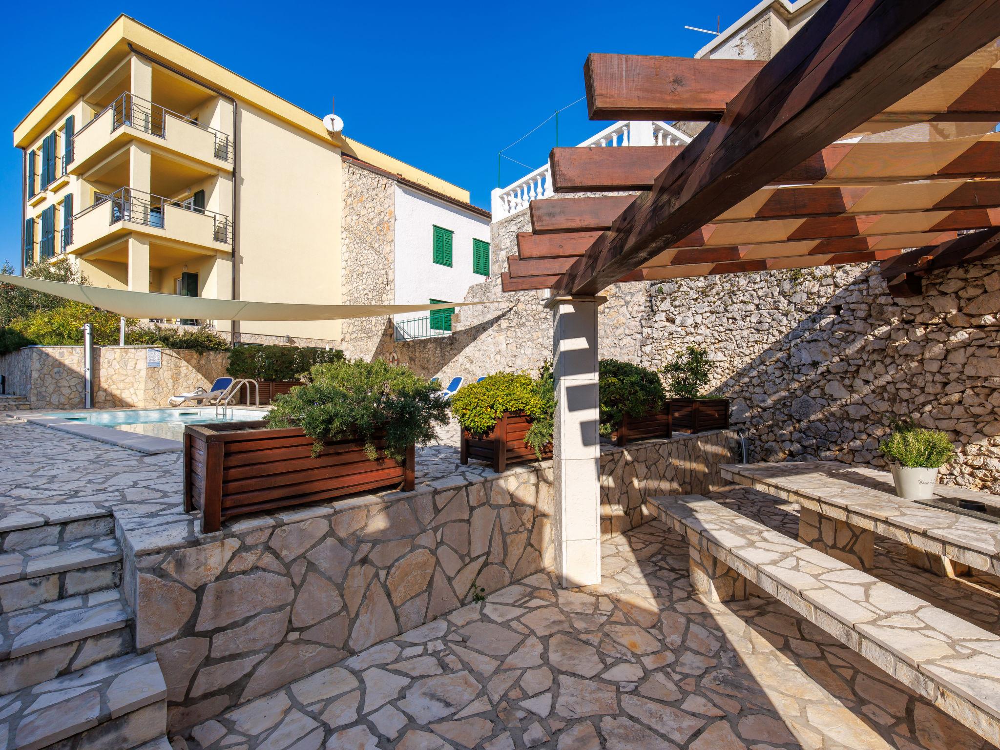 Apartment house "Leko". 130 m from the centre of Novi Vinodolski, in a sunny position, excellent location: right in the centre but still quiet, 450 m from the sea, 450 m from the beach. For shared use: swimming pool angular (8 x 3 m, depth 150 cm, seasonal availability: 01.May. - 15.Oct.). Outdoor shower, garden furniture, barbecue. In the house: internet access, table tennis, table football, washing machine (for shared use, extra). Airport transfer (extra). Narrow motor access to the house. Parking at the house on the premises. Shop, supermarket 130 m, bus stop 700 m, sandy beach, shingle beach 650 m, concrete beach 450 m. Please note: on request: airport transfer to the holiday accommodation. Private mooring (extra) on request. Parking at 200 m (fenced).