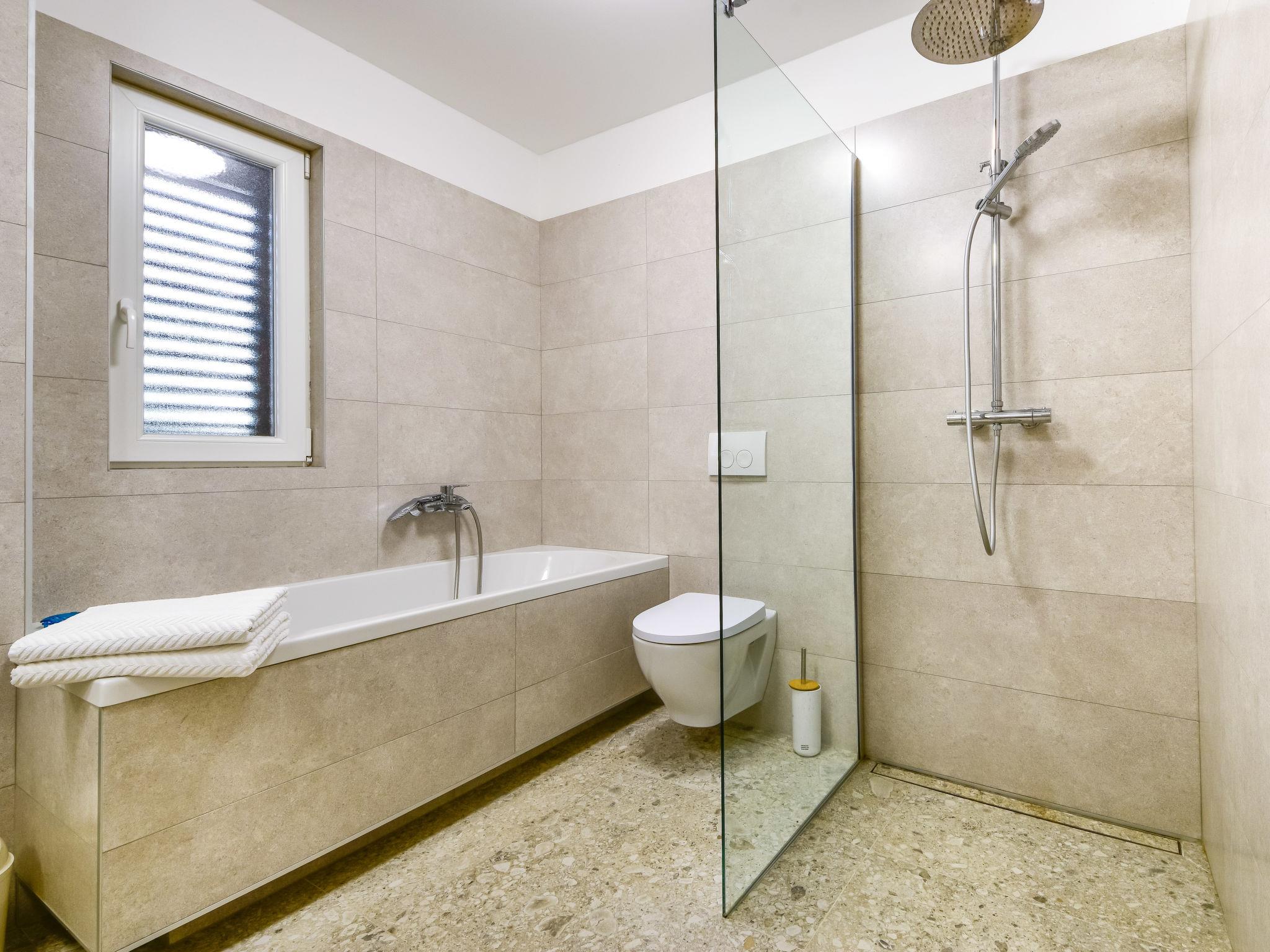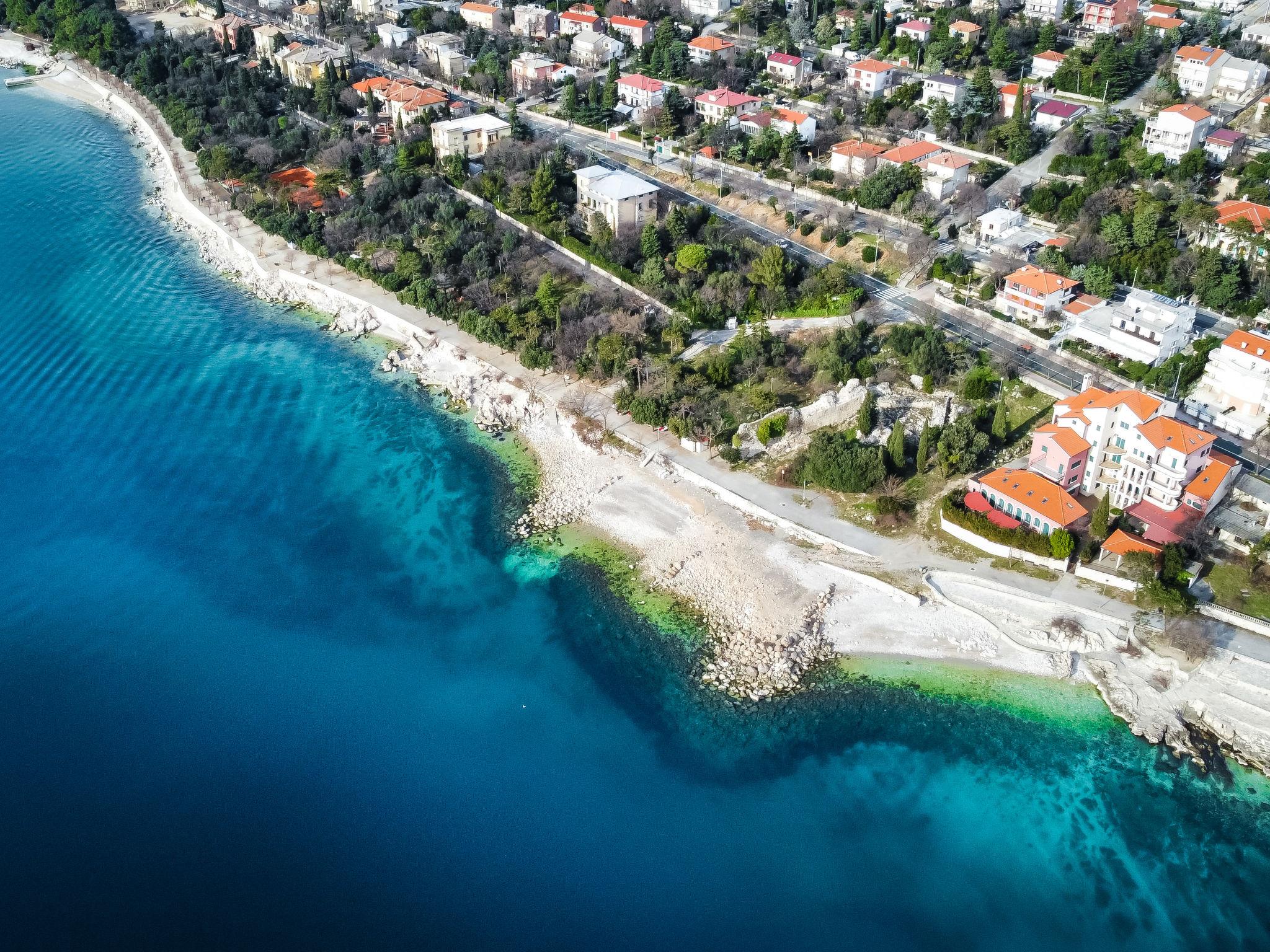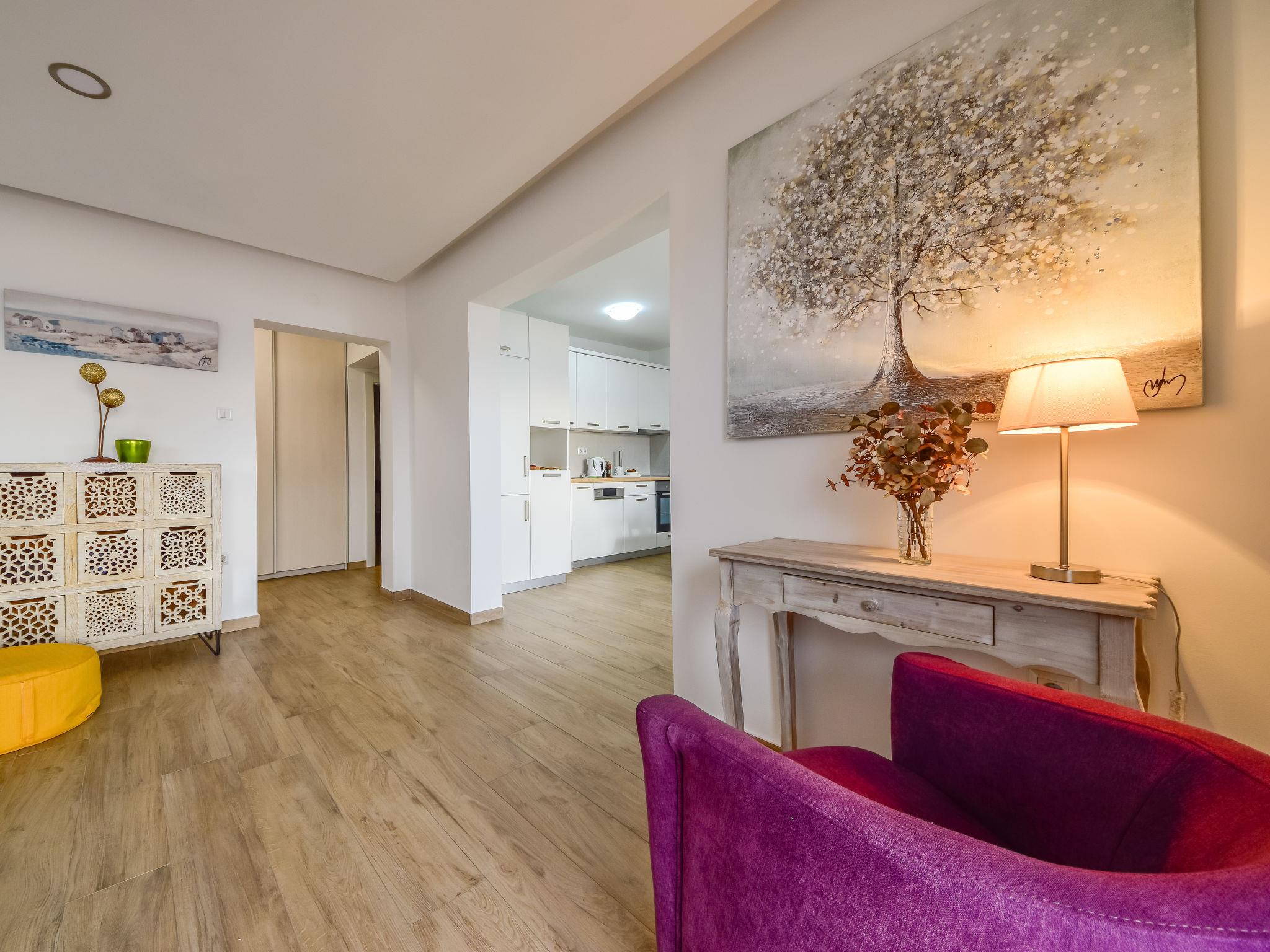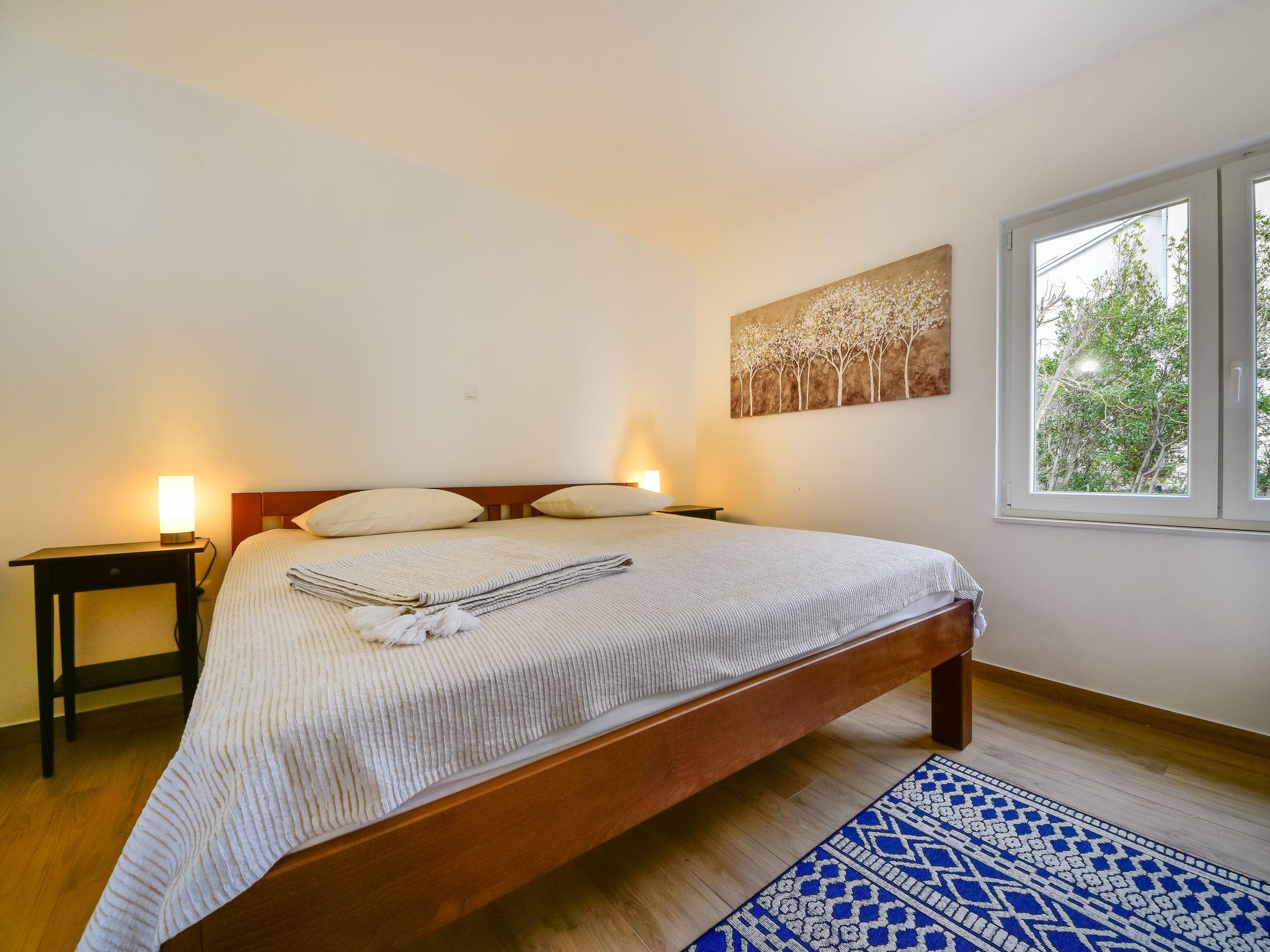 2-room apartment 85 m2 on 1st floor. Spacious, fully renovated in 2023, comfortable furnishings: living/dining room 20 m2 with digital TV and air conditioning. Exit to the terrace. 1 room with 1 bed (90 cm, length 200 cm), 1 double bed (200 cm, length 200 cm). Open kitchen (oven, dishwasher, 4 ceramic glass hob hotplates, kettle, freezer). Bath/shower/WC. Electric heating, floor heating. Heating available only from 01.10. to 01.05. Terrace 20 m2 partly roofed. Terrace furniture. Beautiful panoramic view of the sea. Facilities: Internet (WiFi, free). Please note: TV only HR.