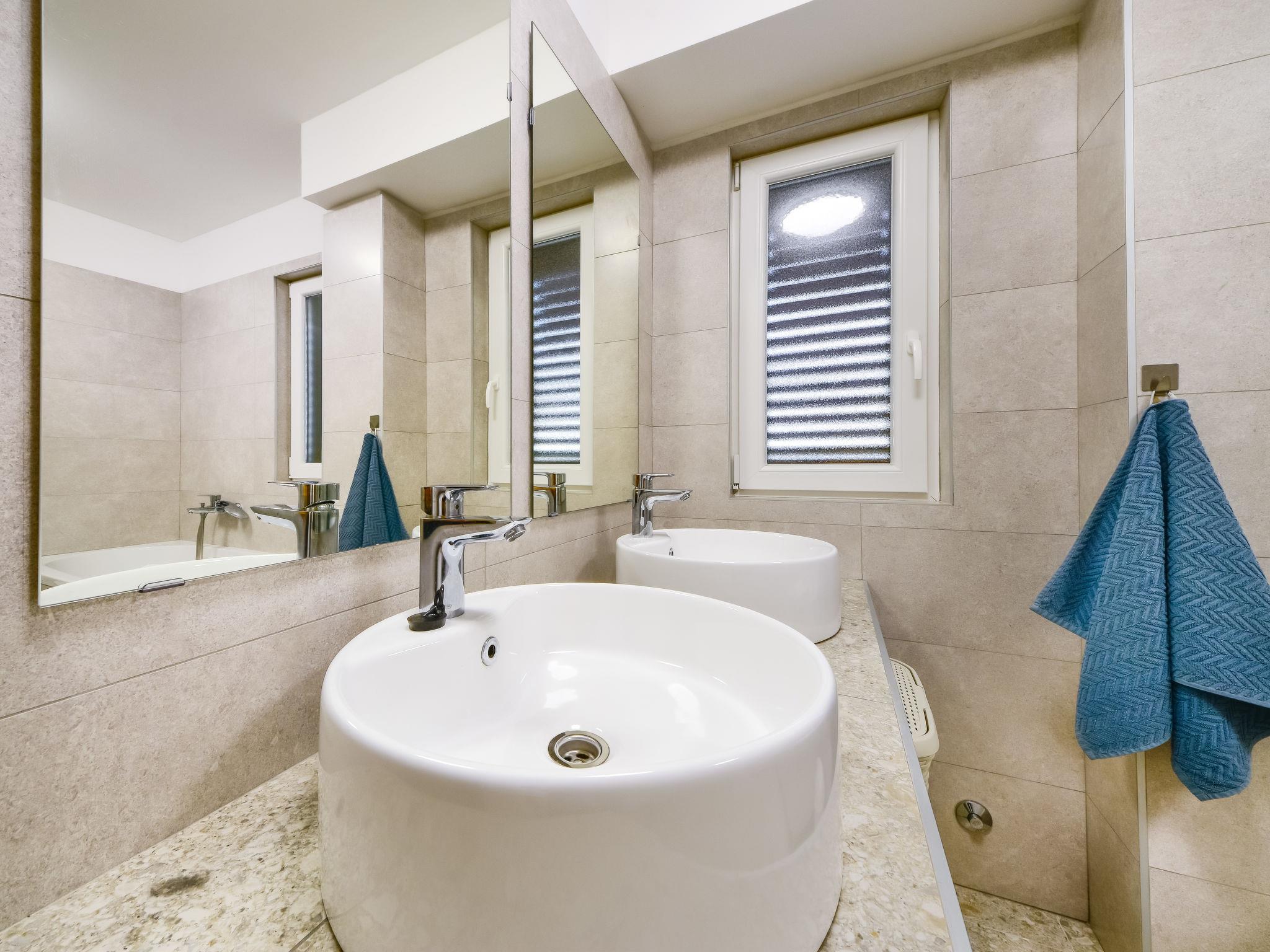 2-family house "Sanja", renovated in 2023. 1.3 km from the centre of Novi Vinodolski, 8 km from the centre of Selce, 12 km from the centre of Crikvenica, in a sunny, elevated position, 300 m from the sea, 300 m from the beach, in a cul-de-sac. In the house: internet access. Public parking on the road. Shop 400 m, supermarket 1.3 km, restaurant 500 m, bus stop 1.4 km, shingle beach 400 m, rocky beach, public bathing area 300 m. Marina 500 m.