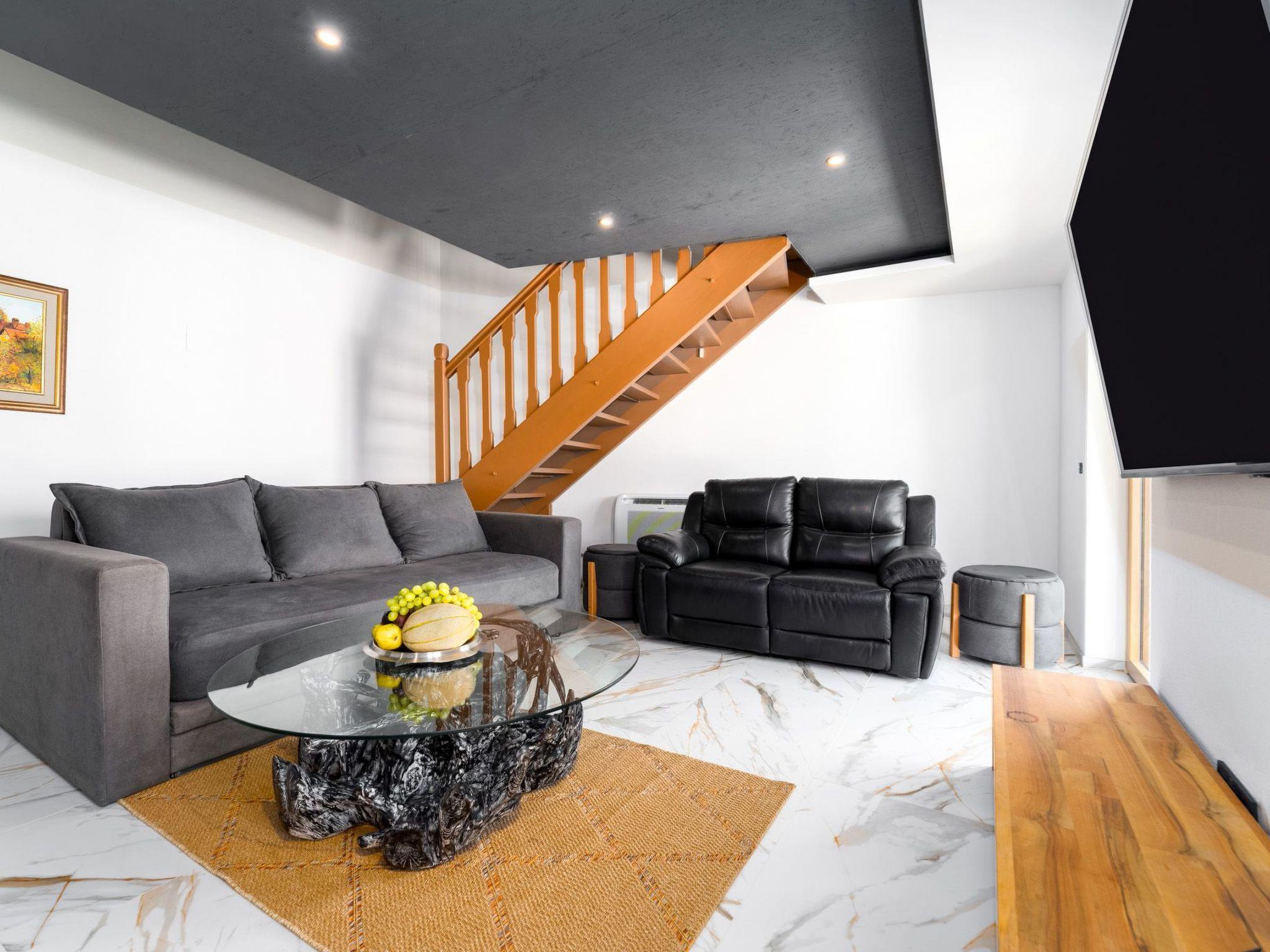The outside space of this apartment is just as inviting. Guests have access to a terrace and balcony for that pleasant outdoor vibe, alongside a garden for communal use, providing ample space for relaxation or socializing in the fresh air. An outdoor hot tub elevates the experience, offering a perfect spot for unwinding after a day of exploration or beach-bounding.