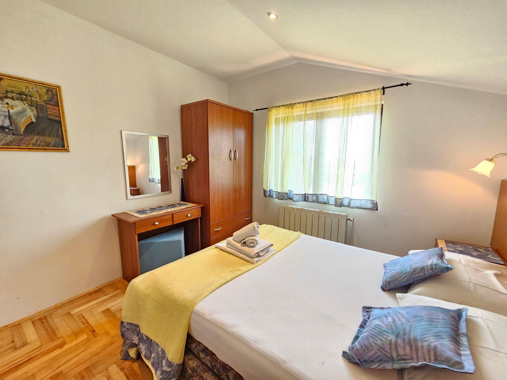 The apartment’s exterior features are equally appealing. A delightful terrace and a rooftop terrace offer serene spots to unwind or gather for shared moments. The garden, available for communal use, provides a lush setting for relaxation, surrounded by the gentle breeze and the soothing ambiance of the area. While grilling is not permitted, these outdoor areas offer a perfect backdrop for enjoying the mild climate and the natural beauty of Kvarner Bucht.