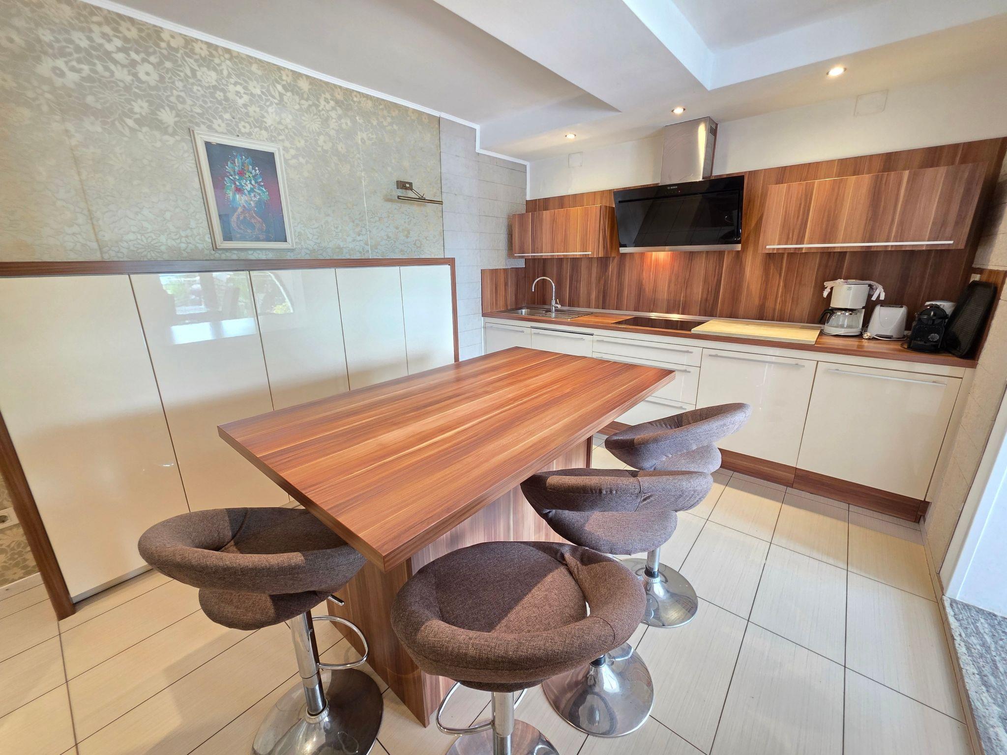 Outside, the charm of this apartment extends to a private terrace, complete with a summer kitchen and barbecue facilities, perfect for al fresco dining and enjoying the warm, Mediterranean evenings. The beautifully maintained communal garden and roof terrace provide further space for relaxation and socializing, setting the stage for unforgettable memories.