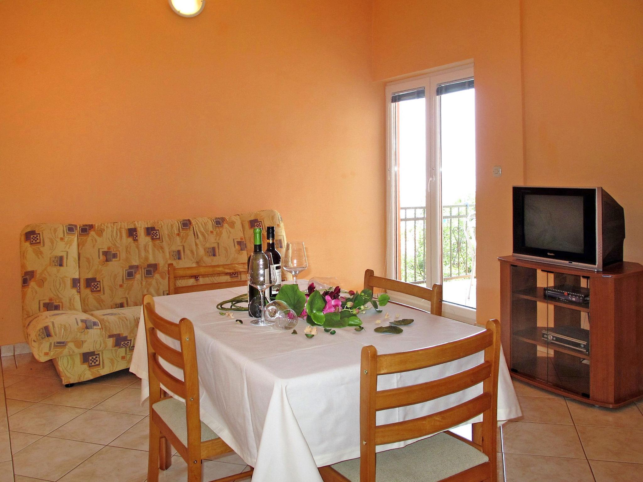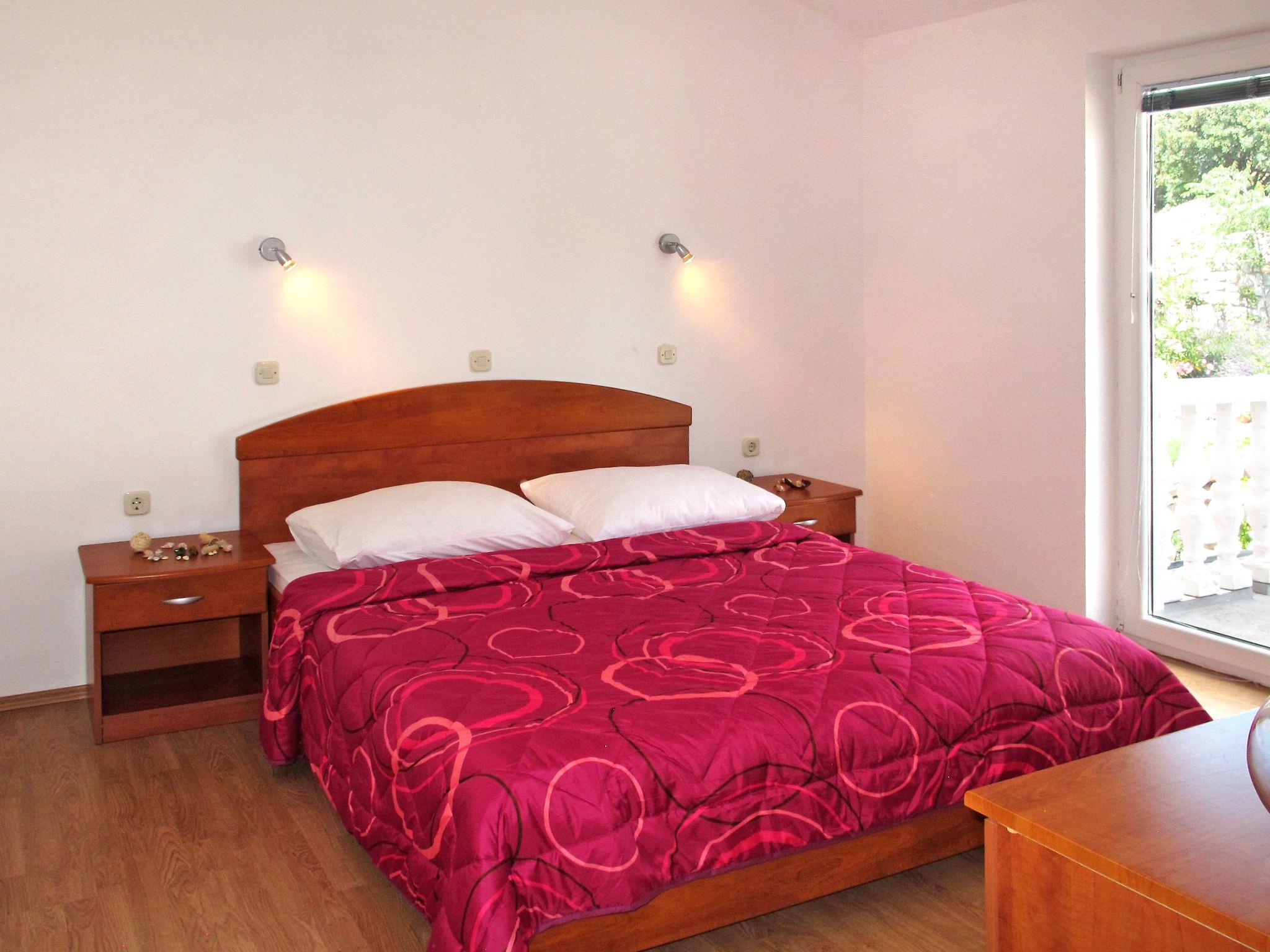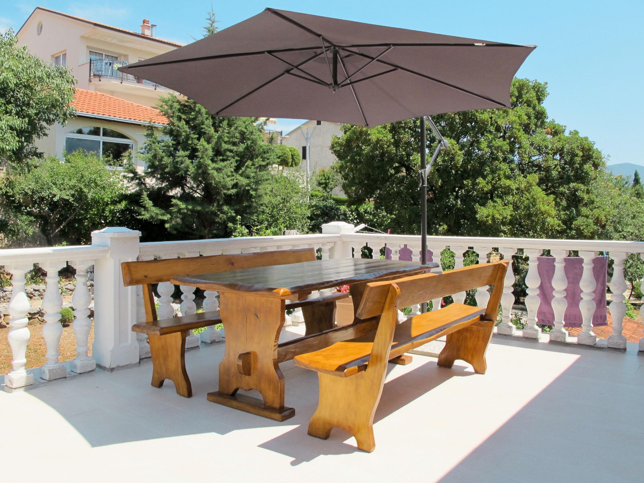 "Valentina", 3-room apartment 60 m2 on 2nd floor. Living/dining room with satellite TV and air conditioning. Exit to the balcony. 1 room with 1 double bed (2 x 90 cm, length 200 cm). Exit to the terrace. 1 room with 1 double bed (2 x 80 cm, length 200 cm). Exit to the balcony. Open kitchen (2 hot plates, toaster, kettle, microwave, electric coffee machine). Shower/WC. Air-conditioning (extra). No heating option. Balcony 6 m2, balcony 4 m2, terrace 25 m2. Terrace furniture, balcony furniture, barbecue, deck chairs (2). View of the sea. Facilities: Internet (WiFi, free). Please note: non-smoking house.